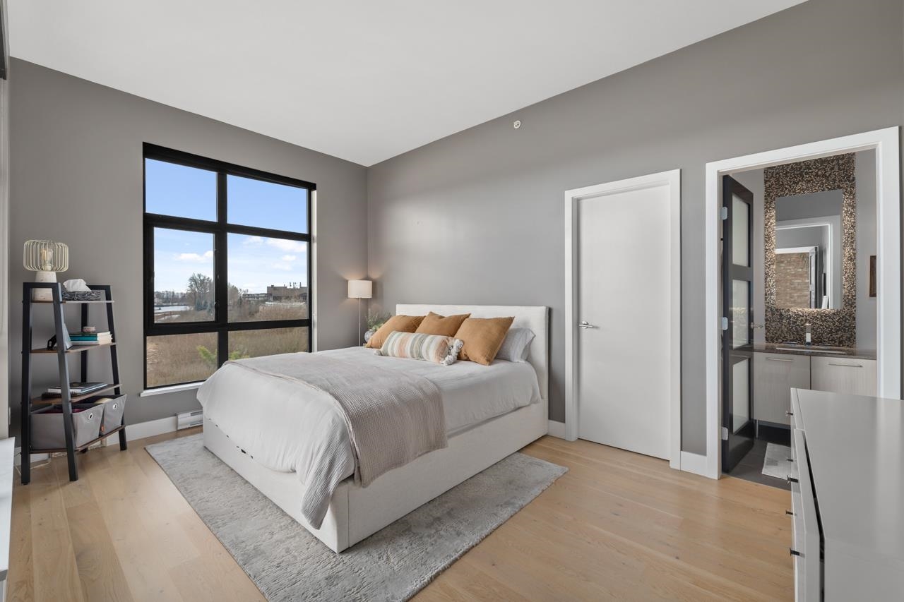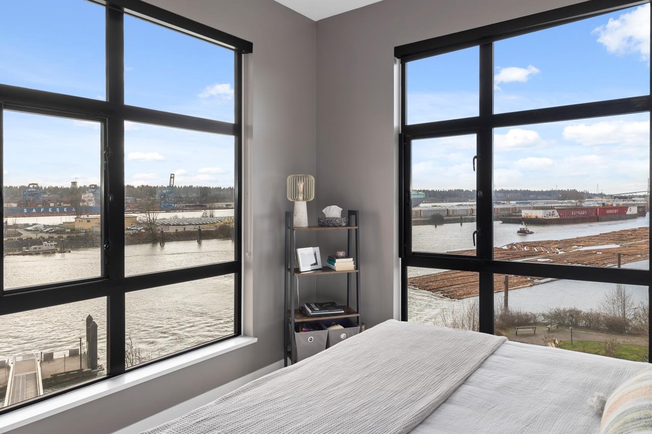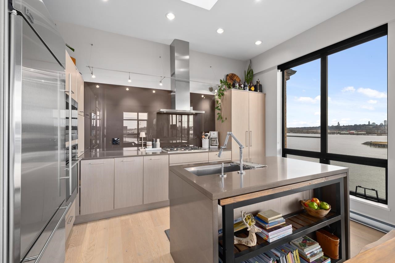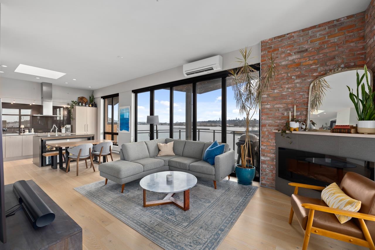 Rare, top floor, water front, corner penthouse suite! Experience elevated riverfront living w/ unobstructed water views in this top-floor, corner 3-bed home in sought-after Glasshouse Lofts, in Port Royal community. Lofty 10’ ceilings, skylight over kitchen, reclaimed brick, & expansive windows showcase water views from every room & mountain views from the front. The kitchen boasts quartz counters, Kohler fixtures, custom built-ins & GE Monogram SS appliances, opening to a bright living space w/ accordion d...