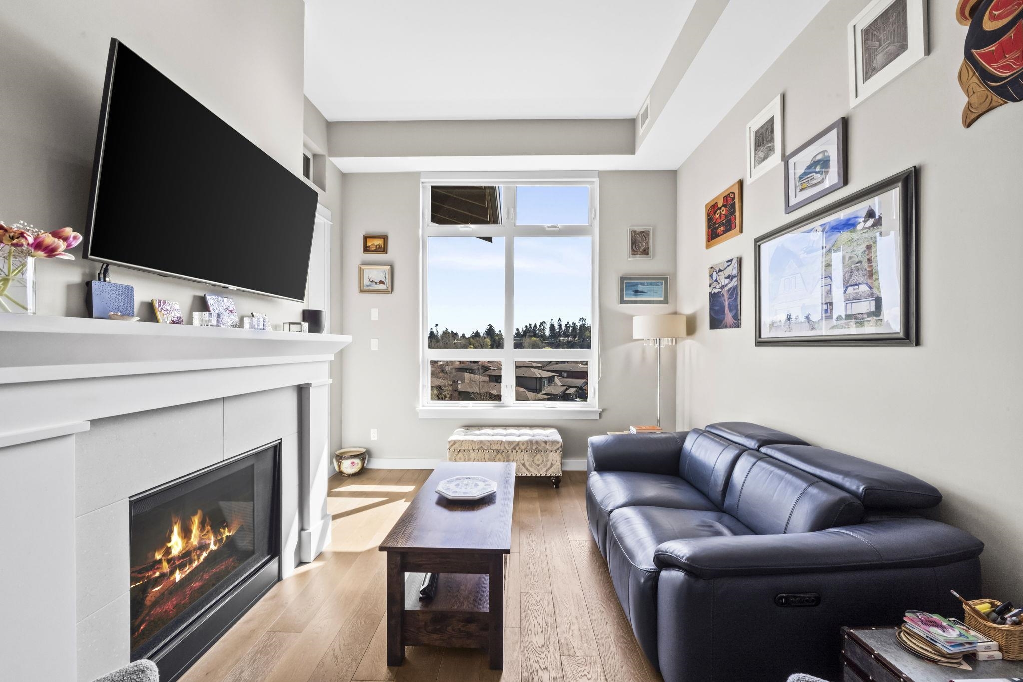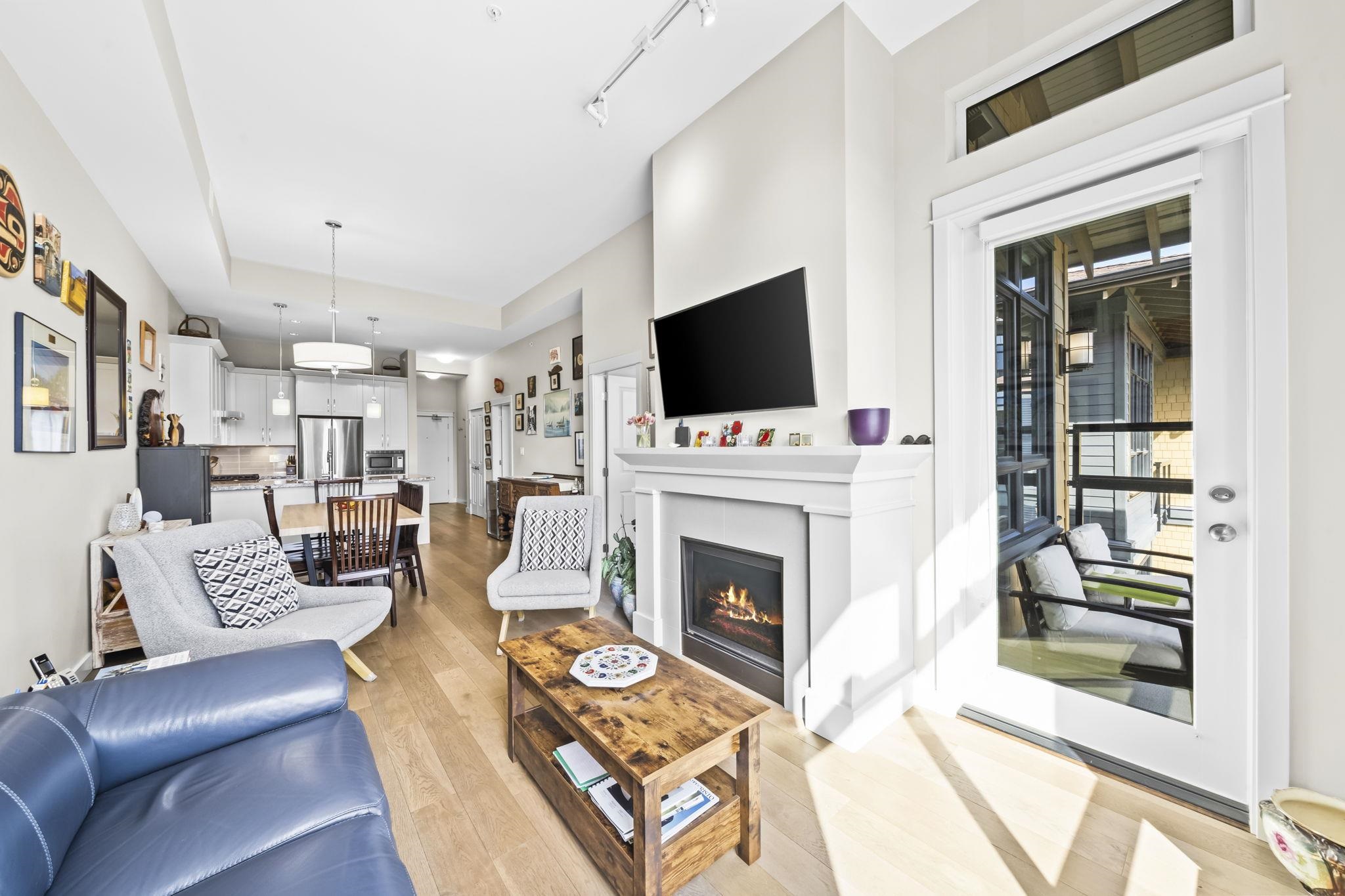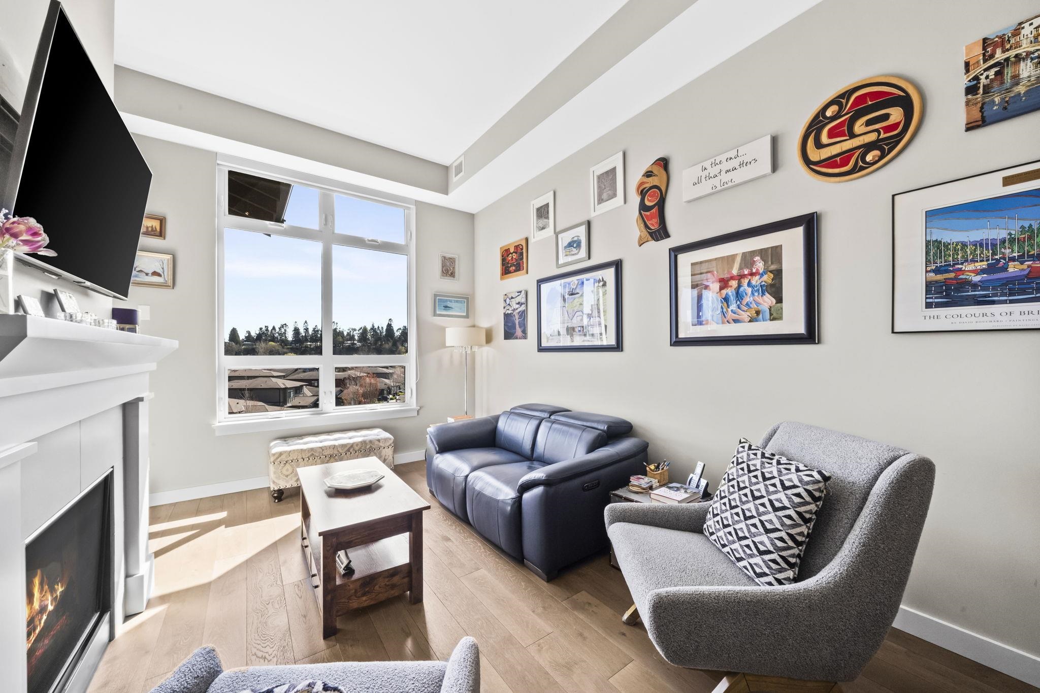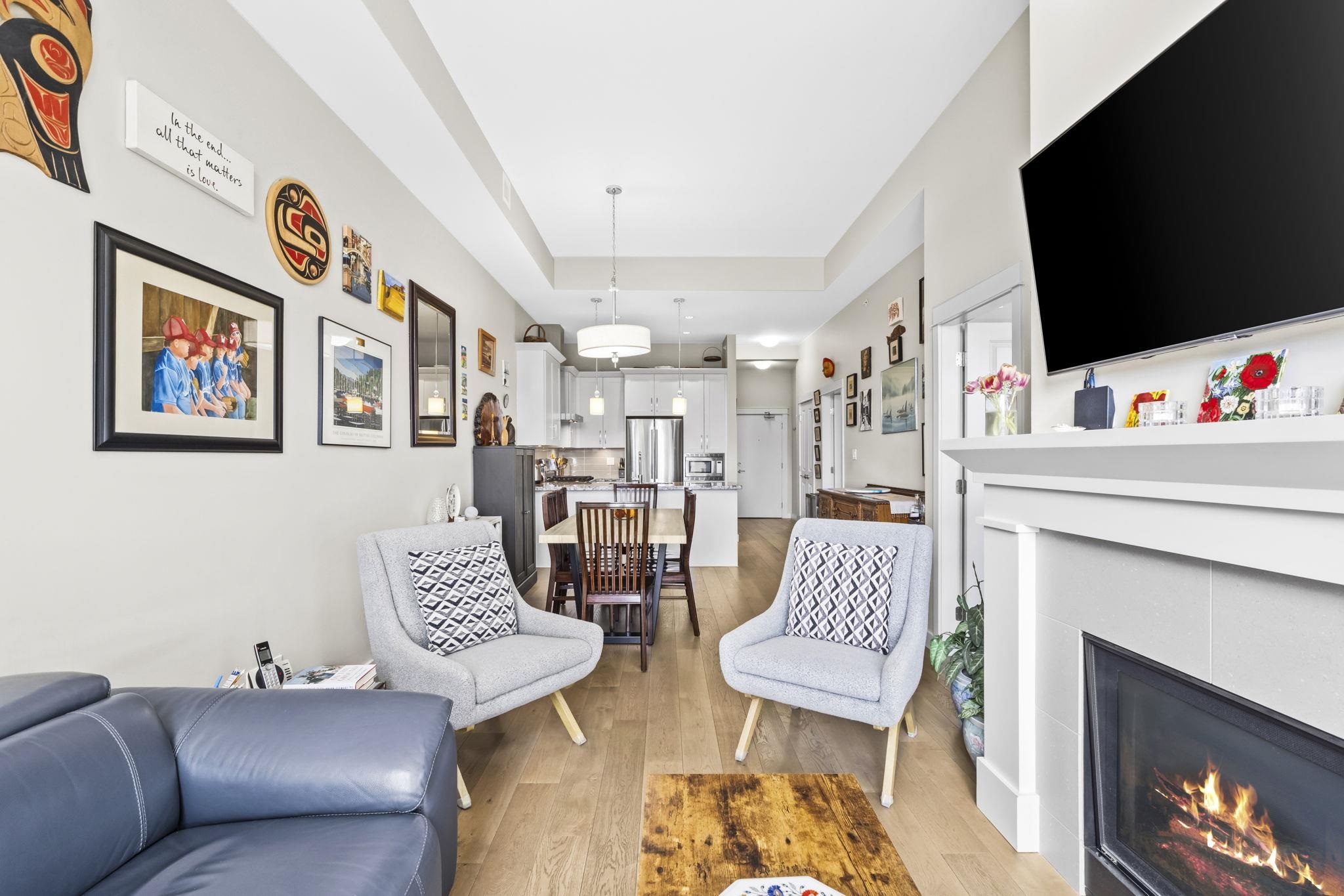 Stunning 2 bed+den penthouse at Tsawwassen Springs offering breathtaking views & refined modern living. This bright 1,000+ SF home features high ceilings, expansive open-concept living & high-end finishes throughout. Enjoy engineered wide plank hardwood flooring, granite countertops, shaker cabinets & s/s appliances. The spacious layout includes 2 large bedrooms, a versatile flex/den ideal for storage or pantry use, a/c, heated floors & cozy gas fireplace. Step out to your sunlit NW facing covered patio wit...