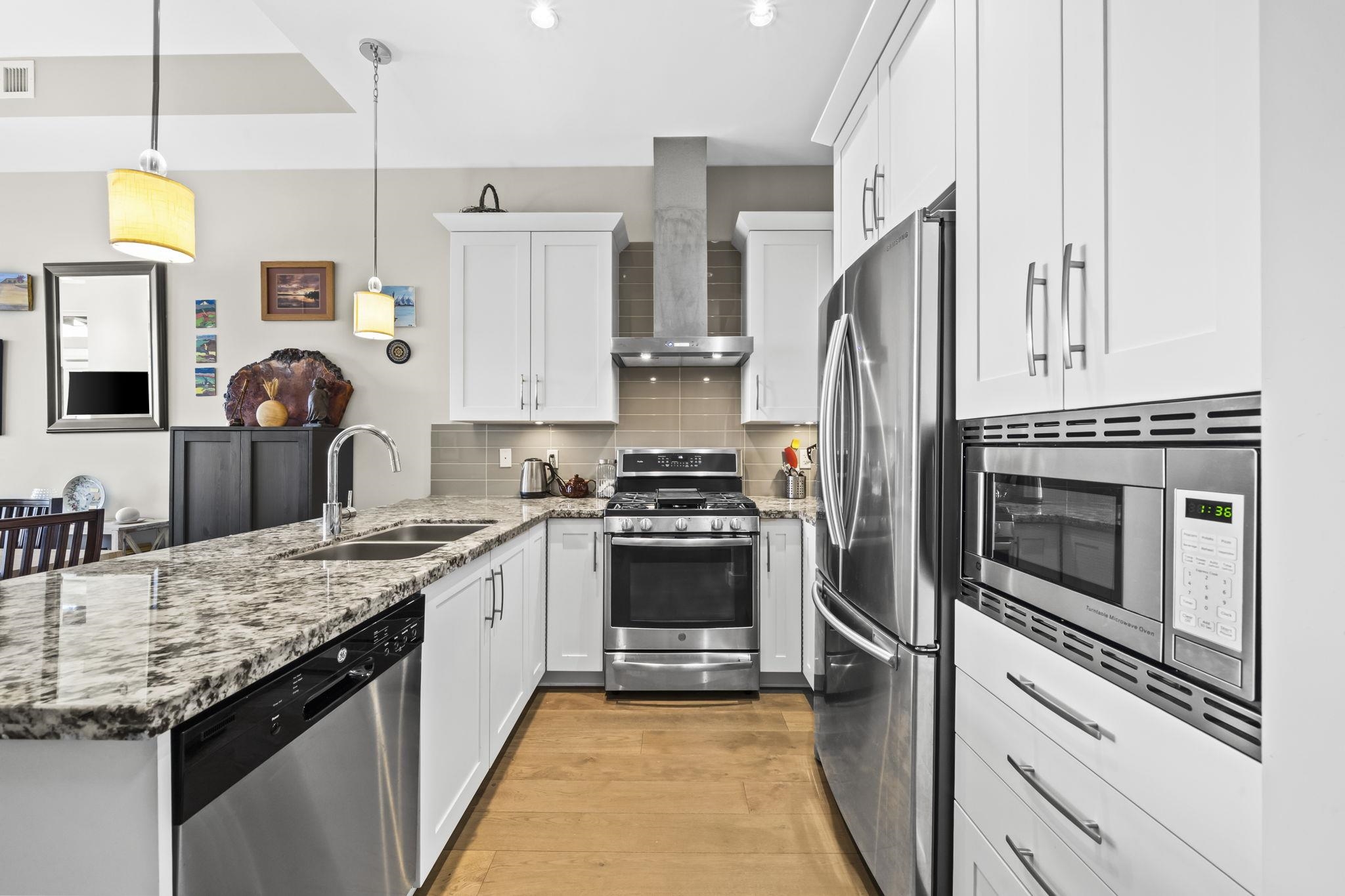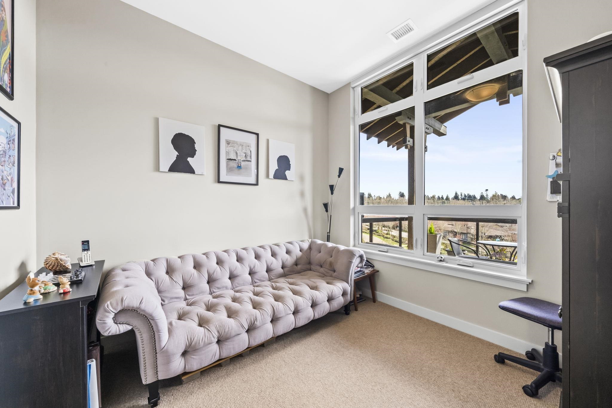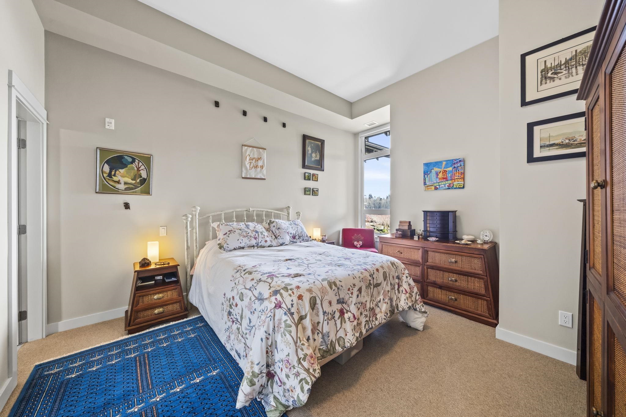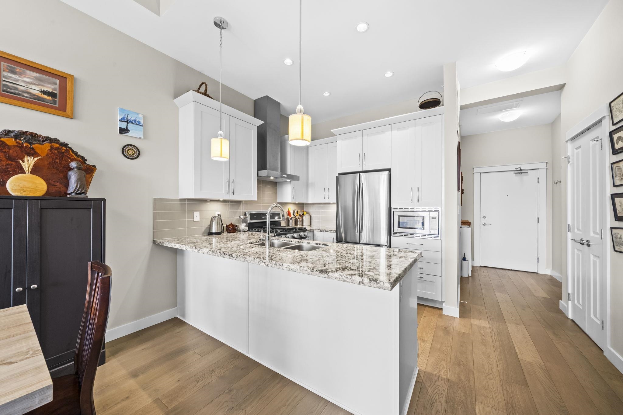 Stunning 2 bed+den penthouse at Tsawwassen Springs offering breathtaking views & refined modern living. This bright 1,000+ SF home features high ceilings, expansive open-concept living & high-end finishes throughout. Enjoy engineered wide plank hardwood flooring, granite countertops, shaker cabinets & s/s appliances. The spacious layout includes 2 large bedrooms, a versatile flex/den ideal for storage or pantry use, a/c, heated floors & cozy gas fireplace. Step out to your sunlit NW facing covered patio wit...