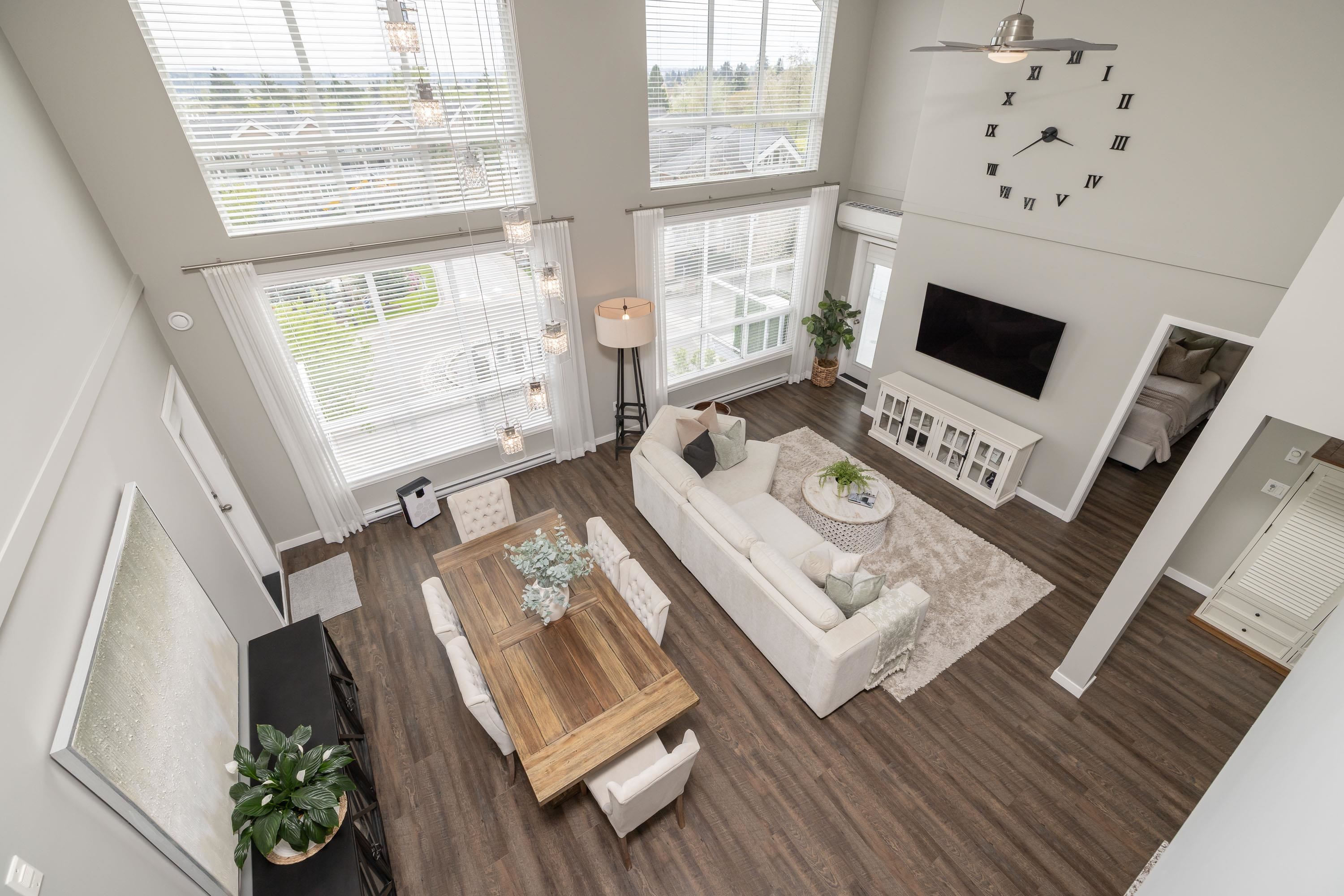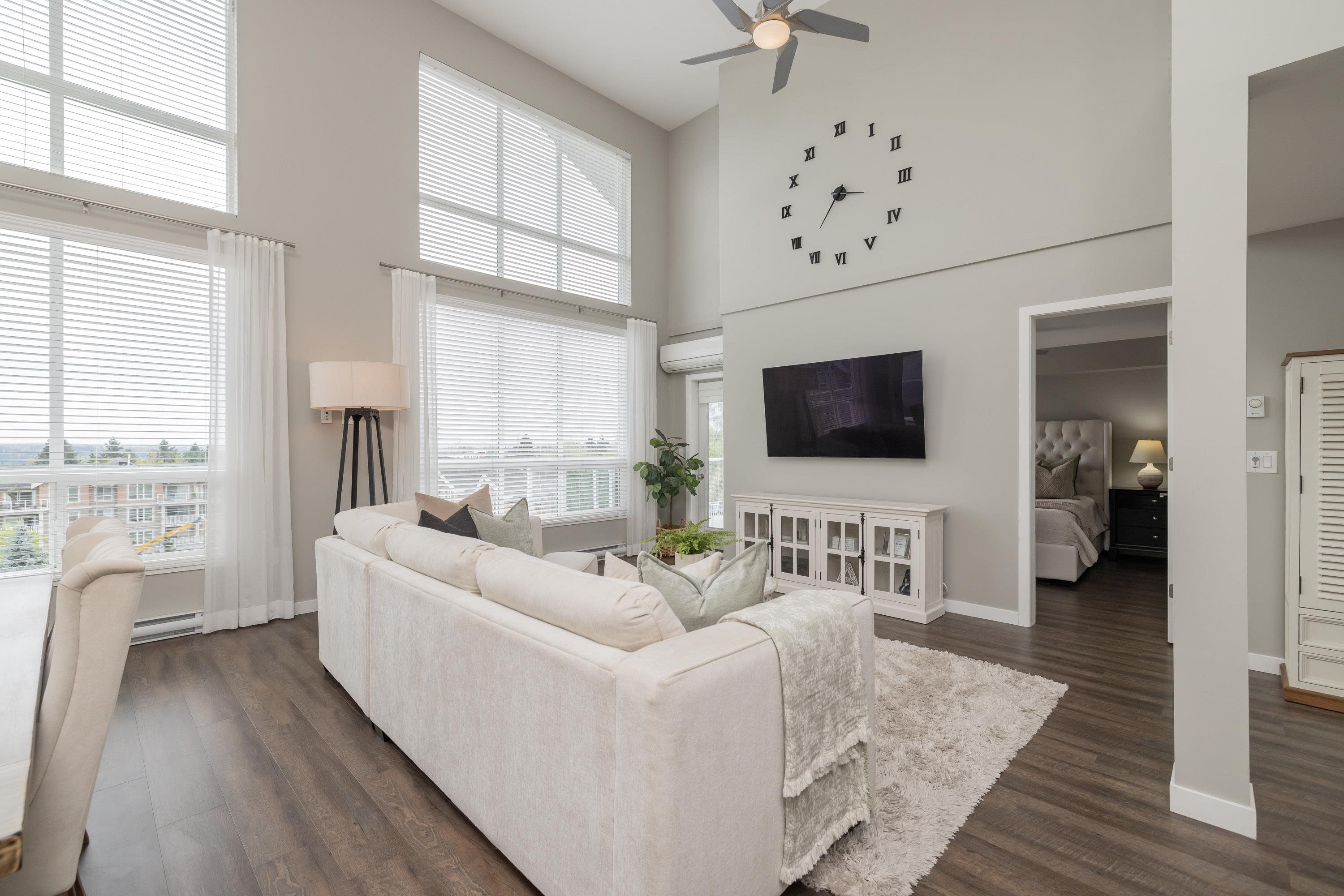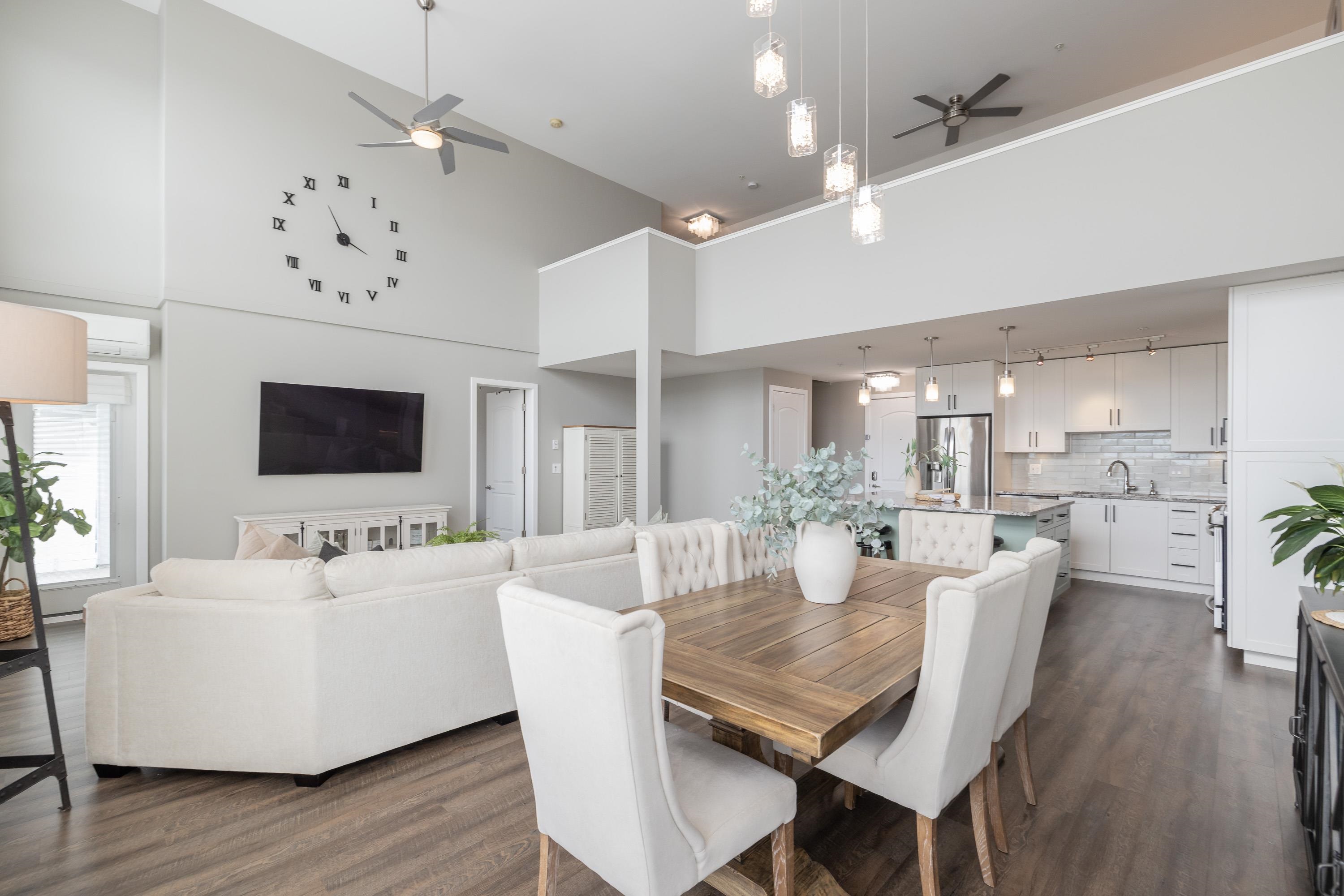 The premier penthouse at Waterstone in Clayton! This exceptional home offers nearly 1,700 sq ft with soaring 17-foot ceilings and an open, light-filled layout. Enjoy stunning views of Mt. Baker from two private patios, plus a versatile loft space ideal for a home office, lounge, or guest area. Rarely available, this home includes three storage lockers, Air conditioning, power blinds and access to resort-style amenities: indoor pool, fully equipped gym, games room, party lounge, guest suite, and a private mo...