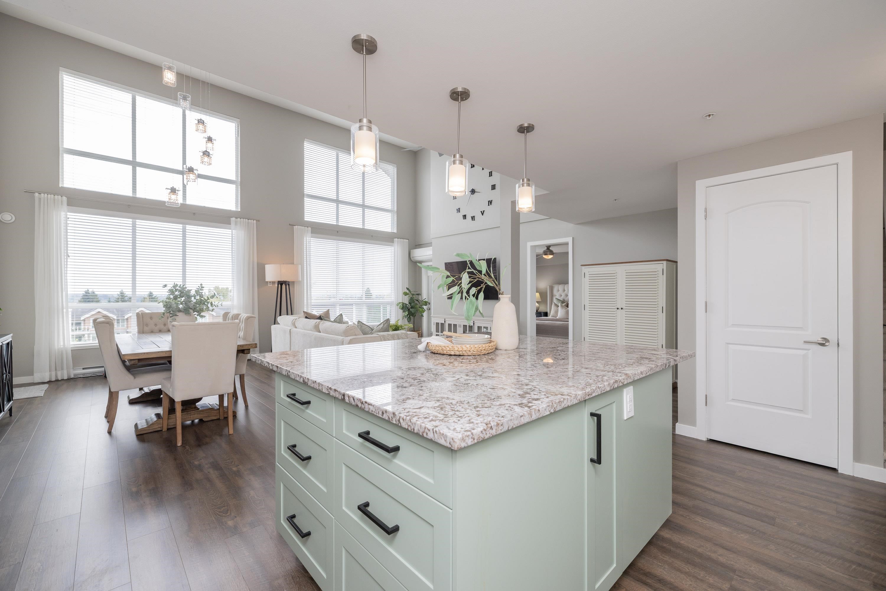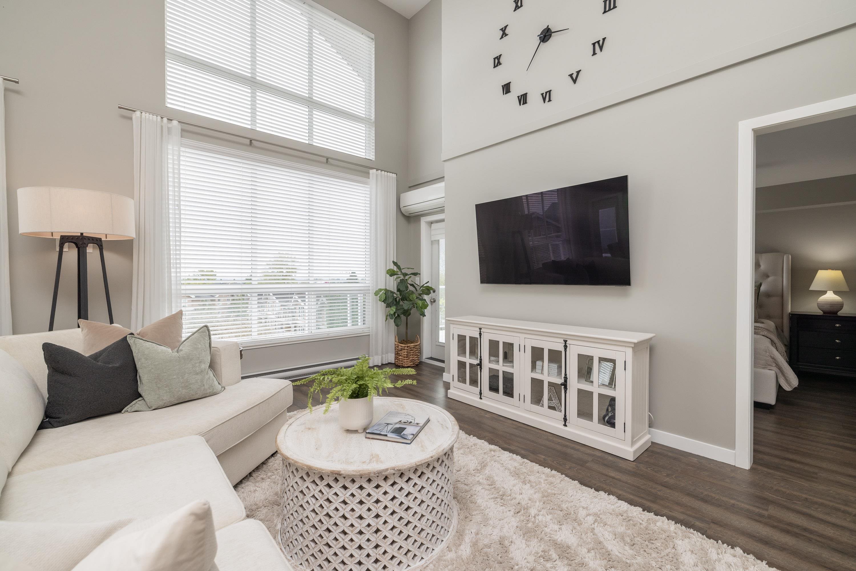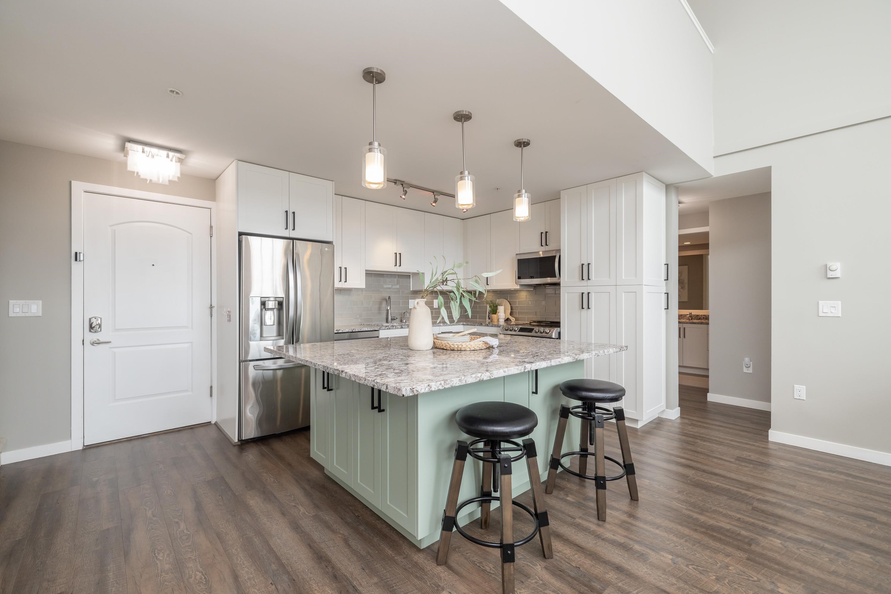 The premier penthouse at Waterstone in Clayton! This exceptional home offers nearly 1,700 sq ft with soaring 17-foot ceilings and an open, light-filled layout. Enjoy stunning views of Mt. Baker from two private patios, plus a versatile loft space ideal for a home office, lounge, or guest area. Rarely available, this home includes three storage lockers, Air conditioning, power blinds and access to resort-style amenities: indoor pool, fully equipped gym, games room, party lounge, guest suite, and a private mo...