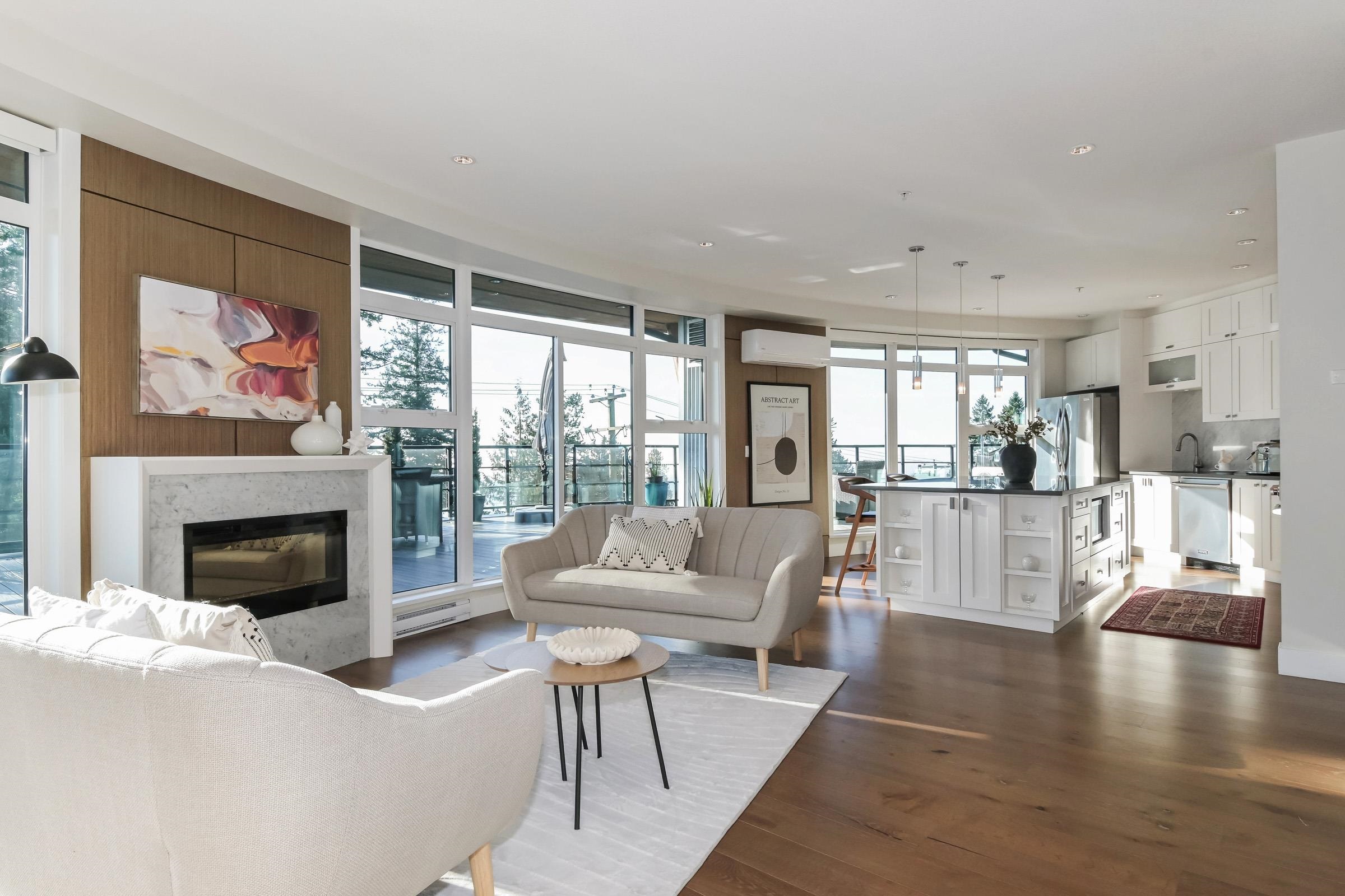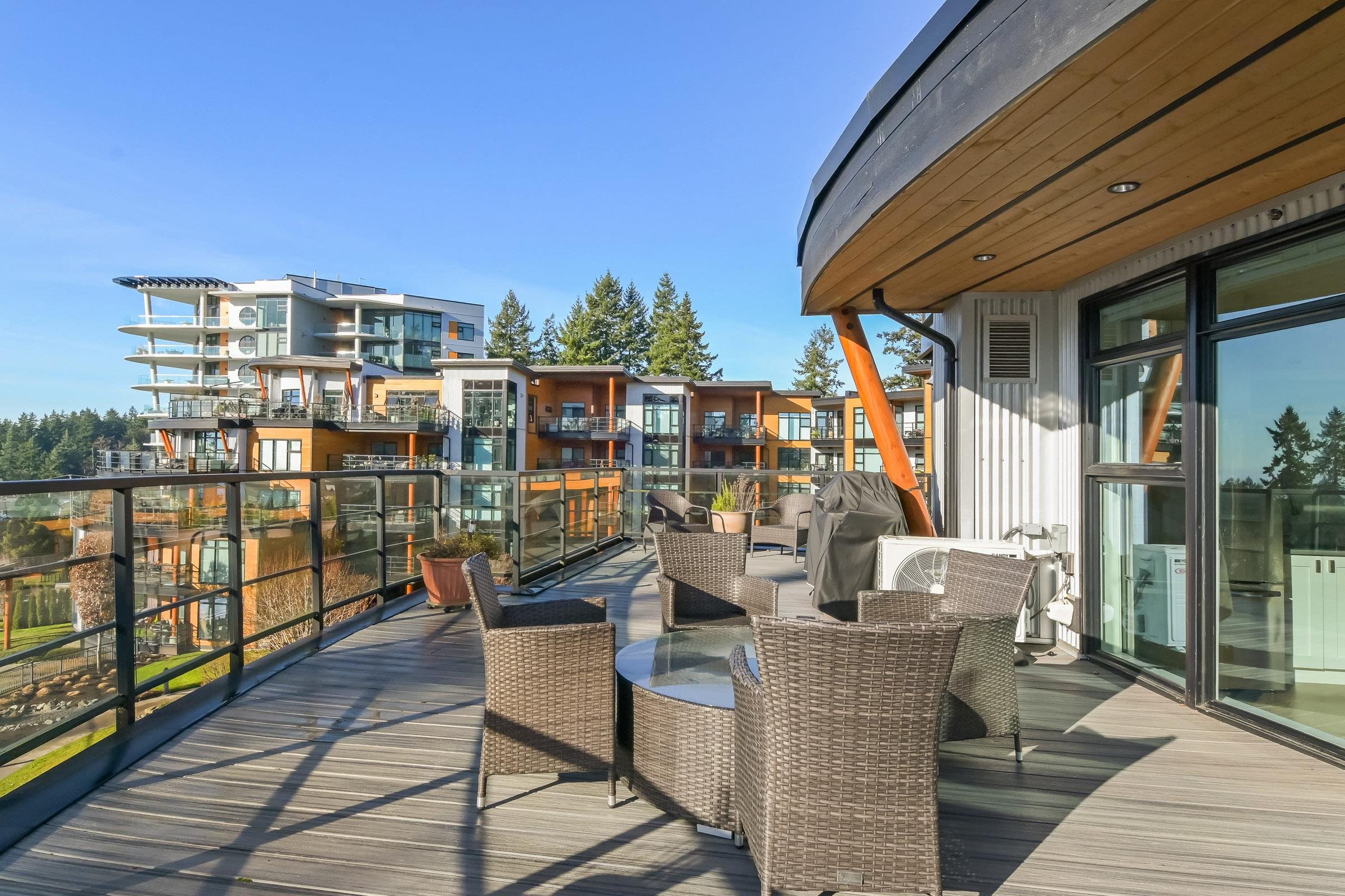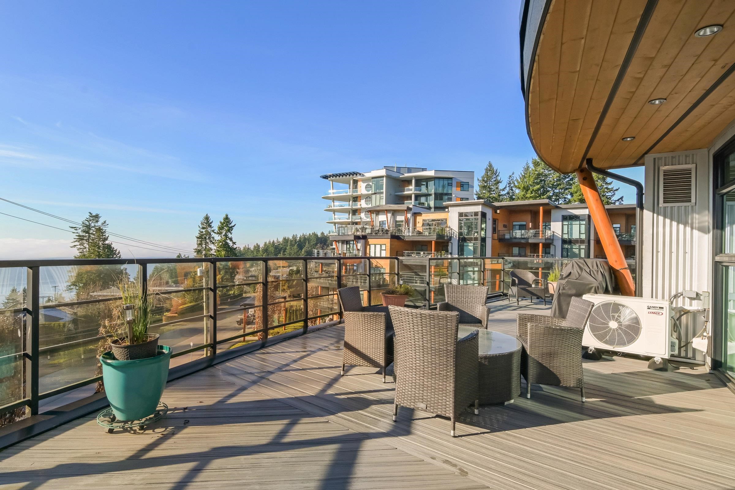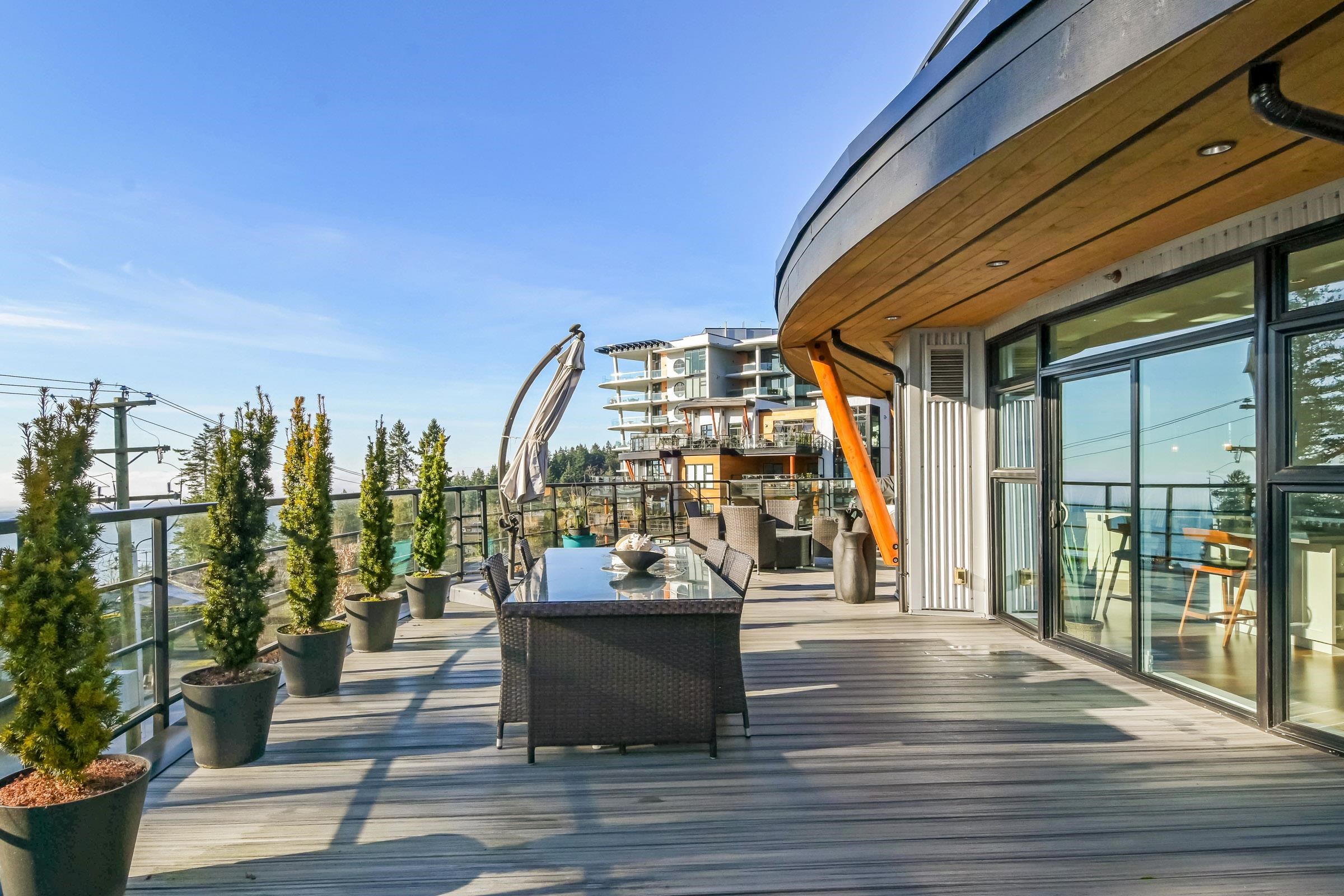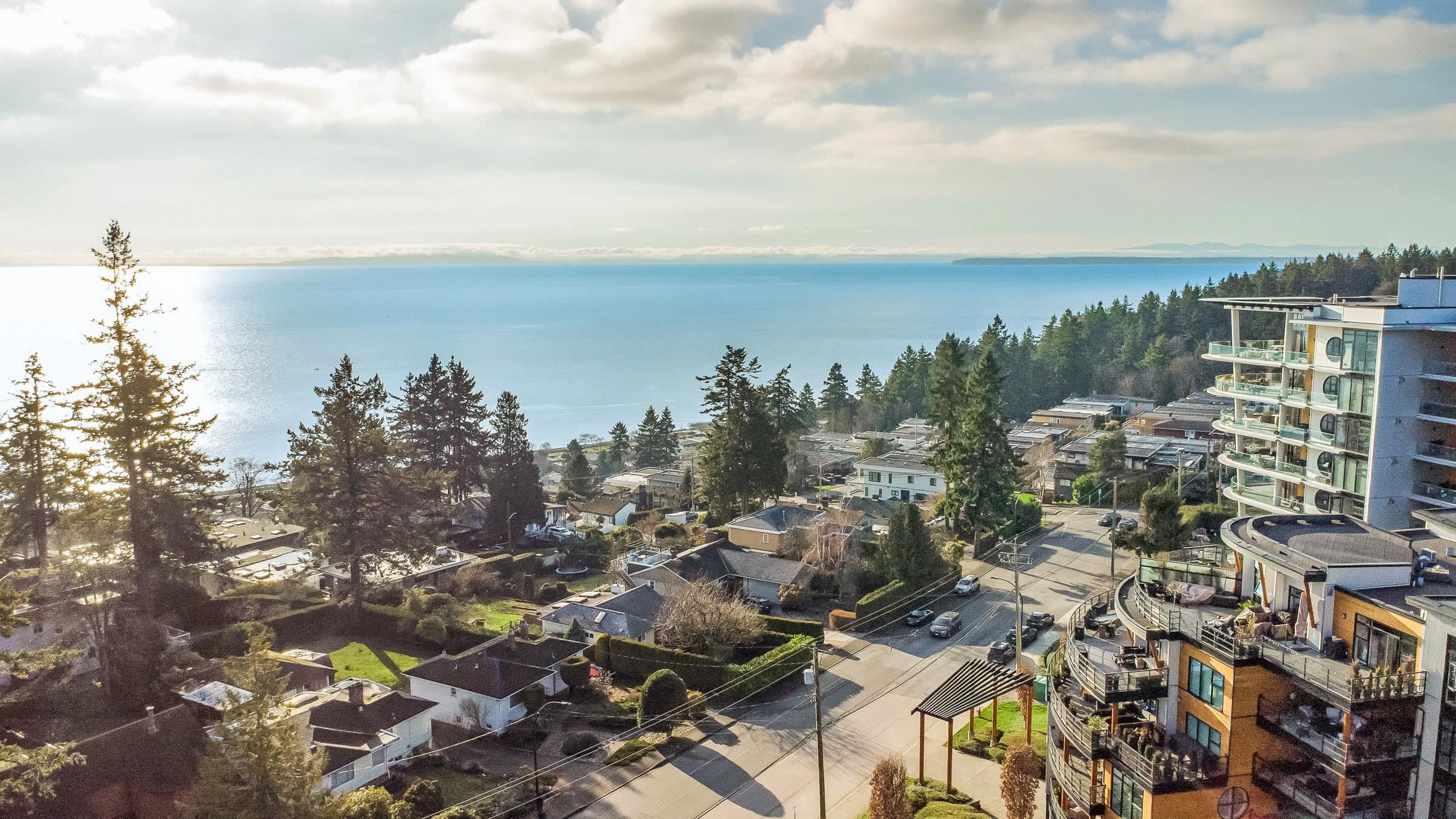 True luxury living awaits in this one-of-a-kind sub-penthouse at the award-winning Royce in White Rock. Enjoy breathtaking, south-facing panoramic ocean views and over 1,527sq. ft. of expansive patio space, perfect for outdoor entertaining or quiet relaxation. This beautifully designed open floor plan is thoughtfully laid out to maximize natural light and ocean views from nearly every room. The bright white kitchen showcases Viking appliances, custom quartz countertops, a seamless marble backsplash, and a m...