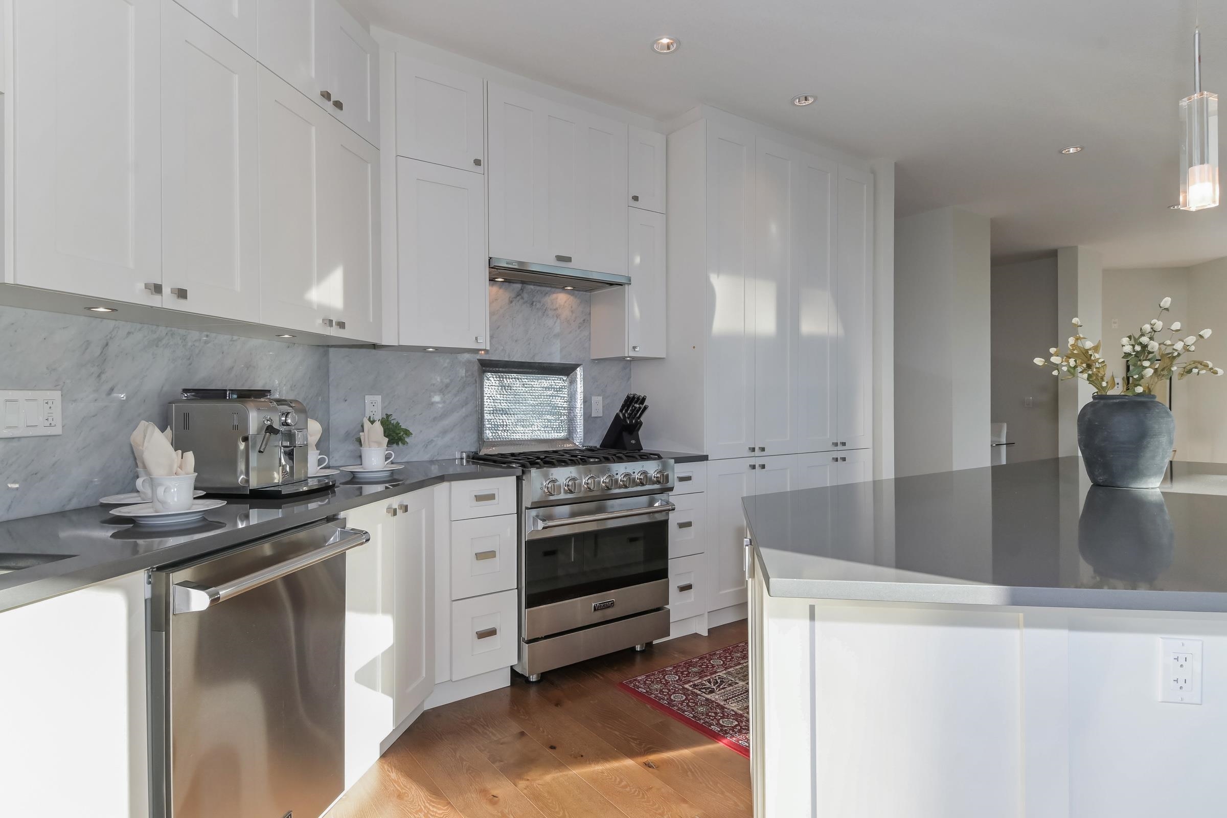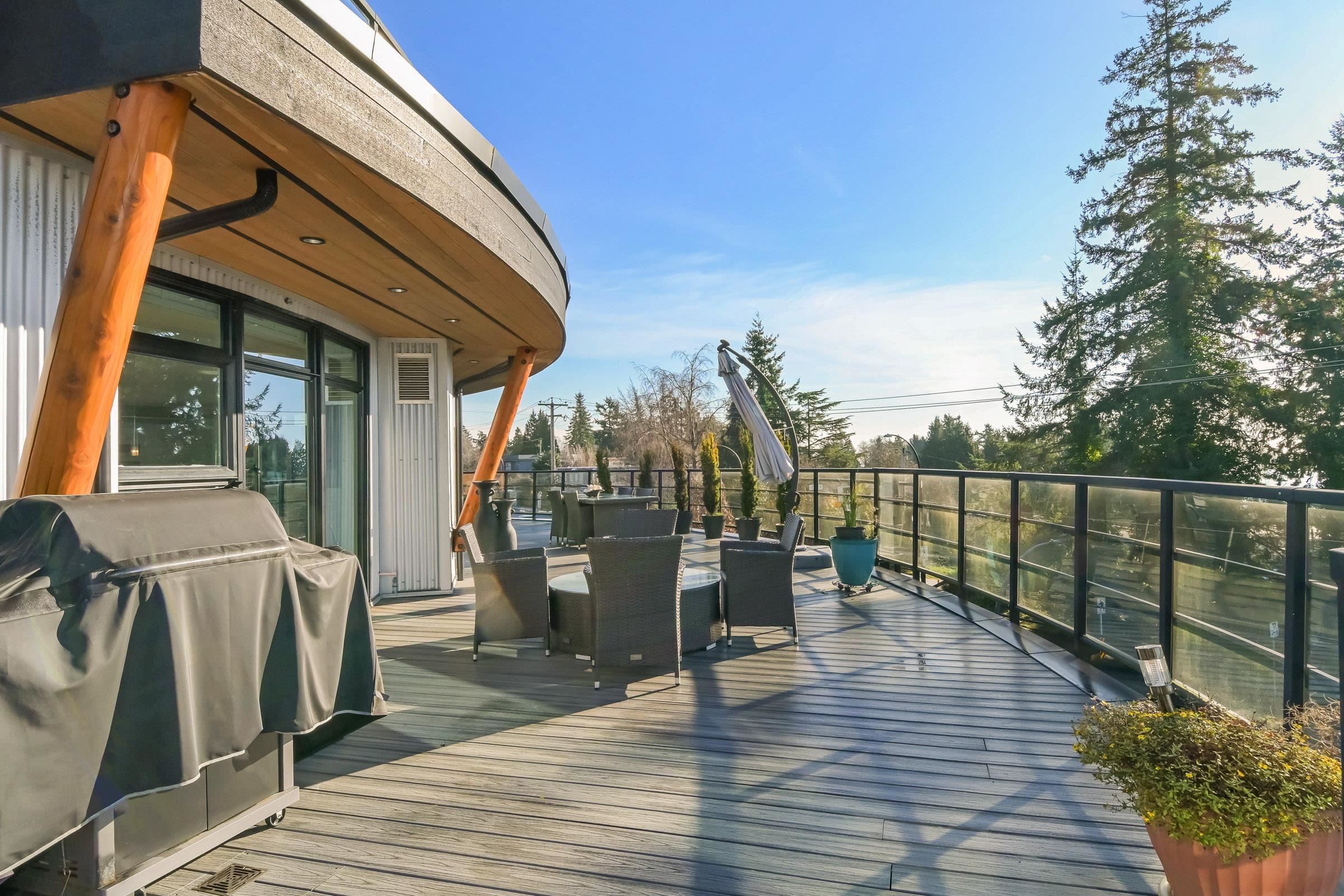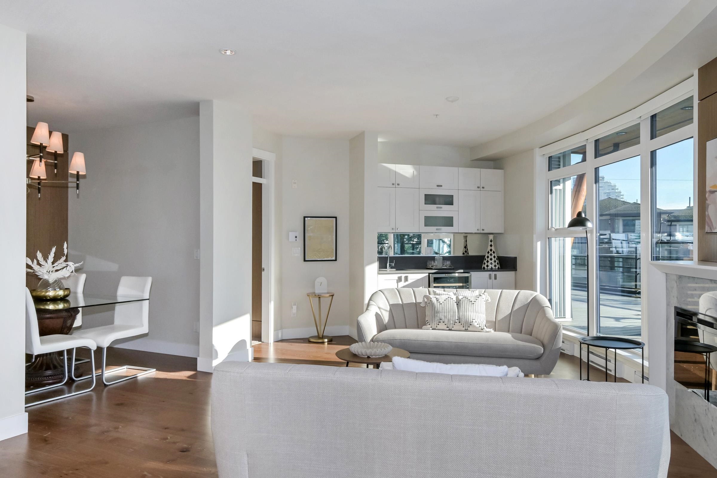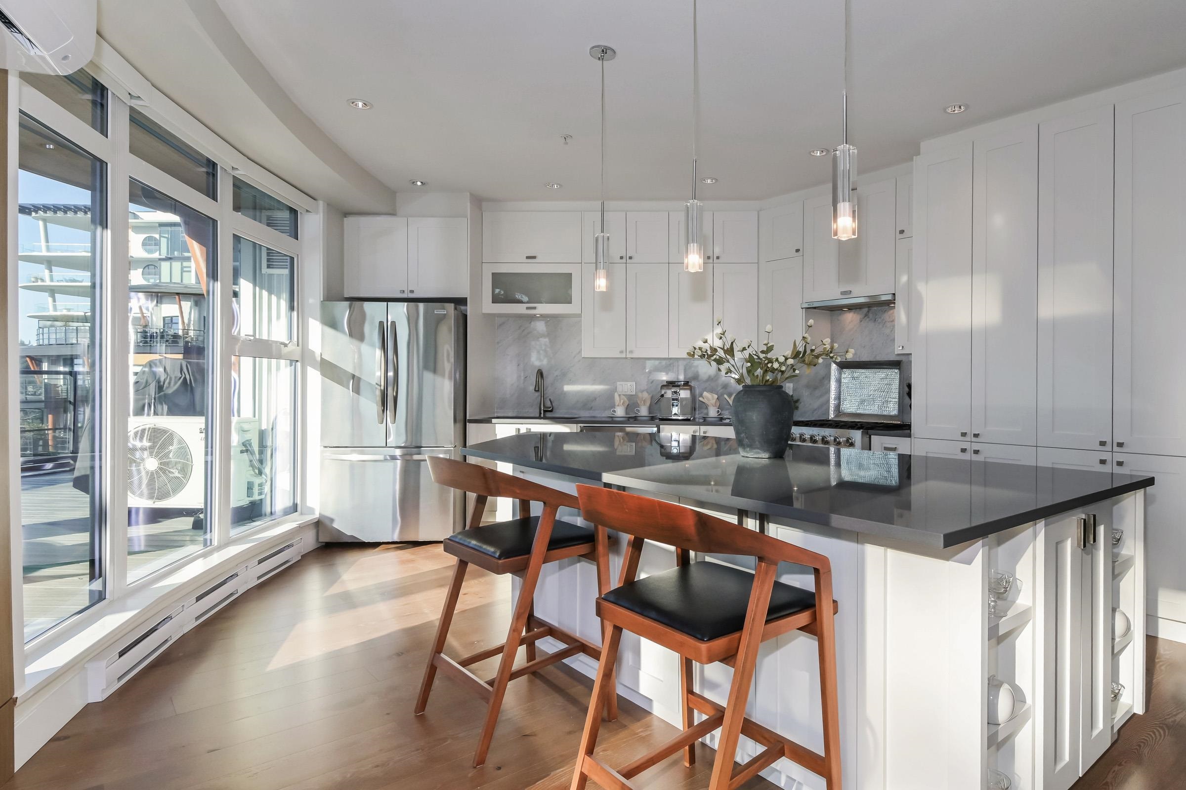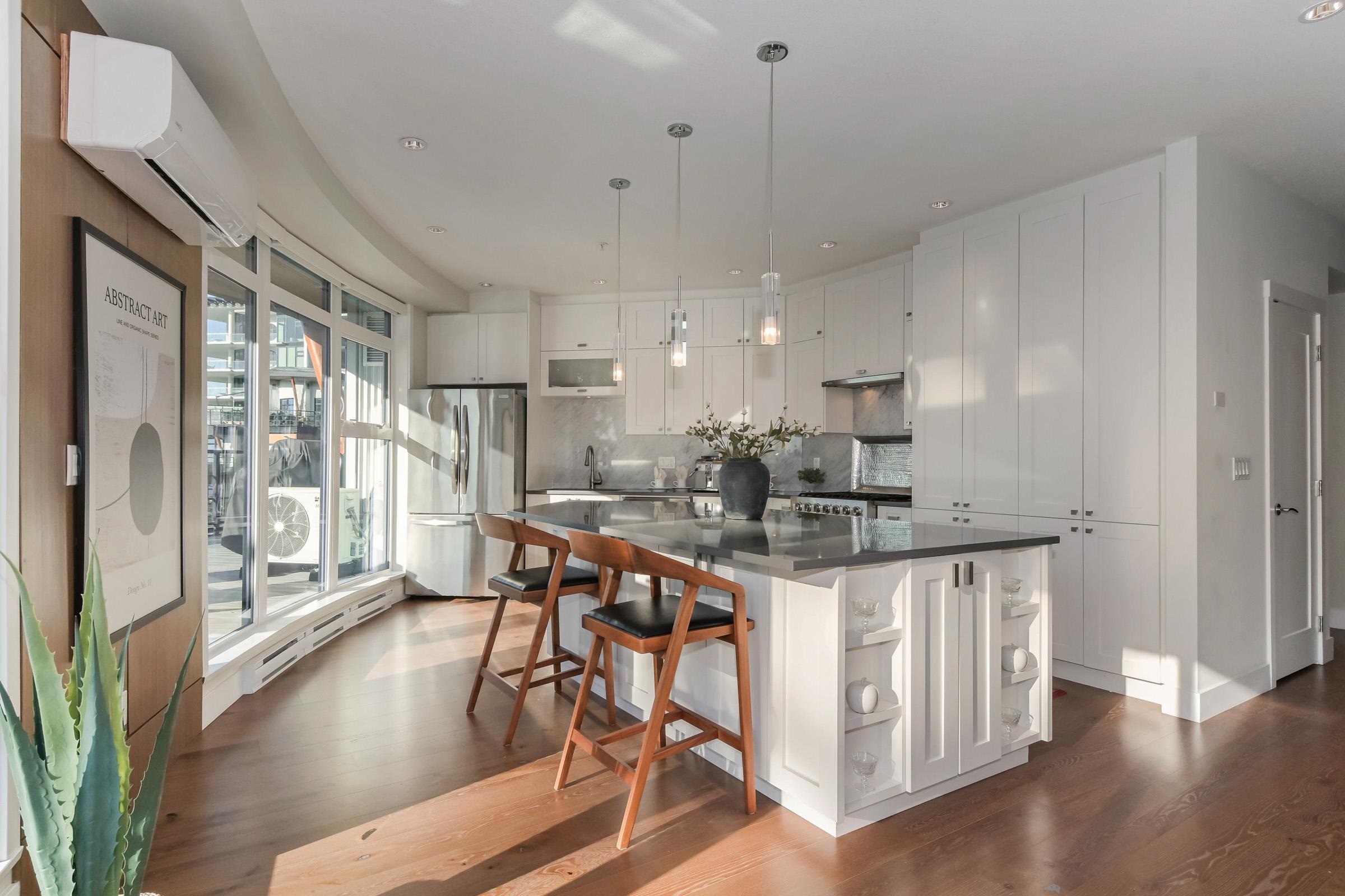 True luxury living awaits in this one-of-a-kind sub-penthouse at the award-winning Royce in White Rock. Enjoy breathtaking, south-facing panoramic ocean views and over 1,527sq. ft. of expansive patio space, perfect for outdoor entertaining or quiet relaxation. This beautifully designed open floor plan is thoughtfully laid out to maximize natural light and ocean views from nearly every room. The bright white kitchen showcases Viking appliances, custom quartz countertops, a seamless marble backsplash, and a m...