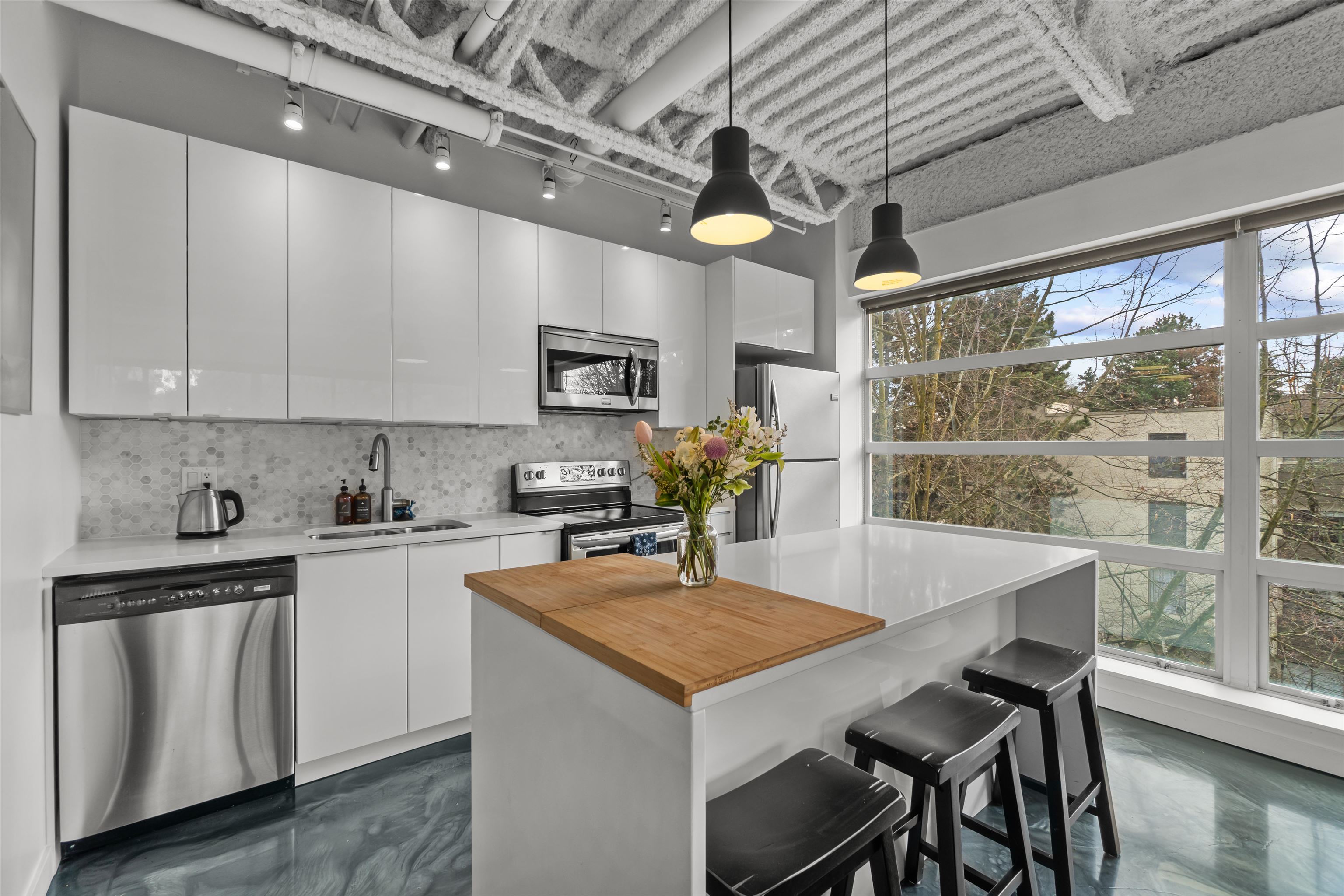 Wow! This is the one... Ultra bright, super spacious, updated massive corner unit with a giant private bedroom. Unit 431 at the Mainspace live/work lofts has it all: in-suite laundry, Southwest exposure (on the quiet side of the building), 1 parking, sprawling layout with renovated kitchen, custom durable epoxy floors, 10 foot high ceilings, storage space, and a green outlook with windows galore! This very unique and desired building also allows AirBnB nightly rentals! Just steps to the best cafés, restaura...