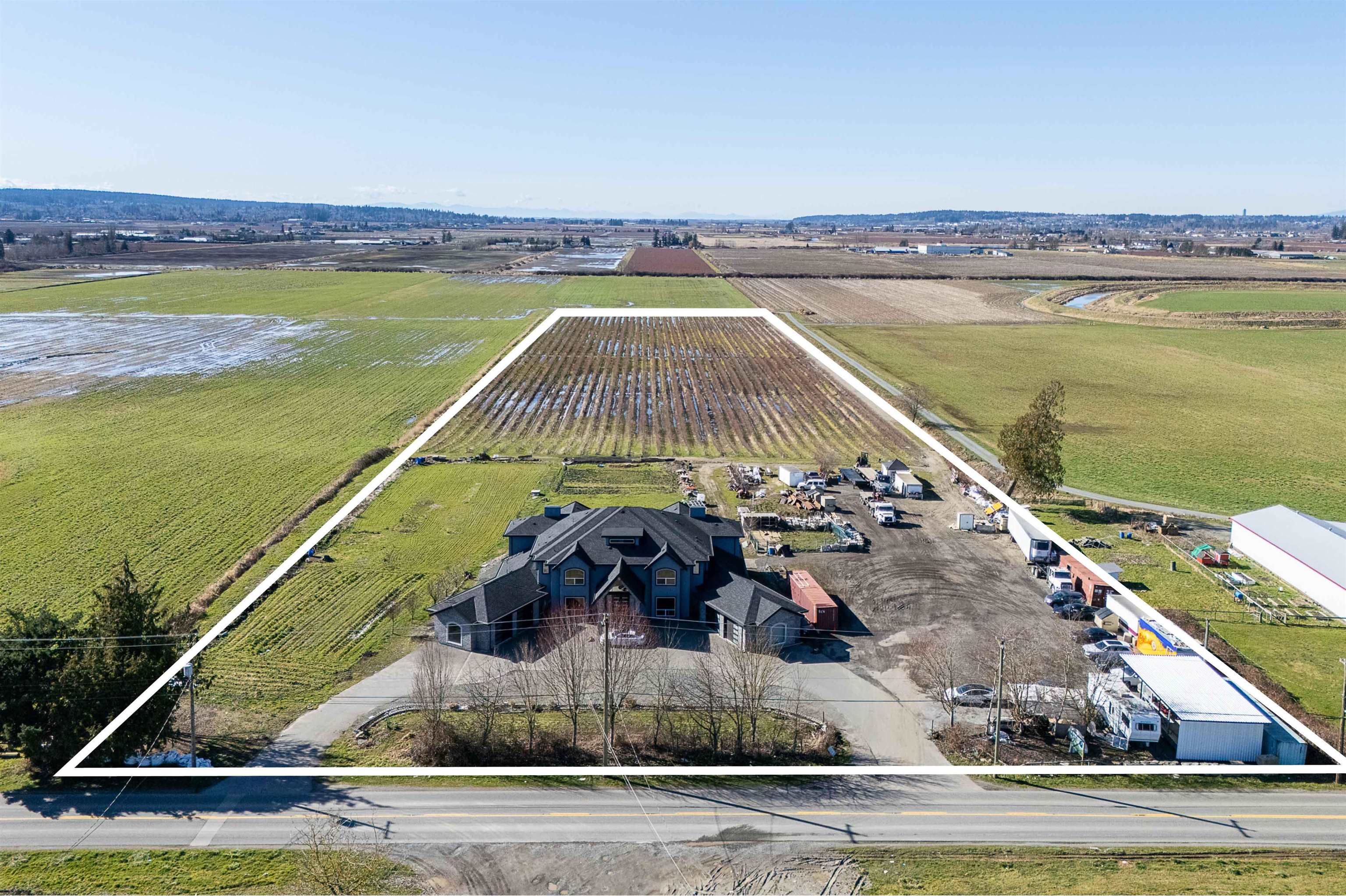 12.24 ACRES ESTATE HOME AND BLUEBERRY FARM! This private estate residence offers 7,809 SQ/FT of luxurious living on two expansive levels. This custom residence features dual stairways, soaring ceilings, a large great room, a large media room, elegant principal rooms, a world-class chef's kitchen, a secondary prep kitchen, and MUCH more. There are 6 spacious bedrooms, all with ensuite washrooms. Enjoy endless Valley views overlooking Cloverdale and South Surrey. 9 Acres of Duke Blueberry variety with drainag...