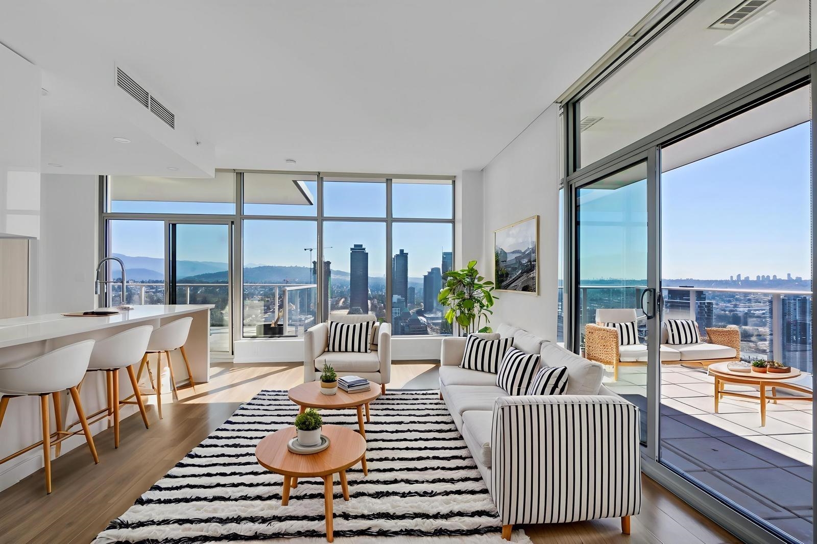 Welcome to Triomphe! Experience breathtaking 260-degree views of the water, city, and mountains from this stunning penthouse offering 2 bed +den & 2 bath.Delight in the expansive 468 sqft of balcony space, perfect for entertaining against a backdrop of picturesque scenery.This exquisite residence boasts 9'3" ceilings & floor-to-ceiling windows that create an airy ambiance. The chef’s kitchen features a breakfast bar & stainless steel Bosch appliances. Both bedrooms enjoy spectacular views with access to the...