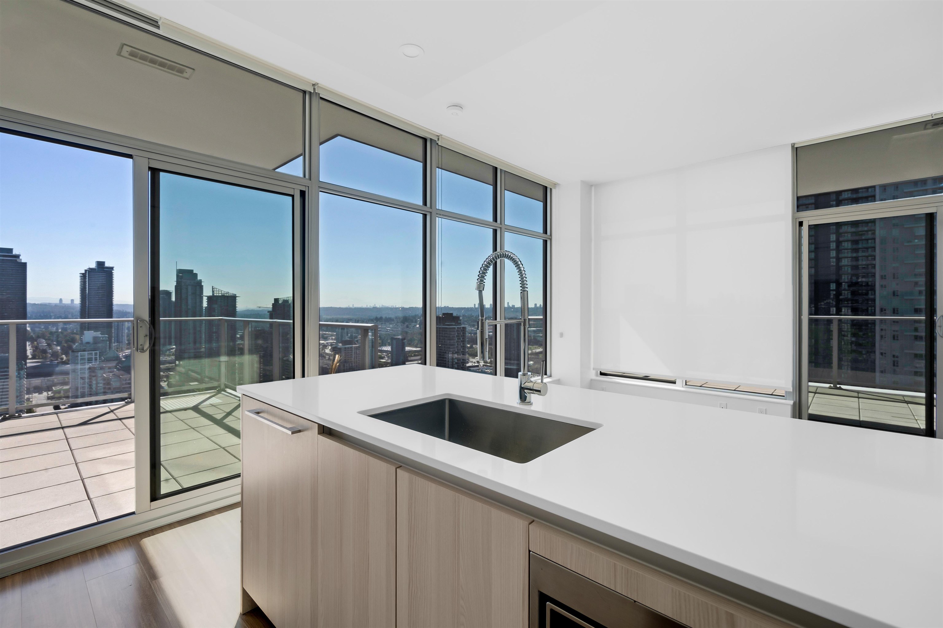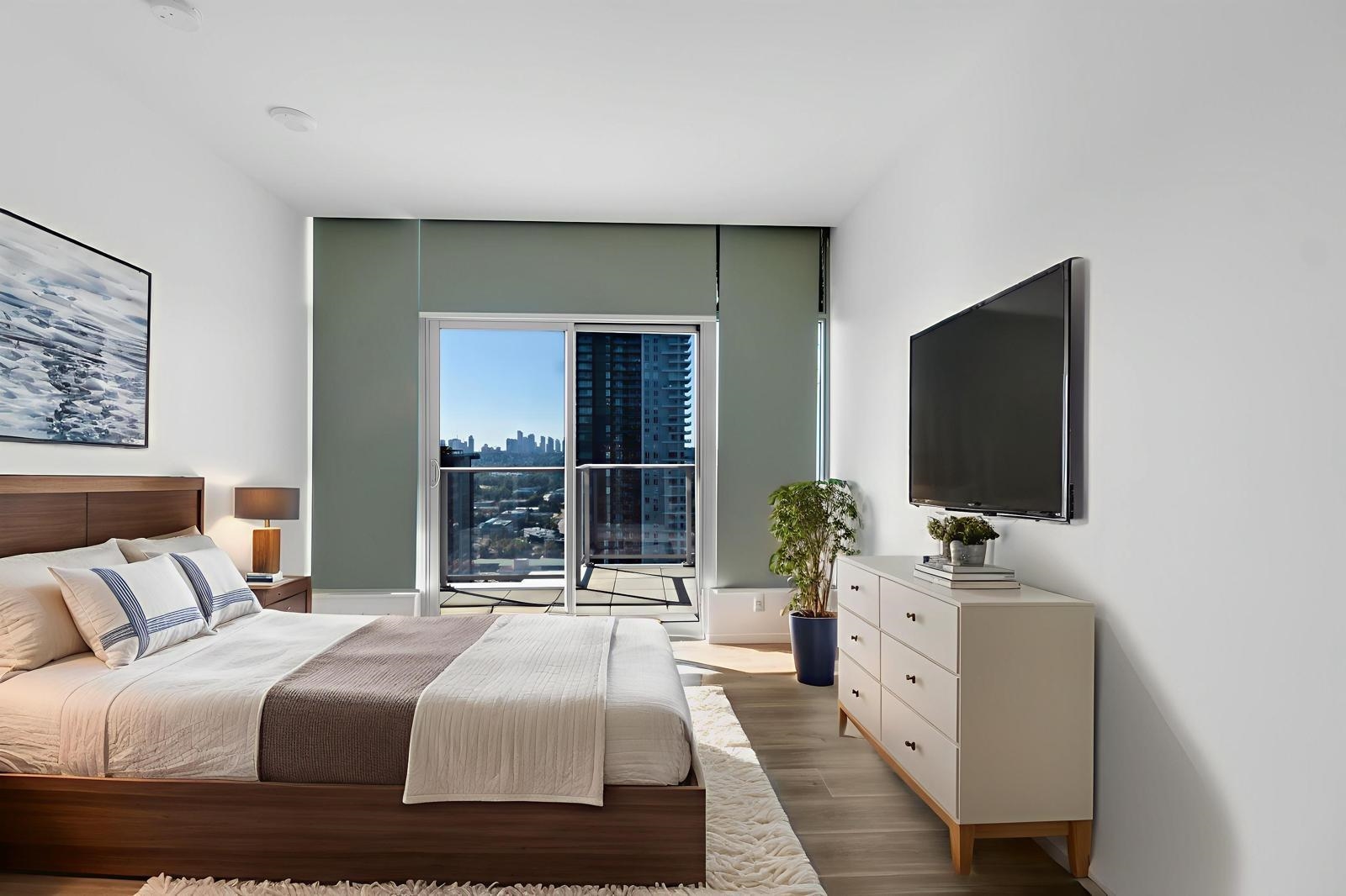 Welcome to Triomphe! Experience breathtaking 260-degree views of the water, city, and mountains from this stunning penthouse offering 2 bed +den & 2 bath.Delight in the expansive 468 sqft of balcony space, perfect for entertaining against a backdrop of picturesque scenery.This exquisite residence boasts 9'3" ceilings & floor-to-ceiling windows that create an airy ambiance. The chef’s kitchen features a breakfast bar & stainless steel Bosch appliances. Both bedrooms enjoy spectacular views with access to the...