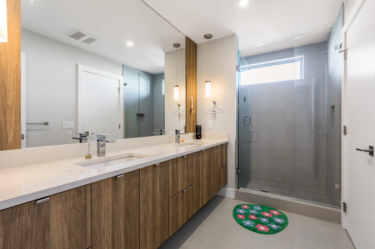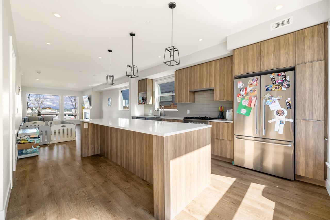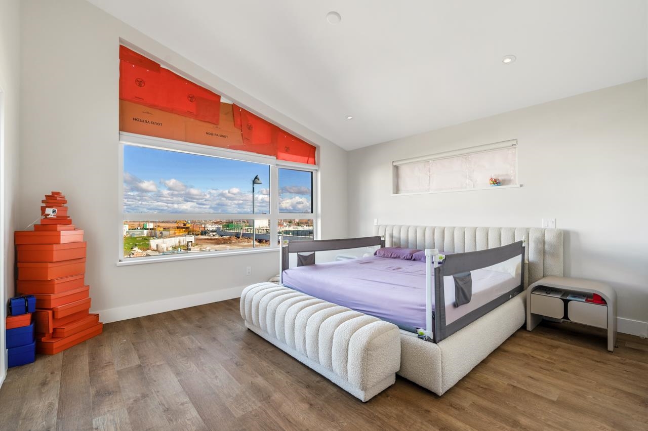 This stunning two-story modern home features a south-facing orientation that floods the kitchen and both upstairs bedrooms with abundant natural light all day long. The highlight of the space is an oversized central kitchen island, perfect for daily cooking and entertaining. Boasting an unbeatable location, it is steps away from the Water Park and right next to Tsawwassen Town Centre Mall, offering ultimate convenience for family living.