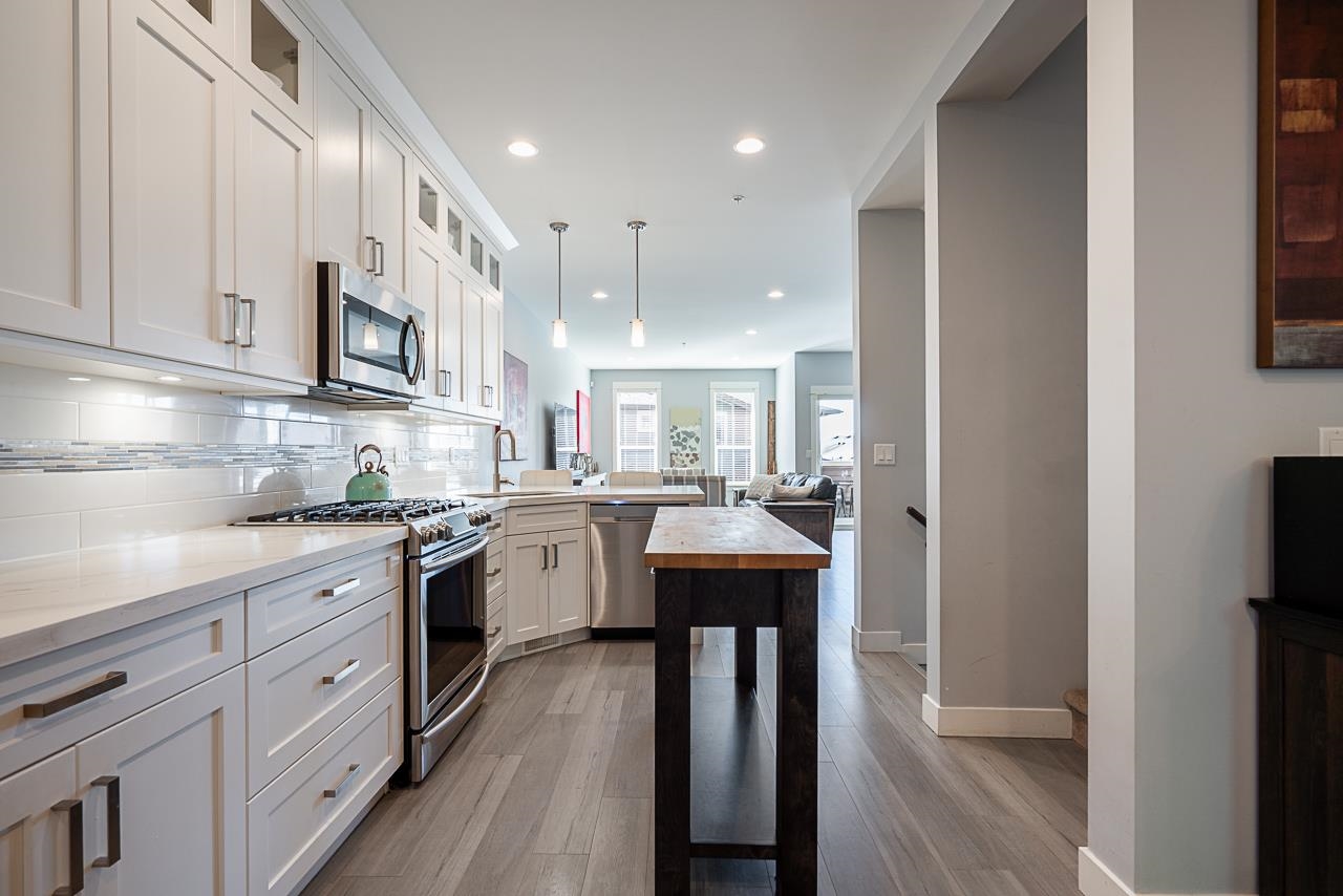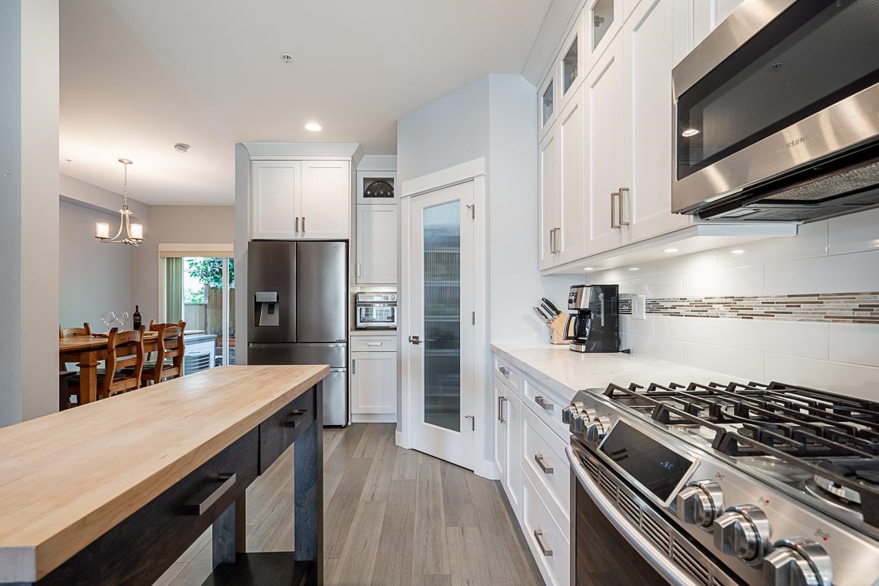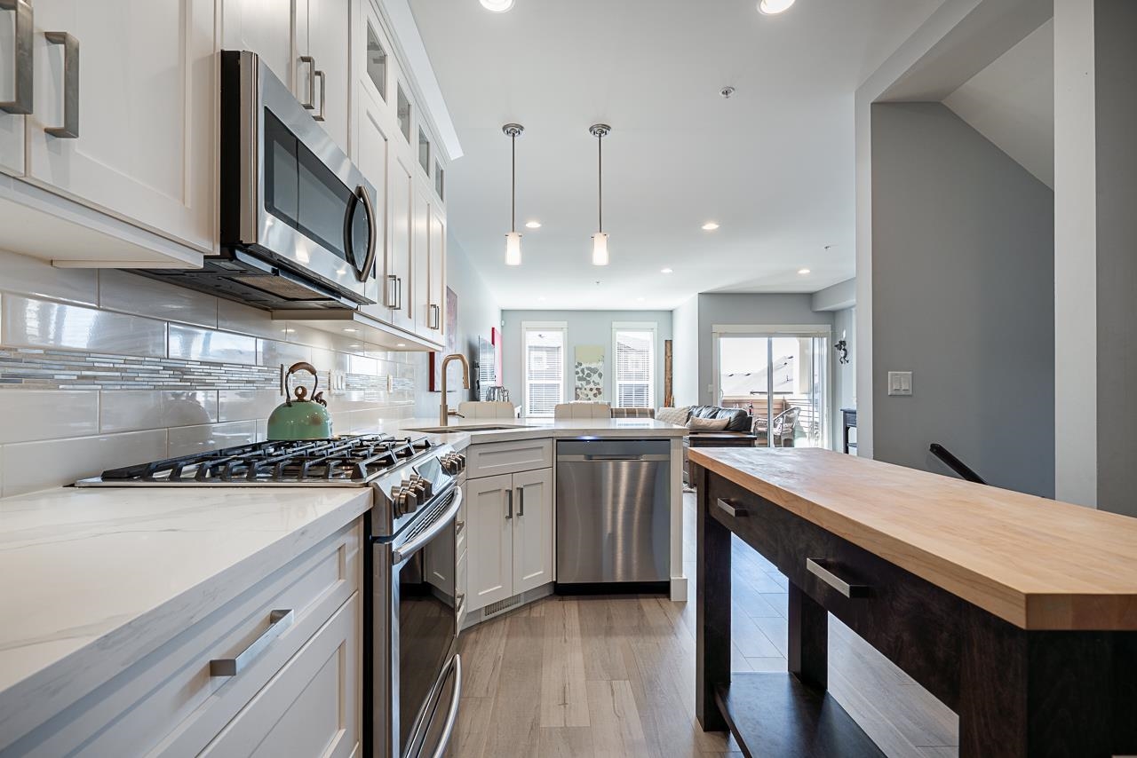 Nature & modern luxury combine in this sophisticated 4-bed townhome, backing onto a serene greenbelt w/ mountain views. The interior offers airy elegance with 9-foot ceilings, oversized windows, & a cozy fireplace in the open-concept living space. A chef-inspired kitchen shines with quartz countertops, a premium gas range, & generous breakfast bar, flowing into a dining area featuring a built-in bar. Your private, fenced patio & garden offers a peaceful retreat. The versatile layout has a lower-level bedroo...