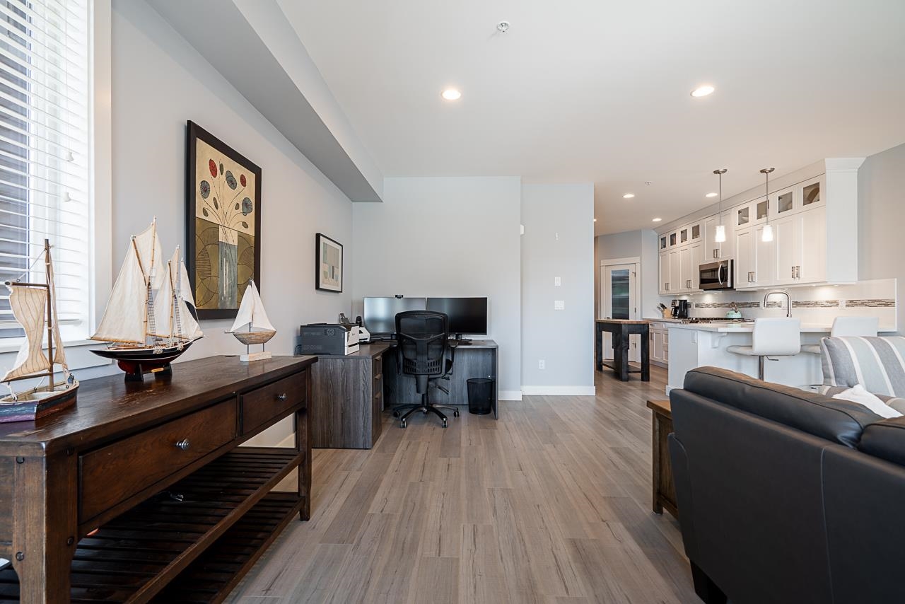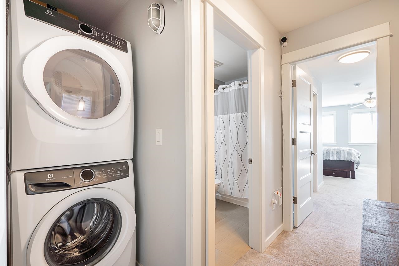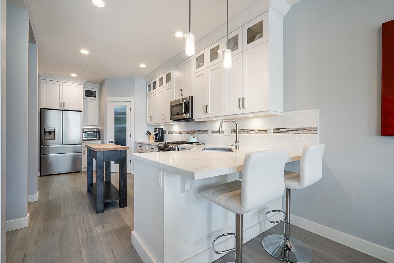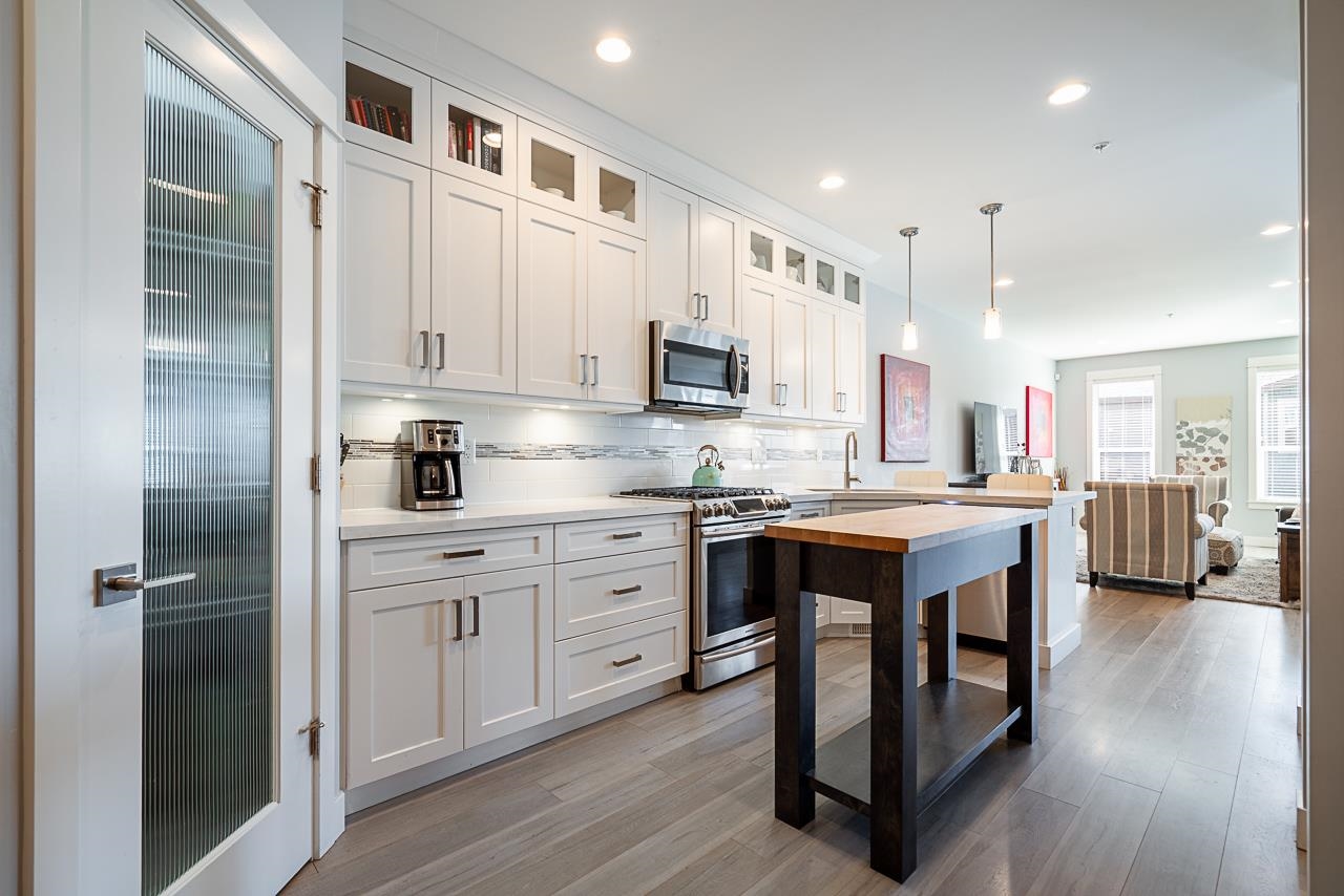Nature & modern luxury combine in this sophisticated 4-bed townhome, backing onto a serene greenbelt w/ mountain views. The interior offers airy elegance with 9-foot ceilings, oversized windows, & a cozy fireplace in the open-concept living space. A chef-inspired kitchen shines with quartz countertops, a premium gas range, & generous breakfast bar, flowing into a dining area featuring a built-in bar. Your private, fenced patio & garden offers a peaceful retreat. The versatile layout has a lower-level bedroo...