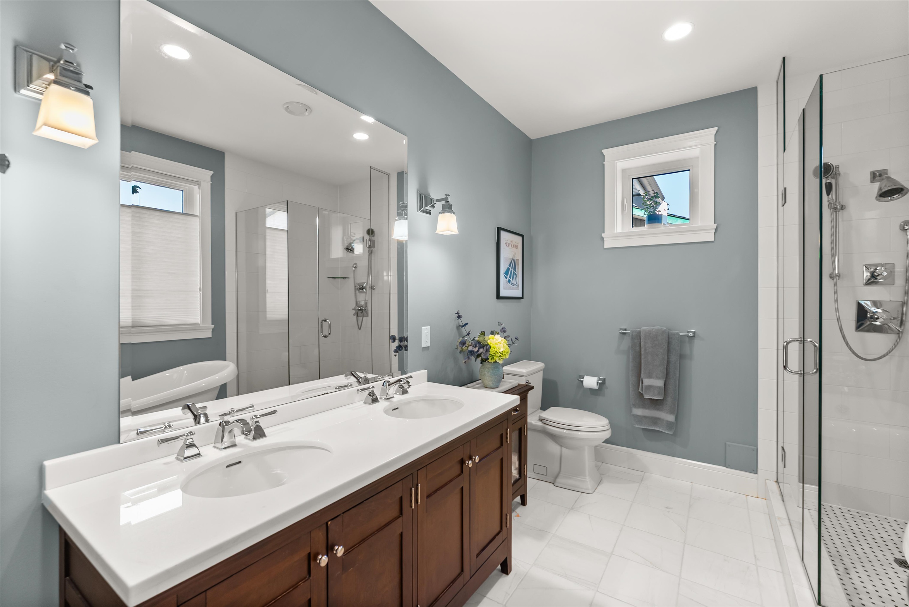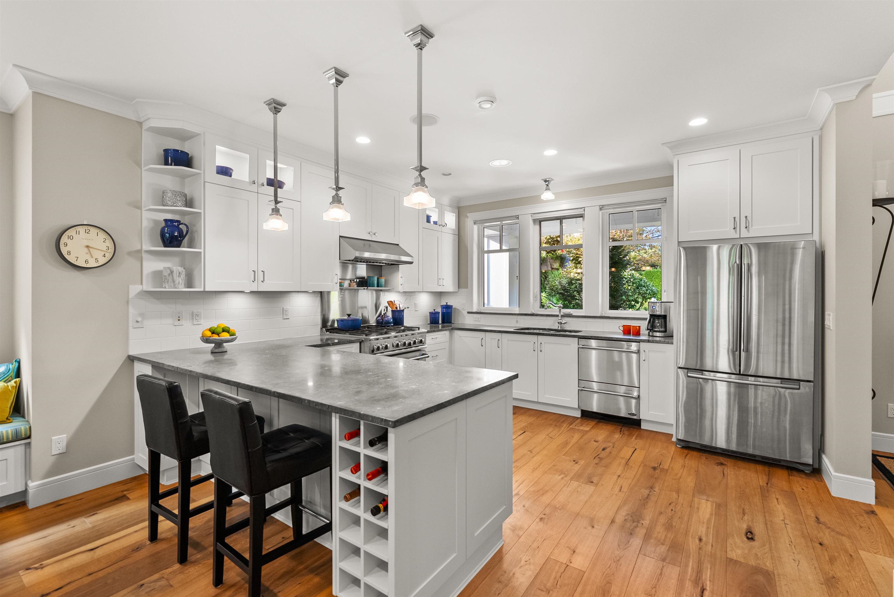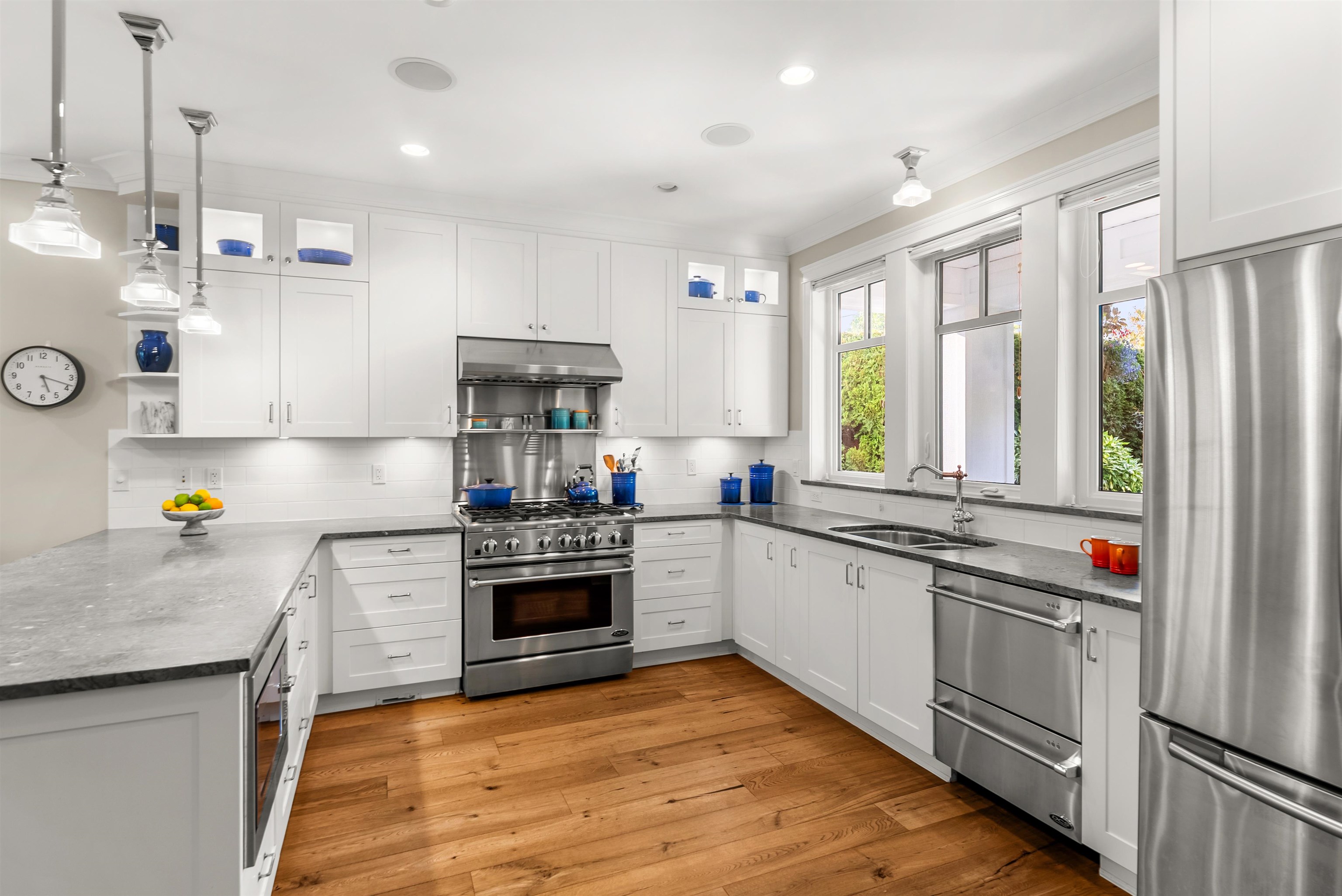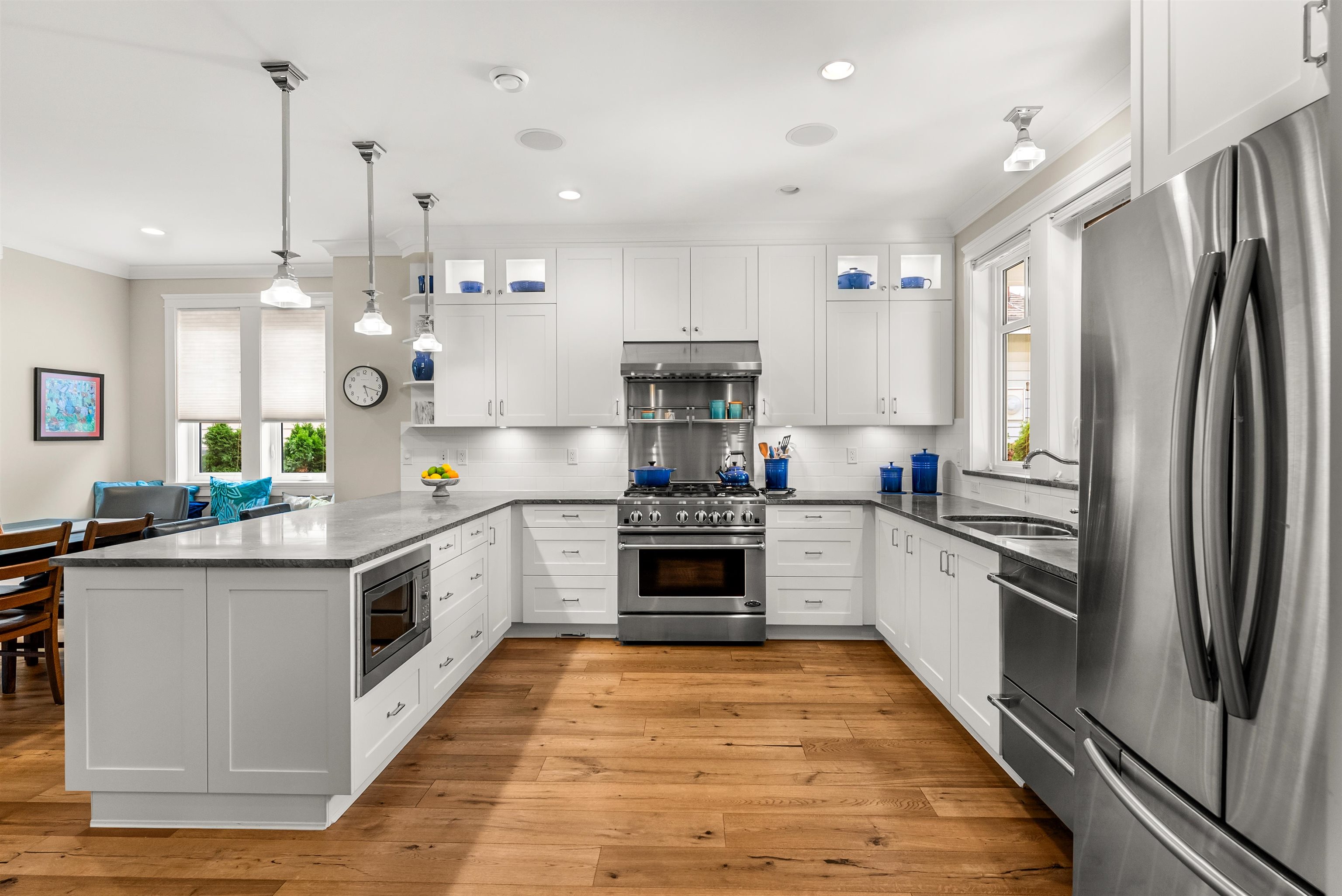 Step into timeless elegance with thus custom built home, where luxury details meet everyday comfort! Beautifully landscaped gardens set the tone while the private south-facing backyard offers a breathtaking retreat. The open-concept design is filled with natural light, featuring 10ft ceilings, Duchateau eng hardwood & Rejuvenation lighting. The chef's kitchen is a true showstopper with marble counters, shaker cabinetry and DCS appliances including a 6-burner gas range. The main floor primary bedroom is your...