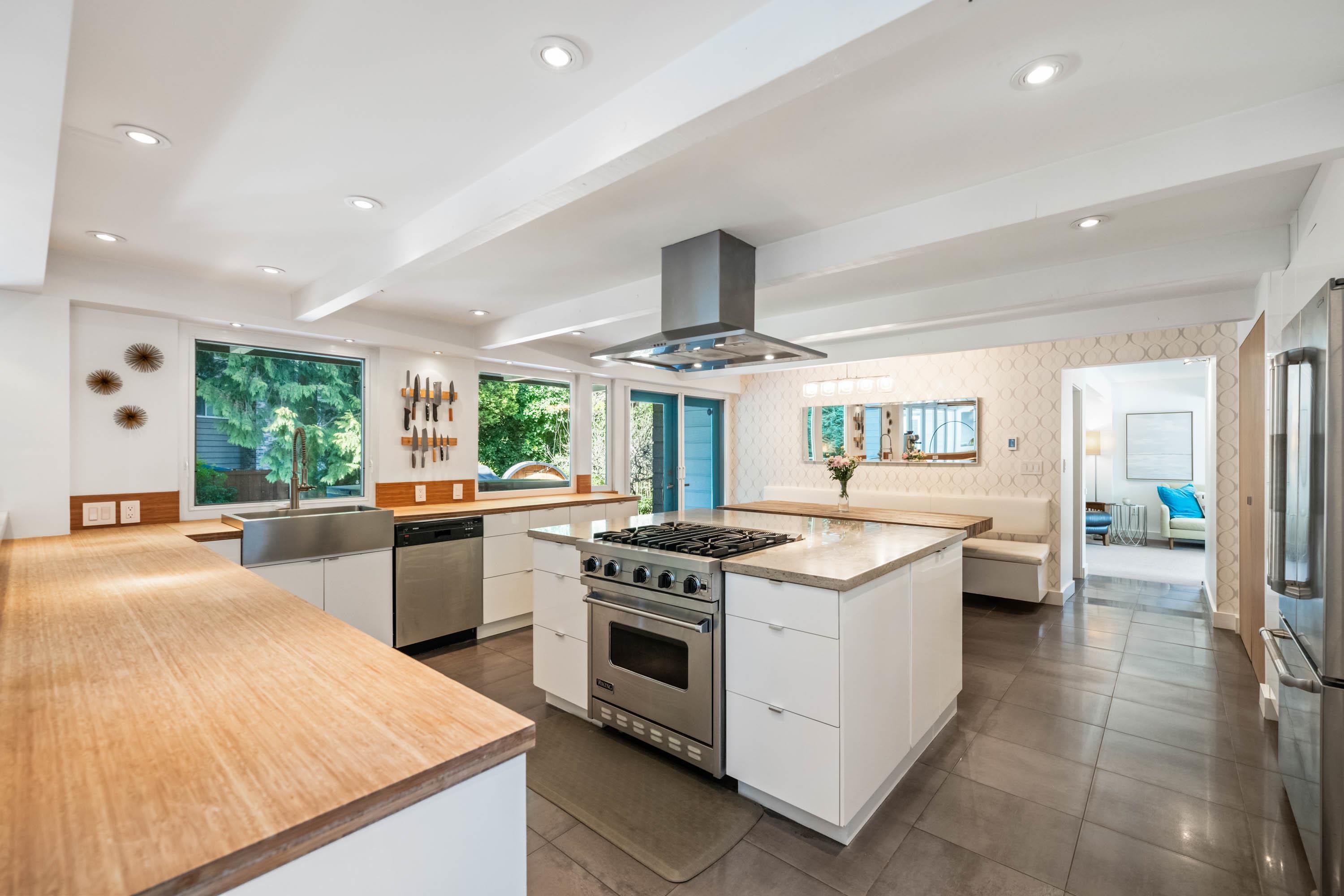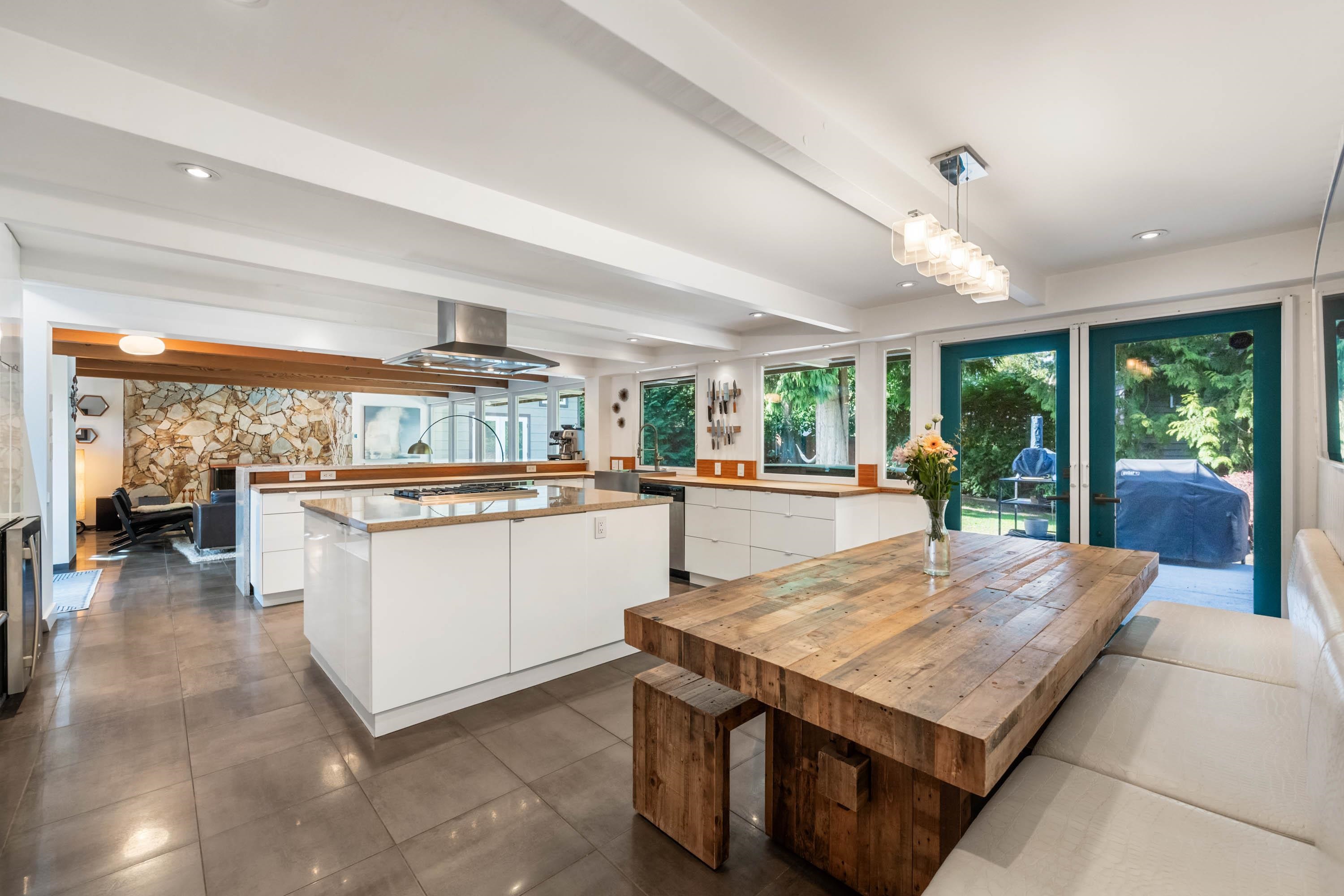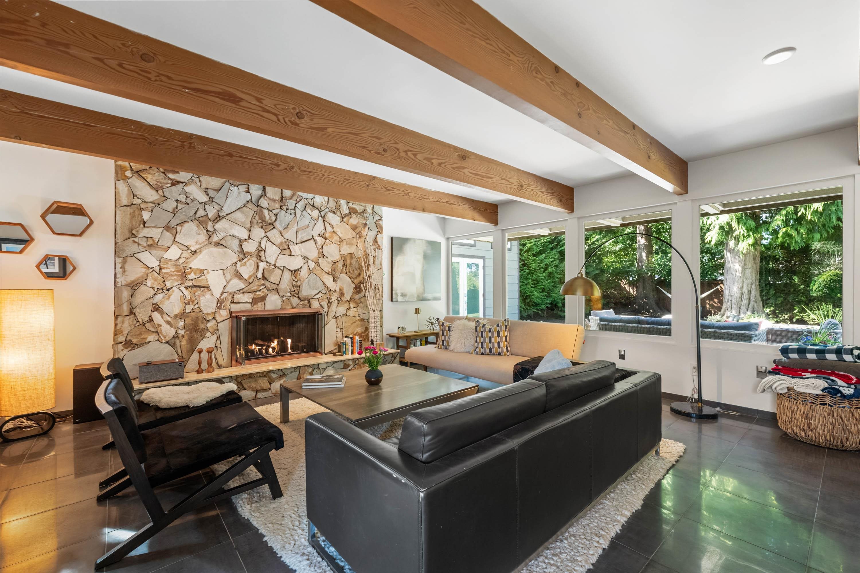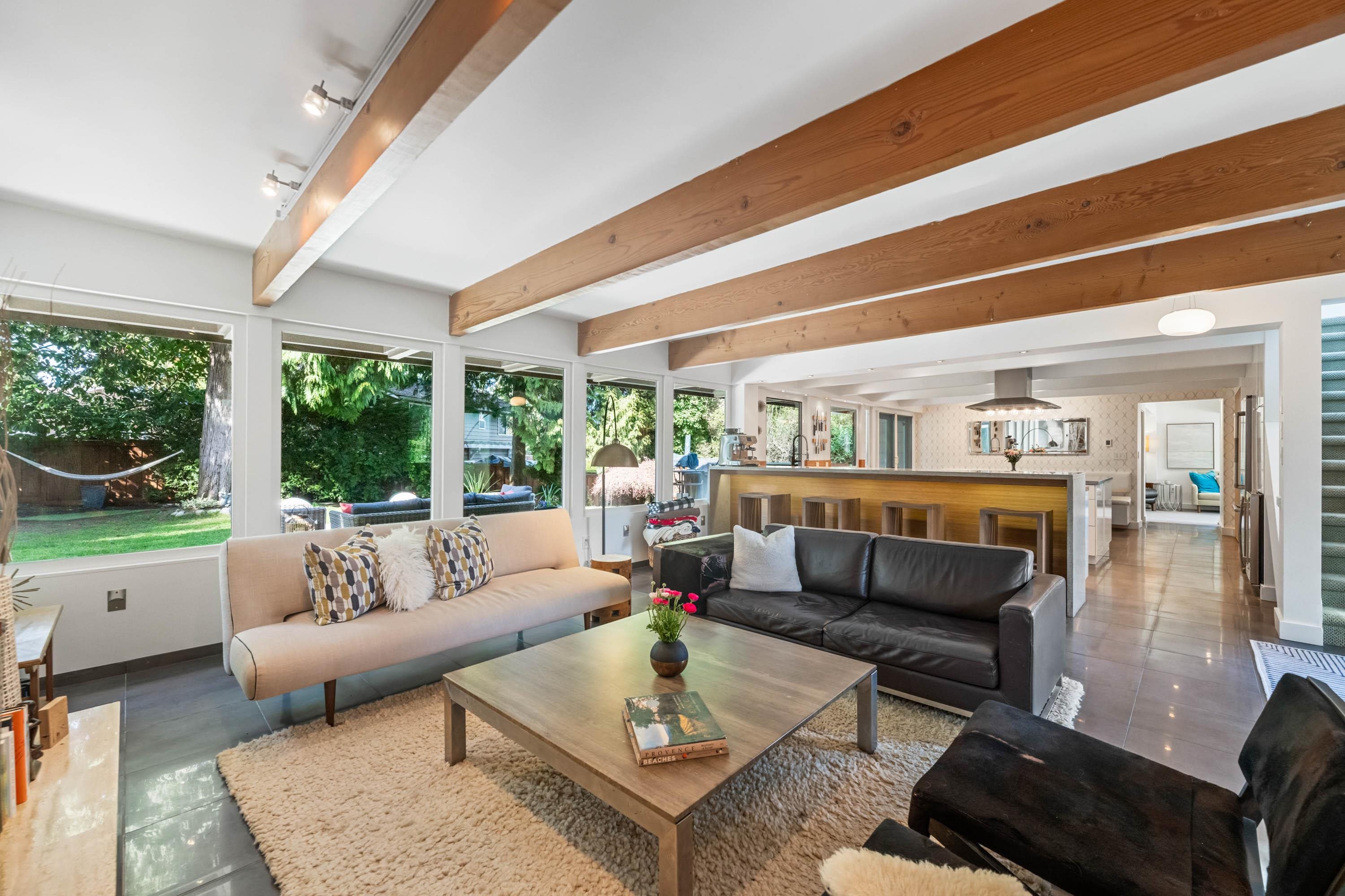 Unique and truly special, this updated Mid-Century Modern home offers the perfect blend of character, comfort, and style. Exposed beams, expansive windows, and an open-concept main floor create a bright and inviting space ideal for both entertaining and everyday living. With 3 bedrooms upstairs, plus a family room and additional bedroom/office on the main, there is plenty of flexibility for families, guests, or a home workspace. Extensive upgrades include a renovated kitchen and bathrooms, beautiful exterio...
