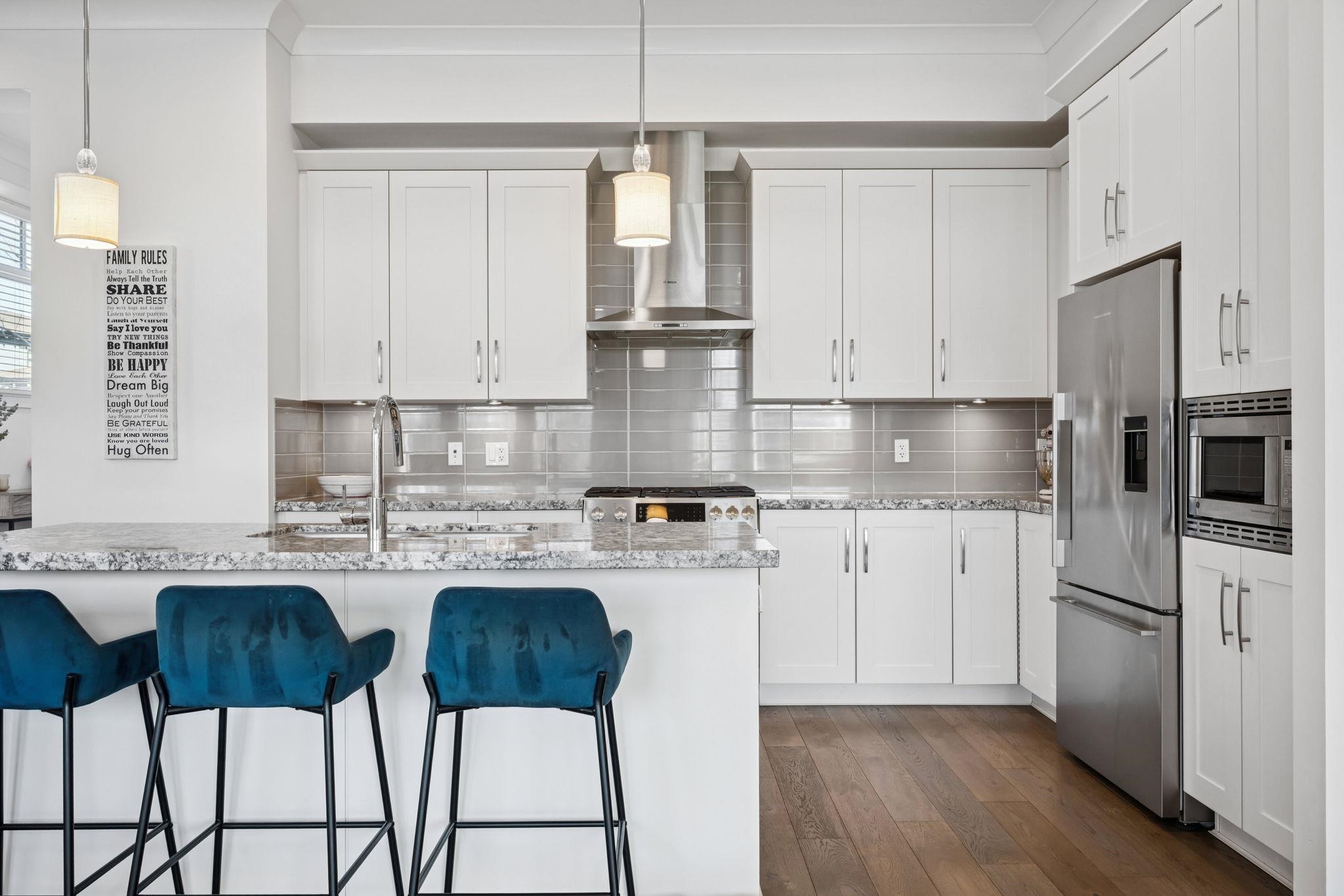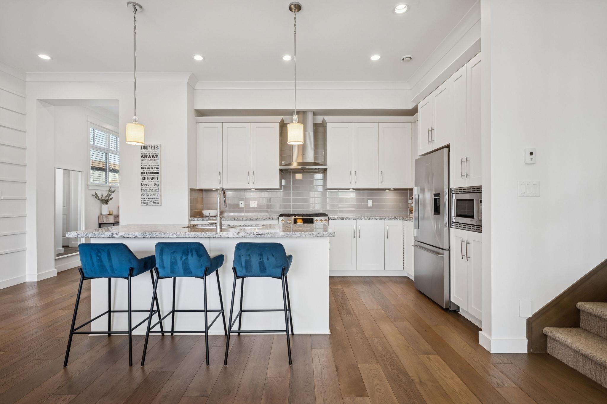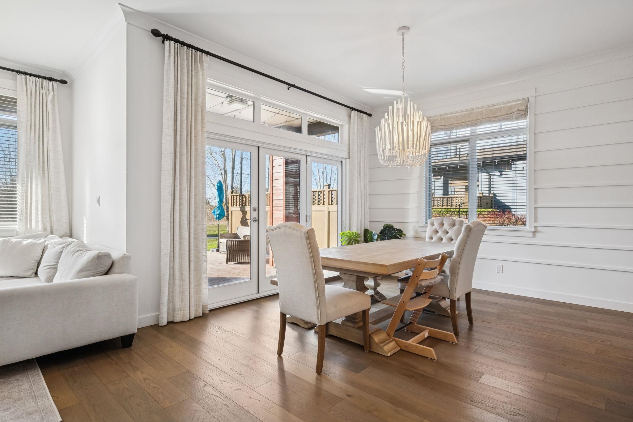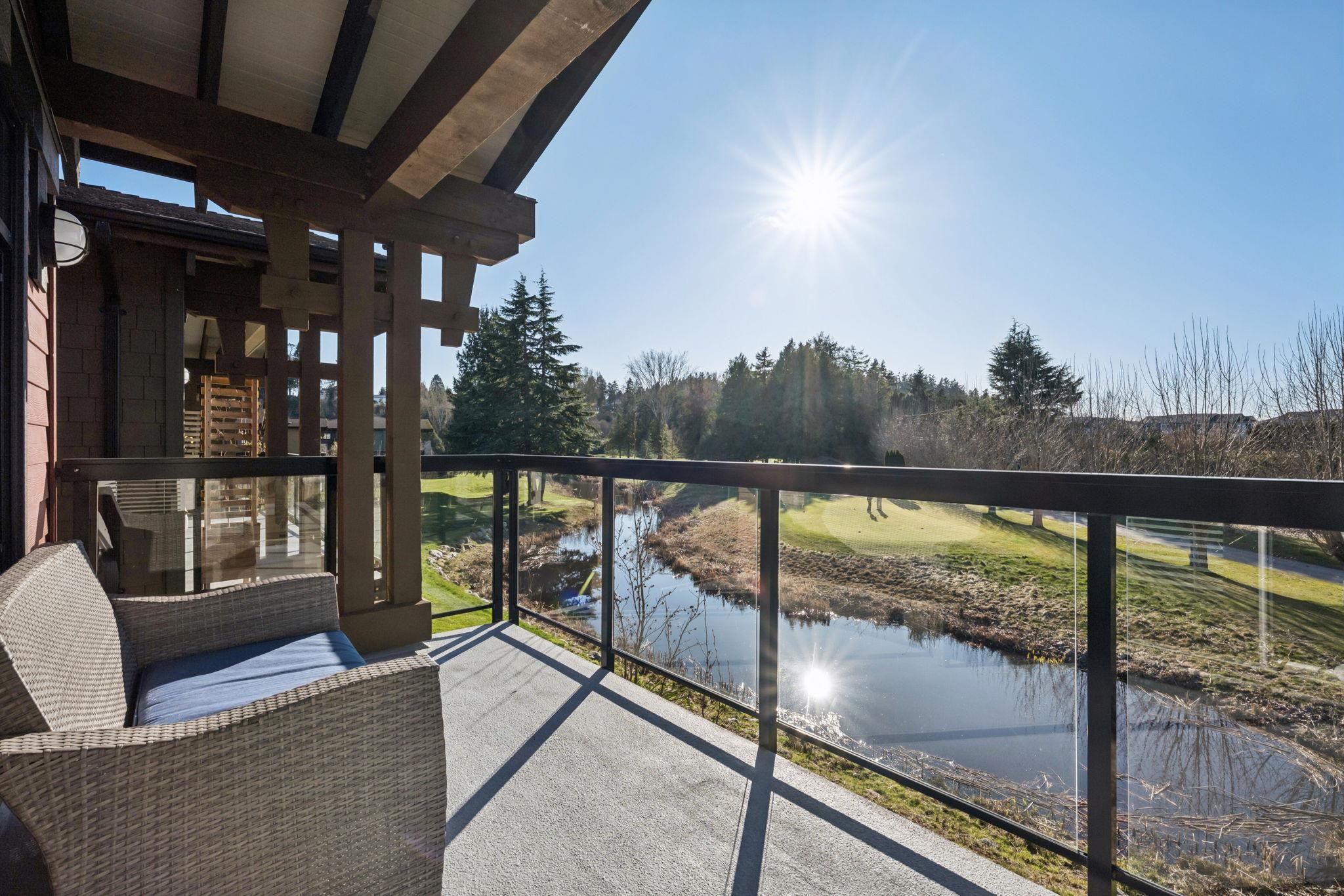 The original Primary Show Home at Tsawwassen Springs, this exceptional 2,546 sq ft residence overlooks the 7th tee with a serene pond and poplar tree-lined for privacy. Set on a rare perimeter lot beside a garden, it enjoys sunlight from multiple exposures. Offering 4 bedrooms and 4 baths, including two primary bedrooms, the home features an expansive family room, shiplap detailing, designer lighting, radiant heat throughout and tri-fold doors off the dining room for seamless indoor-outdoor living. The chef...