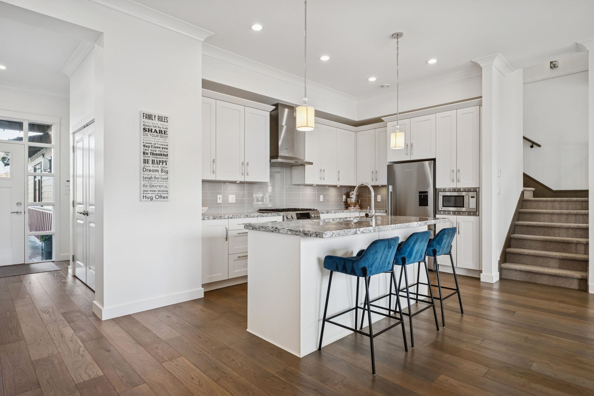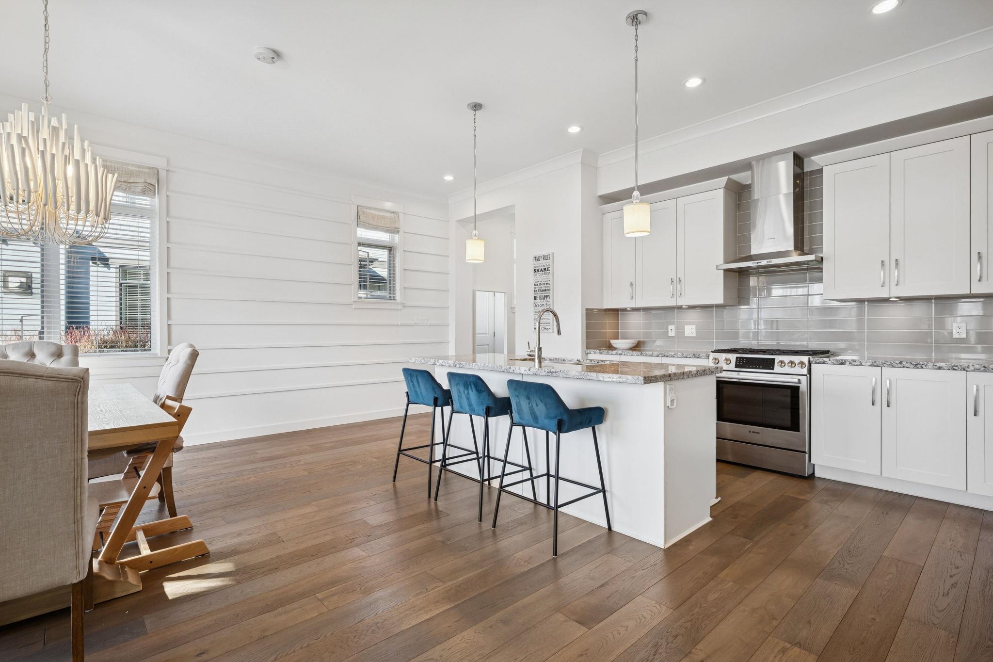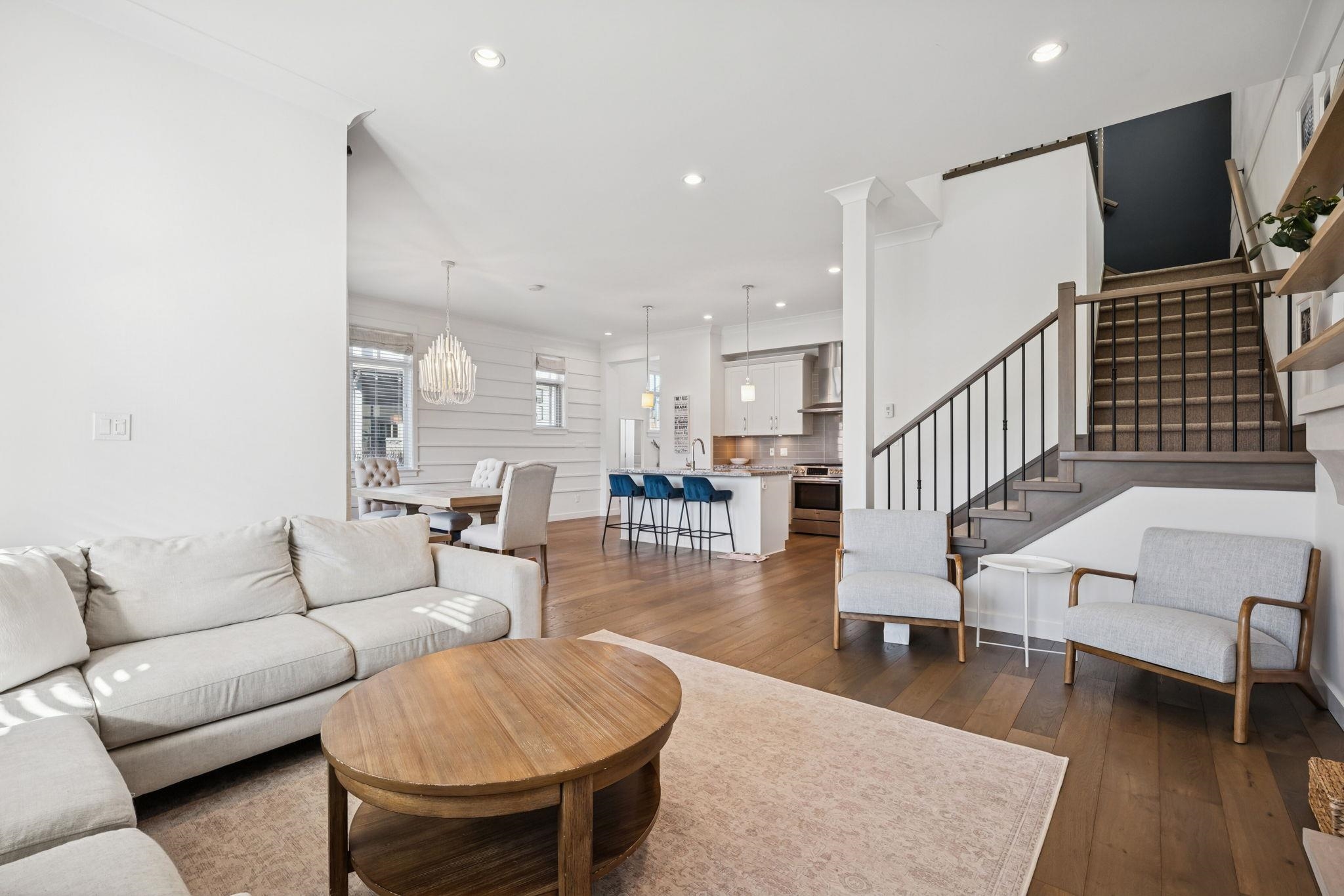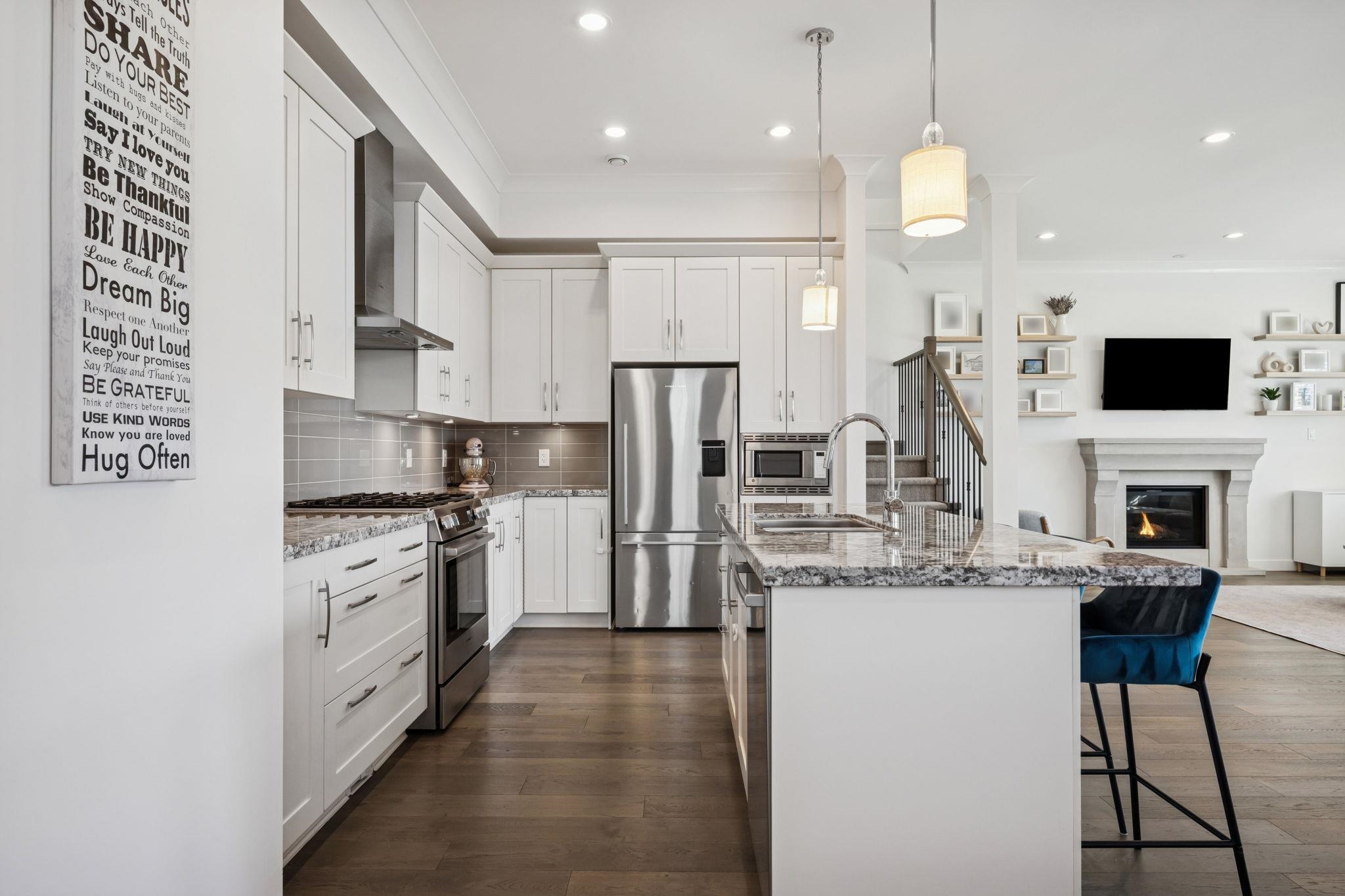 The original Primary Show Home at Tsawwassen Springs, this exceptional 2,546 sq ft residence overlooks the 7th tee with a serene pond and poplar tree-lined for privacy. Set on a rare perimeter lot beside a garden, it enjoys sunlight from multiple exposures. Offering 4 bedrooms and 4 baths, including two primary bedrooms, the home features an expansive family room, shiplap detailing, designer lighting, radiant heat throughout and tri-fold doors off the dining room for seamless indoor-outdoor living. The chef...