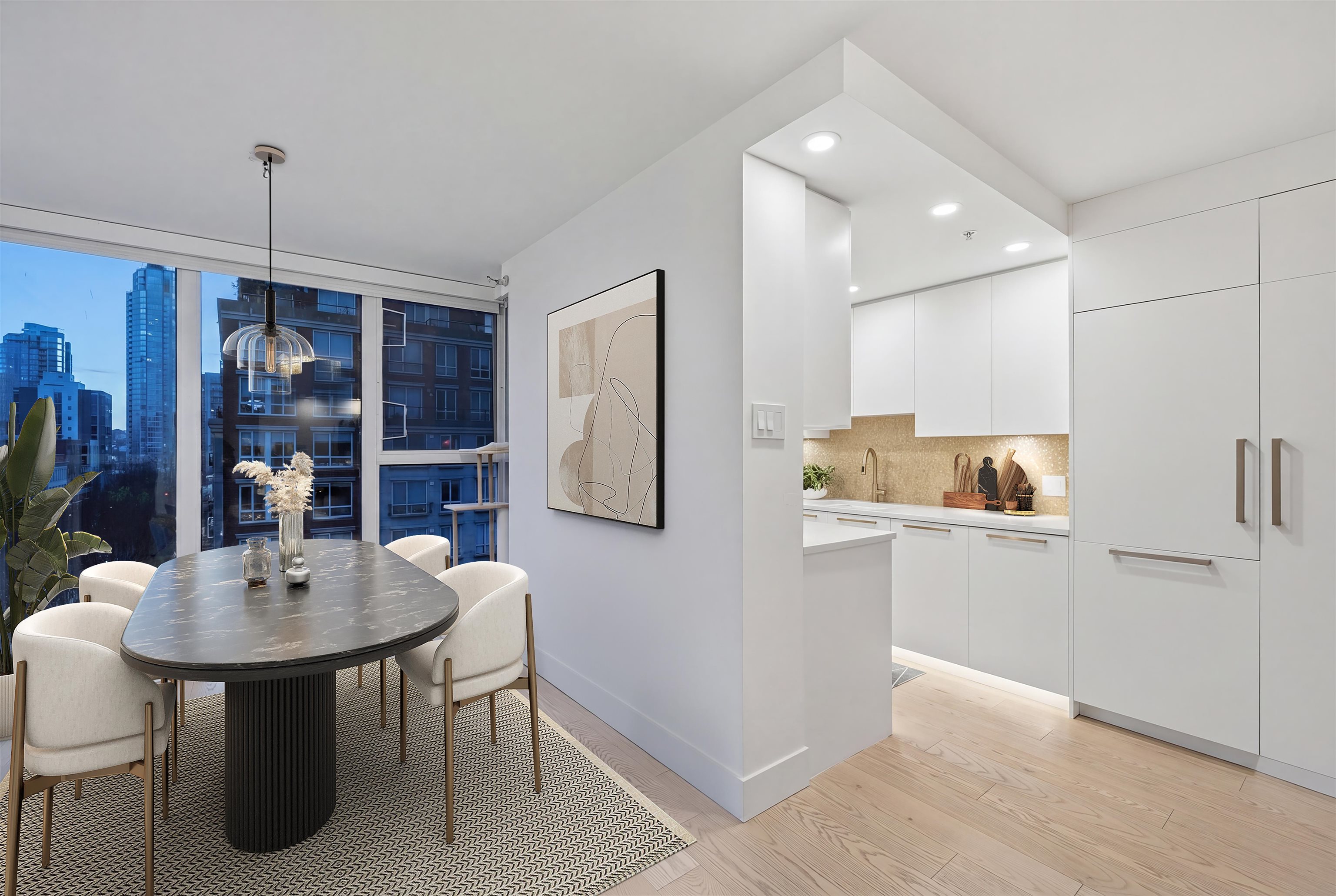 Welcome to City Crest in the heart of Yaletown. This beautifully appointed 2-bed, 2-bath home offers a seamless blend of comfort and style, filled with natural light from floor-to-ceiling windows and captivating city views. Renovated in 2018 by award-winning Space Harmony Interiors, it features a well-designed kitchen, beautiful flooring throughout, and outstanding millwork by California Closets in both bedrooms. Enjoy one-level living in a well-maintained building with reasonable strata fees, new elevators...