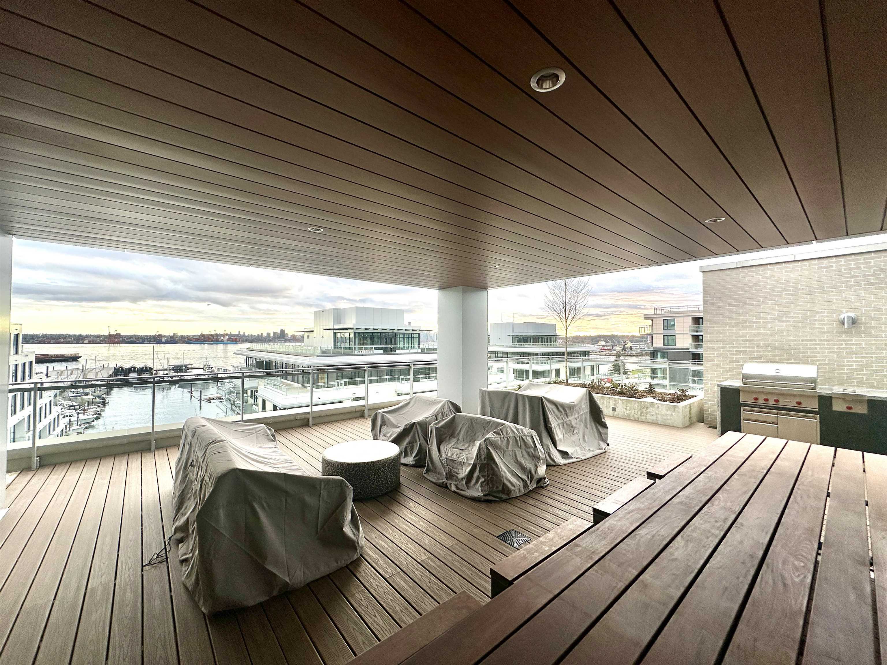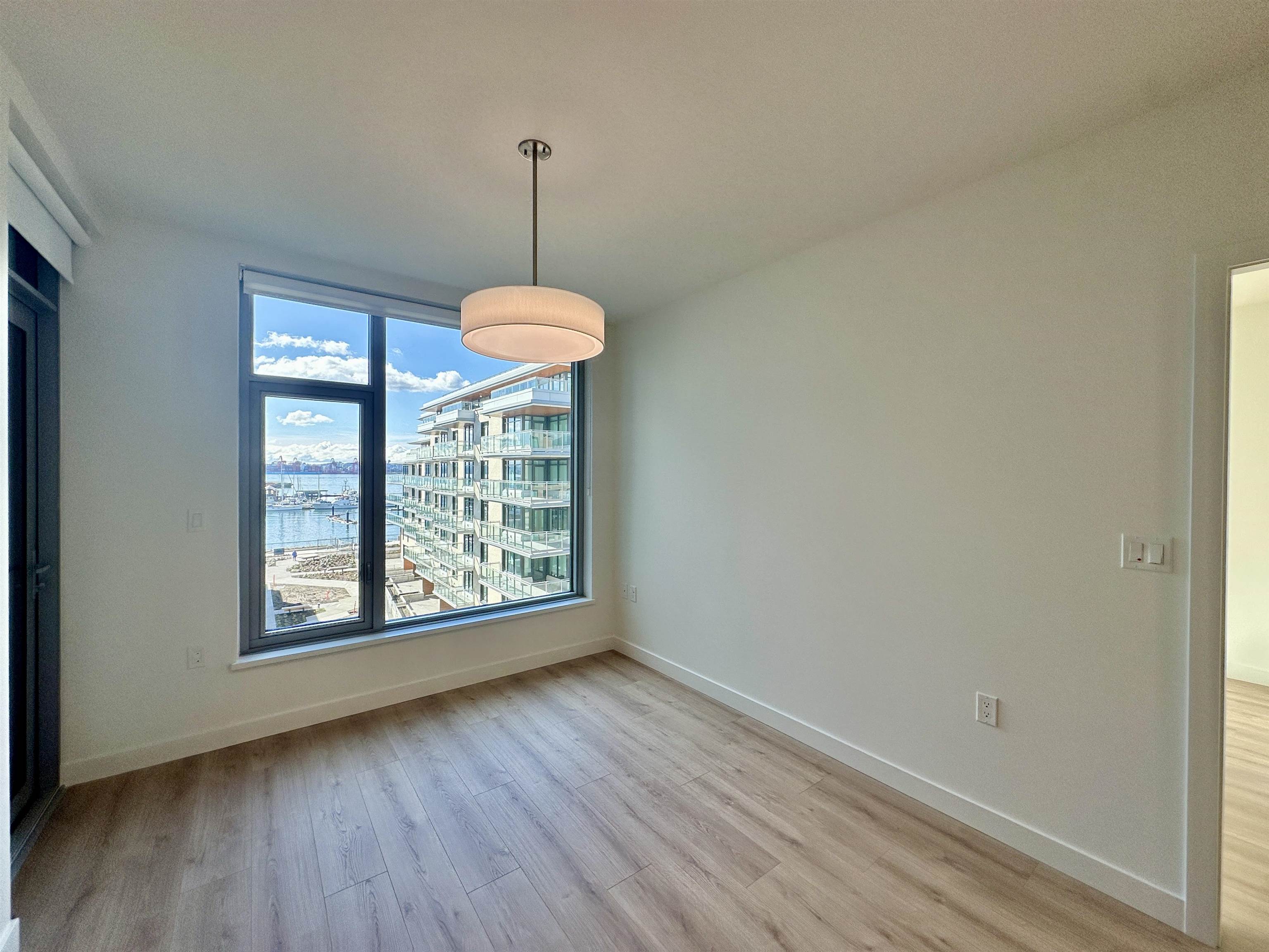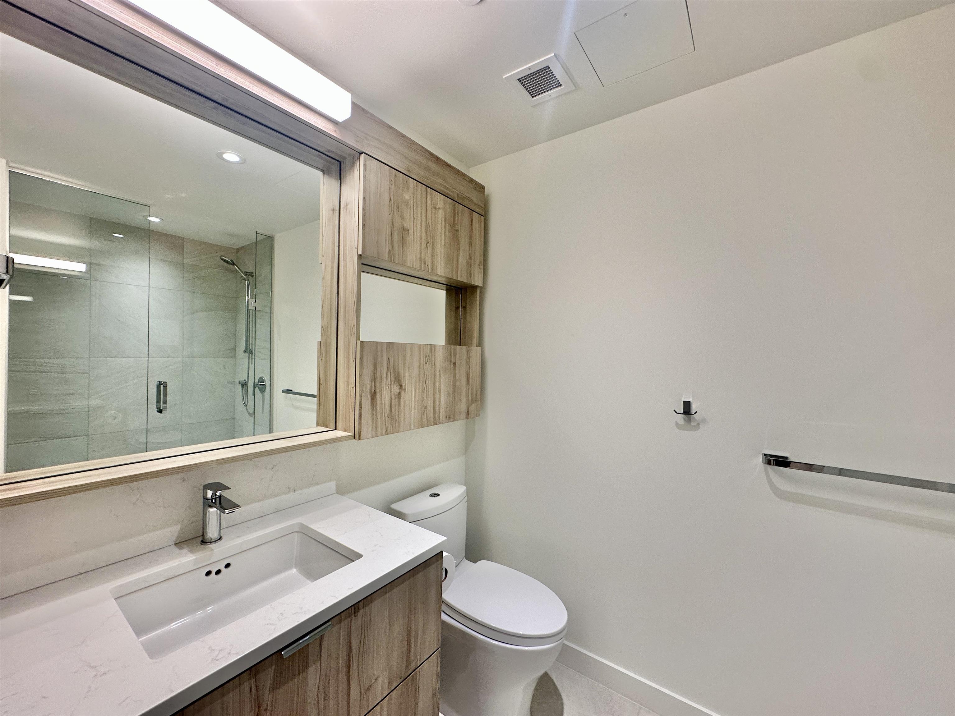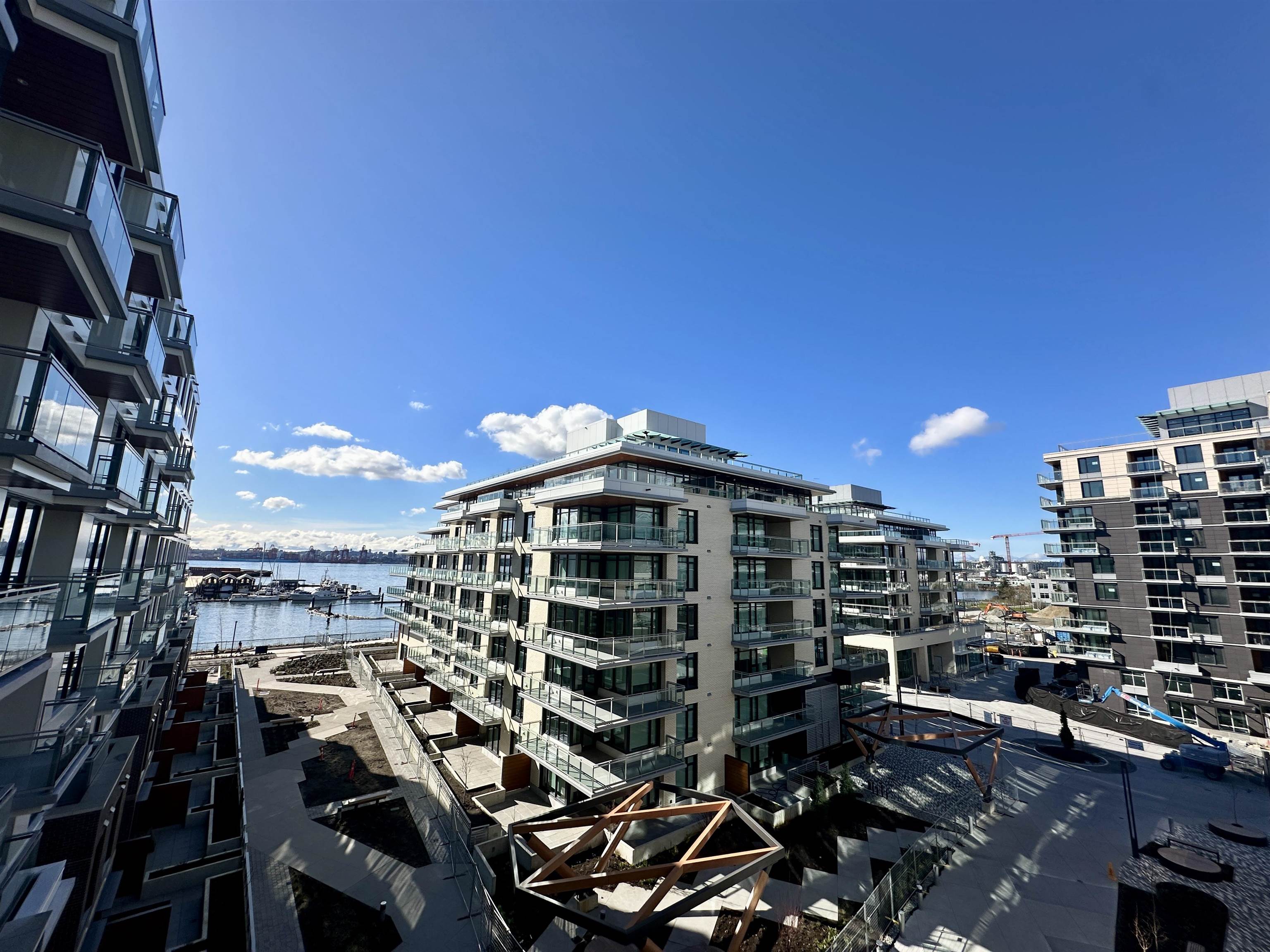 Property Features • 869 sq ft functional layout • 2 bedrooms and 2 full bathrooms • 5th floor unit • Air conditioning • Open-concept kitchen and living space • Stainless steel appliances (stove, fridge, dishwasher) • In-suite laundry • Private outdoor terrace • Laminate flooring • 1 underground parking w/ EV charger rough-in • 2 bike racks in bike storage • No storage locker