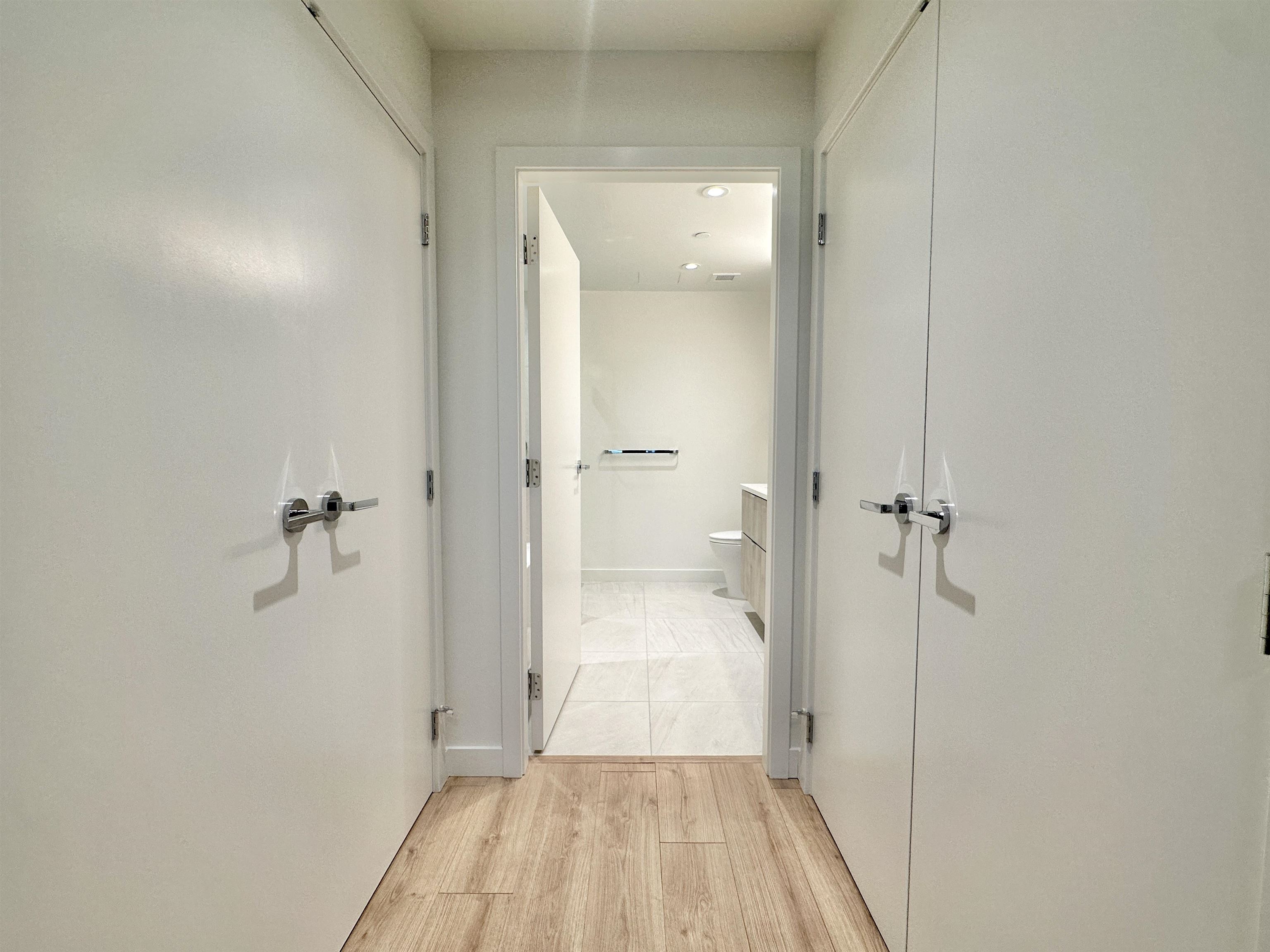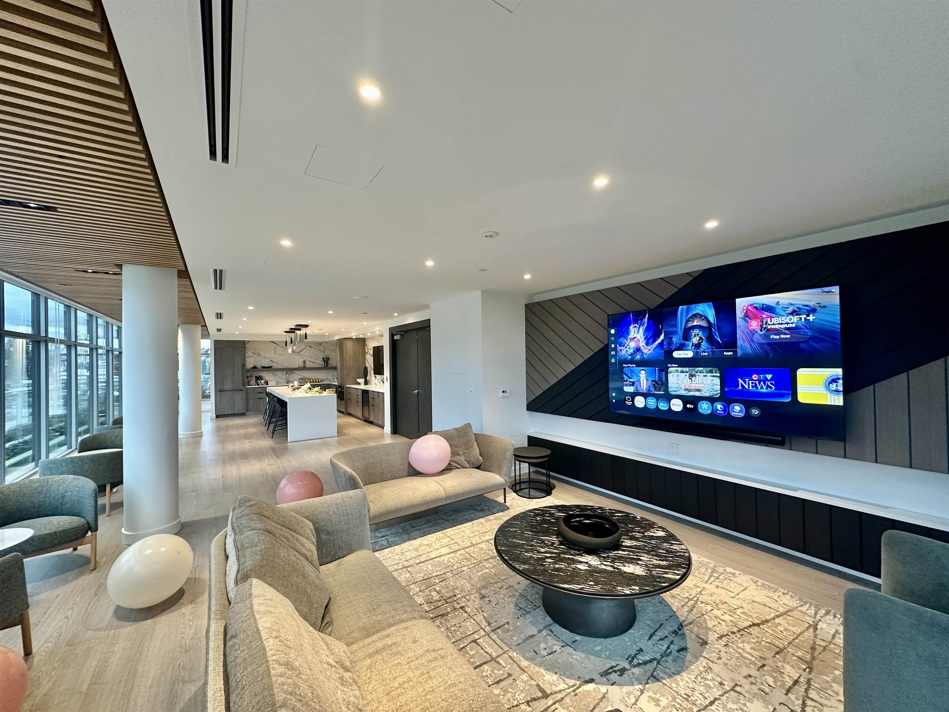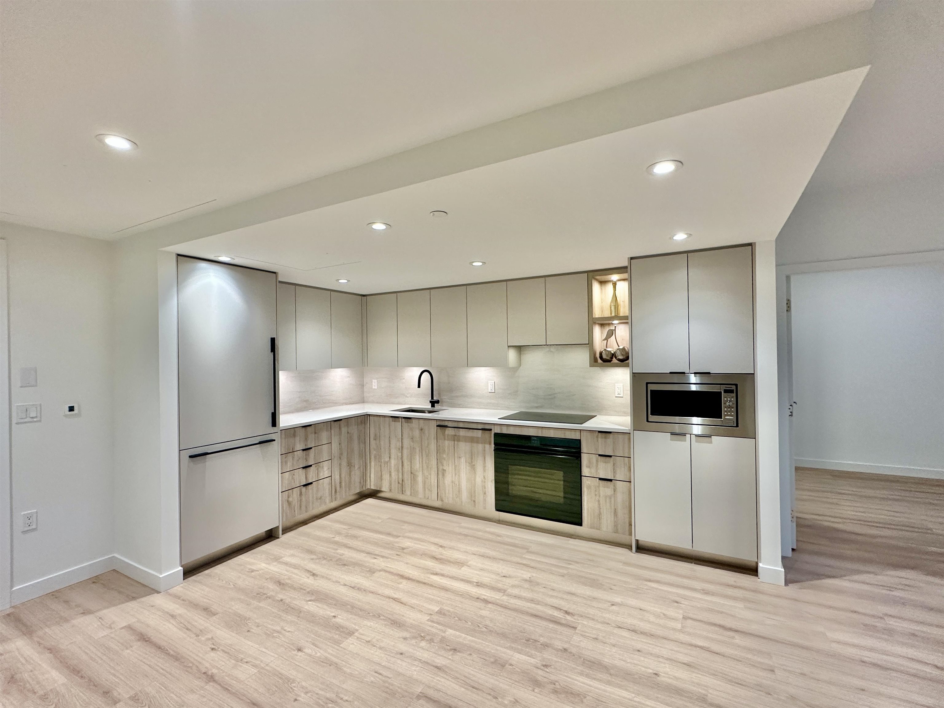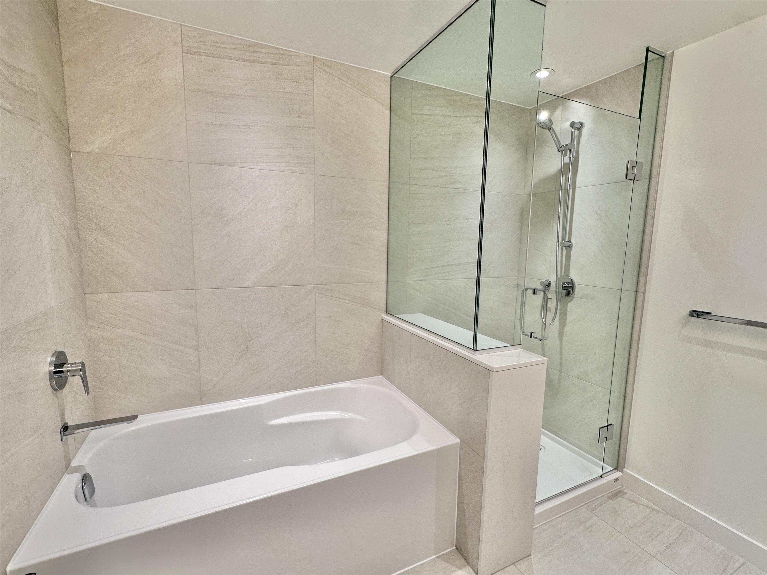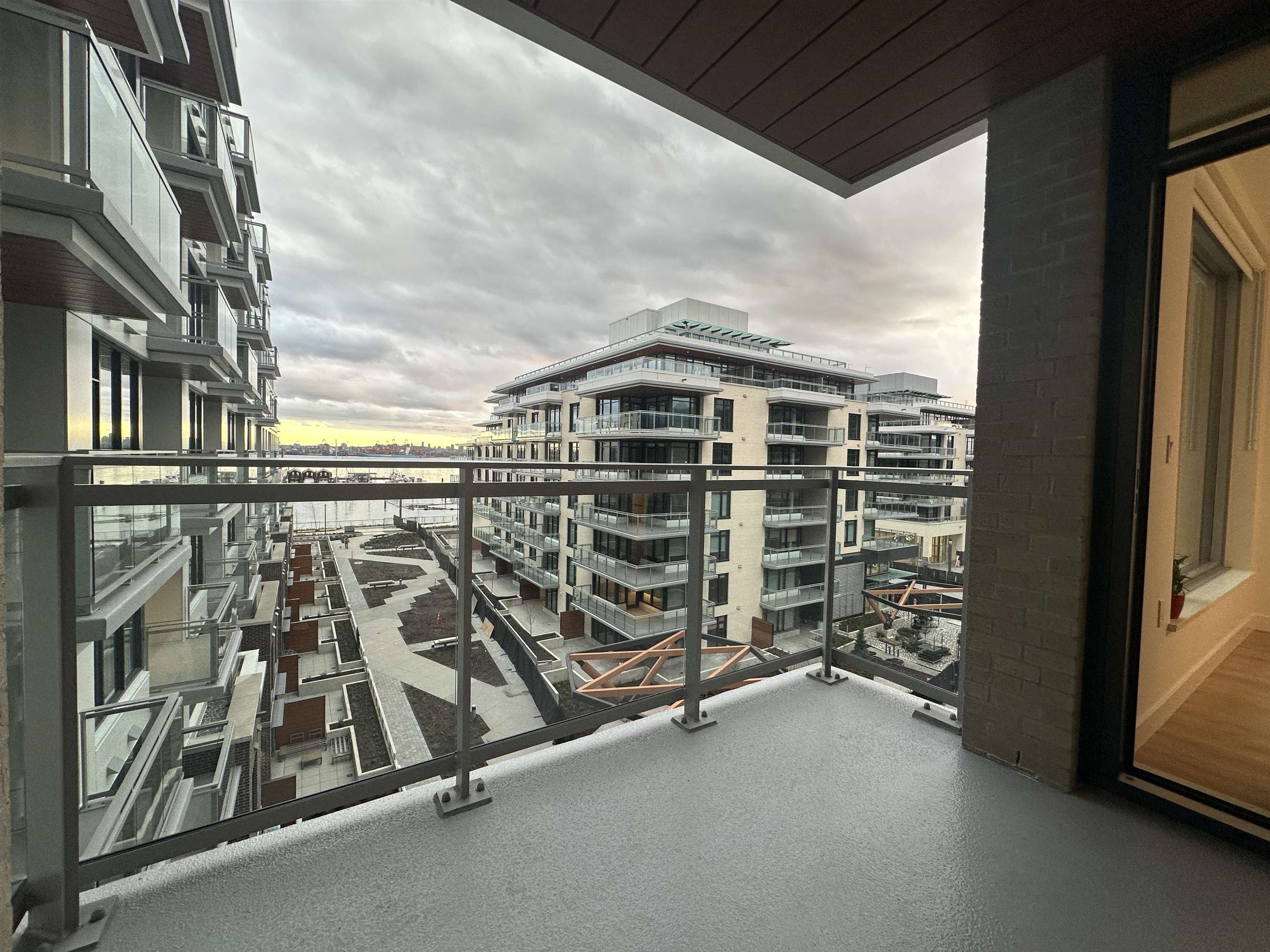 Property Features • 869 sq ft functional layout • 2 bedrooms and 2 full bathrooms • 5th floor unit • Air conditioning • Open-concept kitchen and living space • Stainless steel appliances (stove, fridge, dishwasher) • In-suite laundry • Private outdoor terrace • Laminate flooring • 1 underground parking w/ EV charger rough-in • 2 bike racks in bike storage • No storage locker