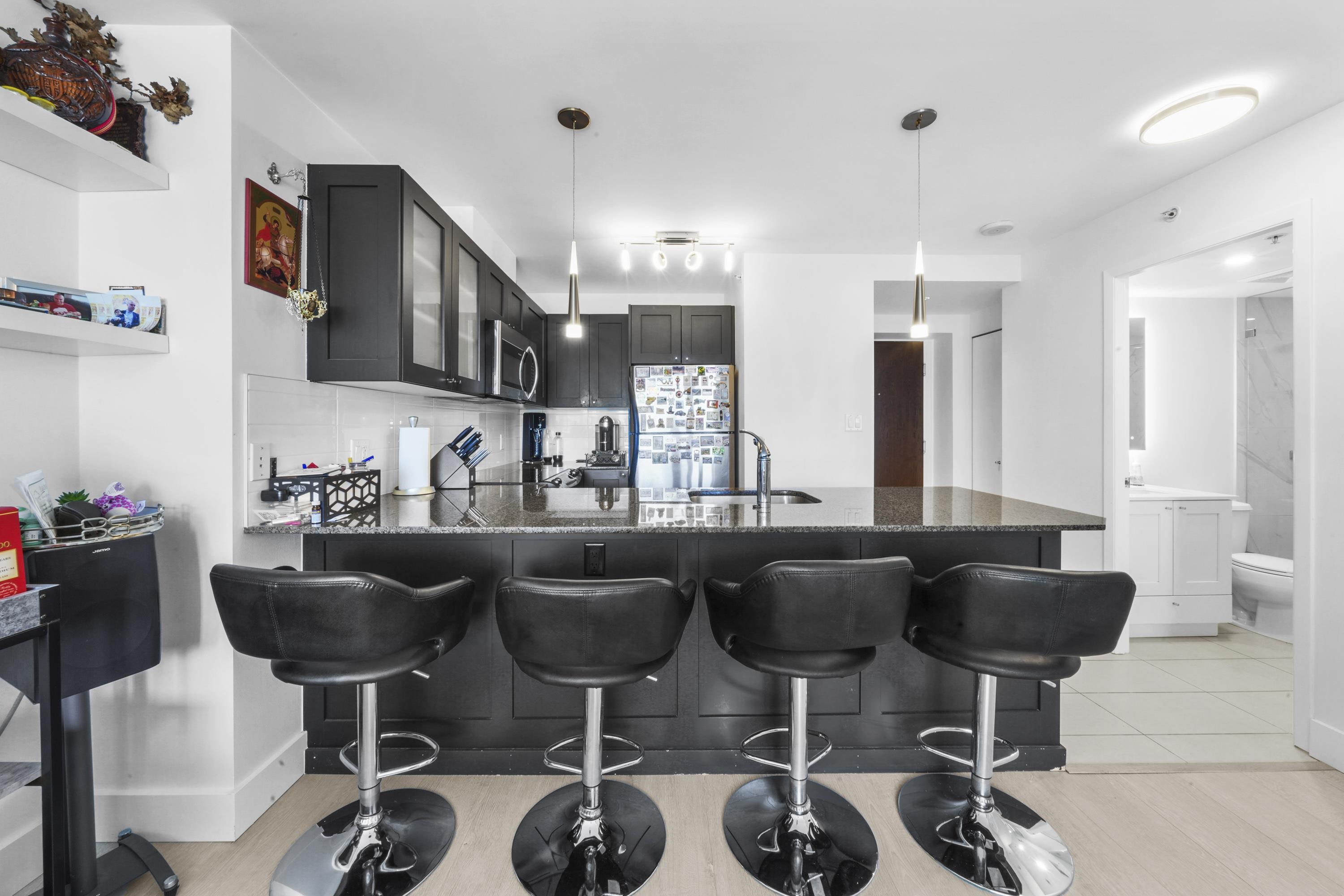 Welcome to Axis at Highgate Village! This bright and beautifully updated 1-bedroom, 1-bath home features new flooring throughout, a custom-renovated bathroom, and a functional open-concept layout. The gourmet kitchen boasts granite countertops, a large island, and stainless steel appliances. Enjoy stunning mountain and city views from the spacious living area and covered balcony. Additional highlights include in-suite laundry, 1 parking stall, and 1 storage locker. Building amenities include a fitness centr...