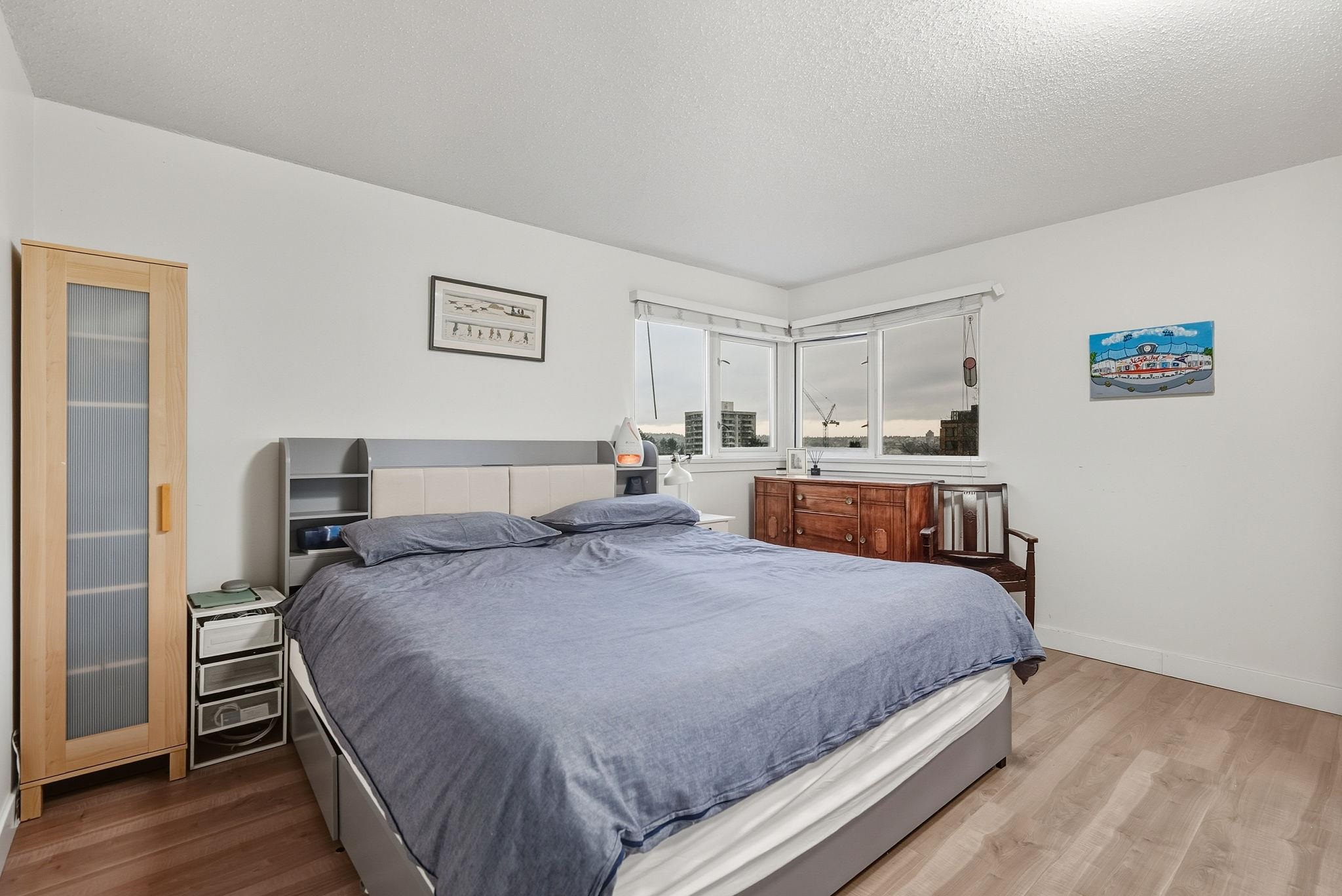 STUNNING CITY, MOUNTAIN & WATER VIEWS from this S/W CORNER CONCRETE home in Panorama Gardens. BRIGHT & SPACIOUS 2 bed/2 bath+den home w/ oversized windows & views from every room, beautiful newer flooring & open concept living & dining - perfect for entertaining! Updated kitchen w/ modern white cabinetry & S/S appliances. Enclosed den/office w/ balcony access provides the ideal work-from-home setup. HUGE primary bedroom (easily fits a king) with 3-pc ensuite. Large 2nd bedroom & beautifully renovated main b...
