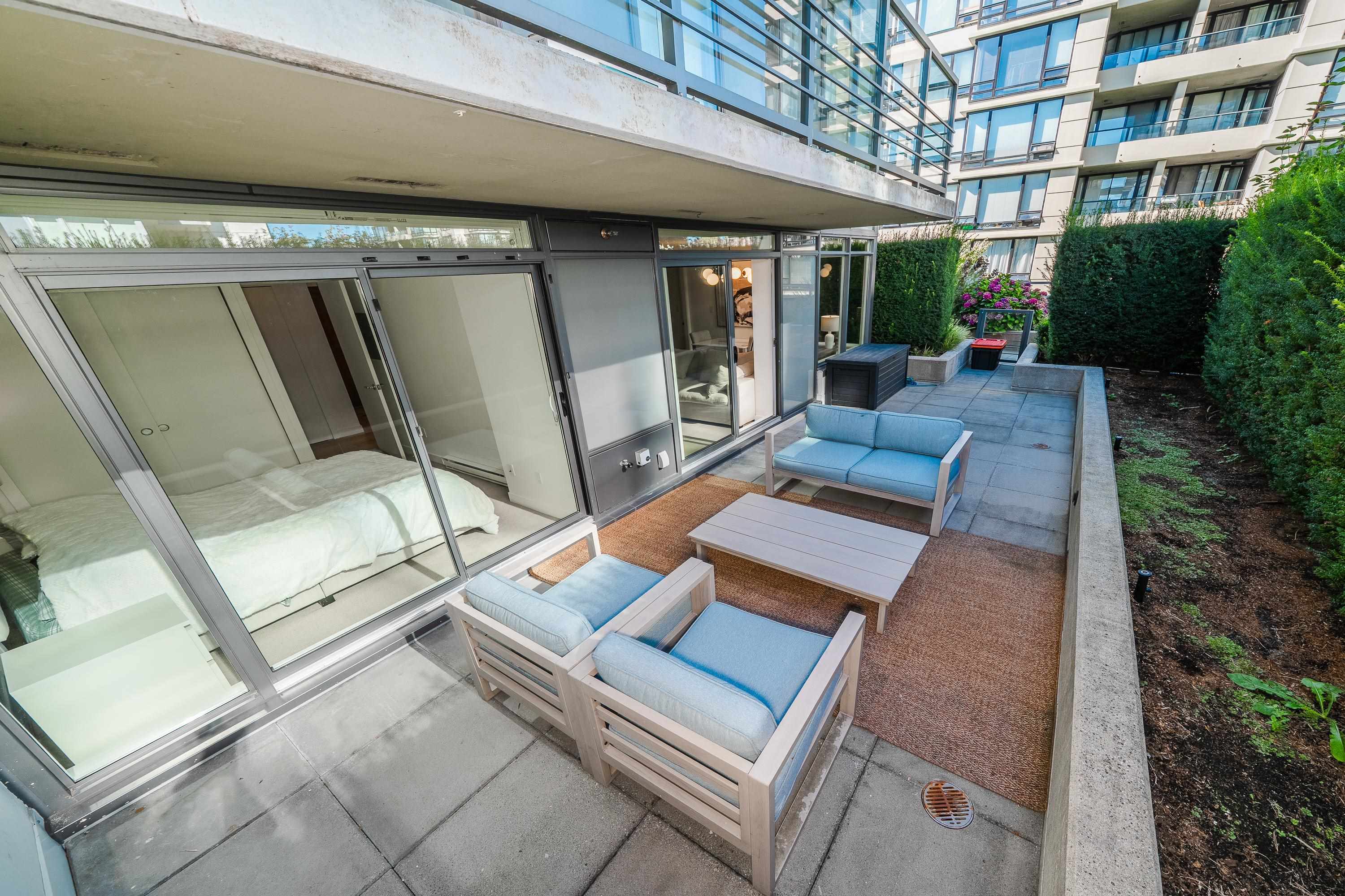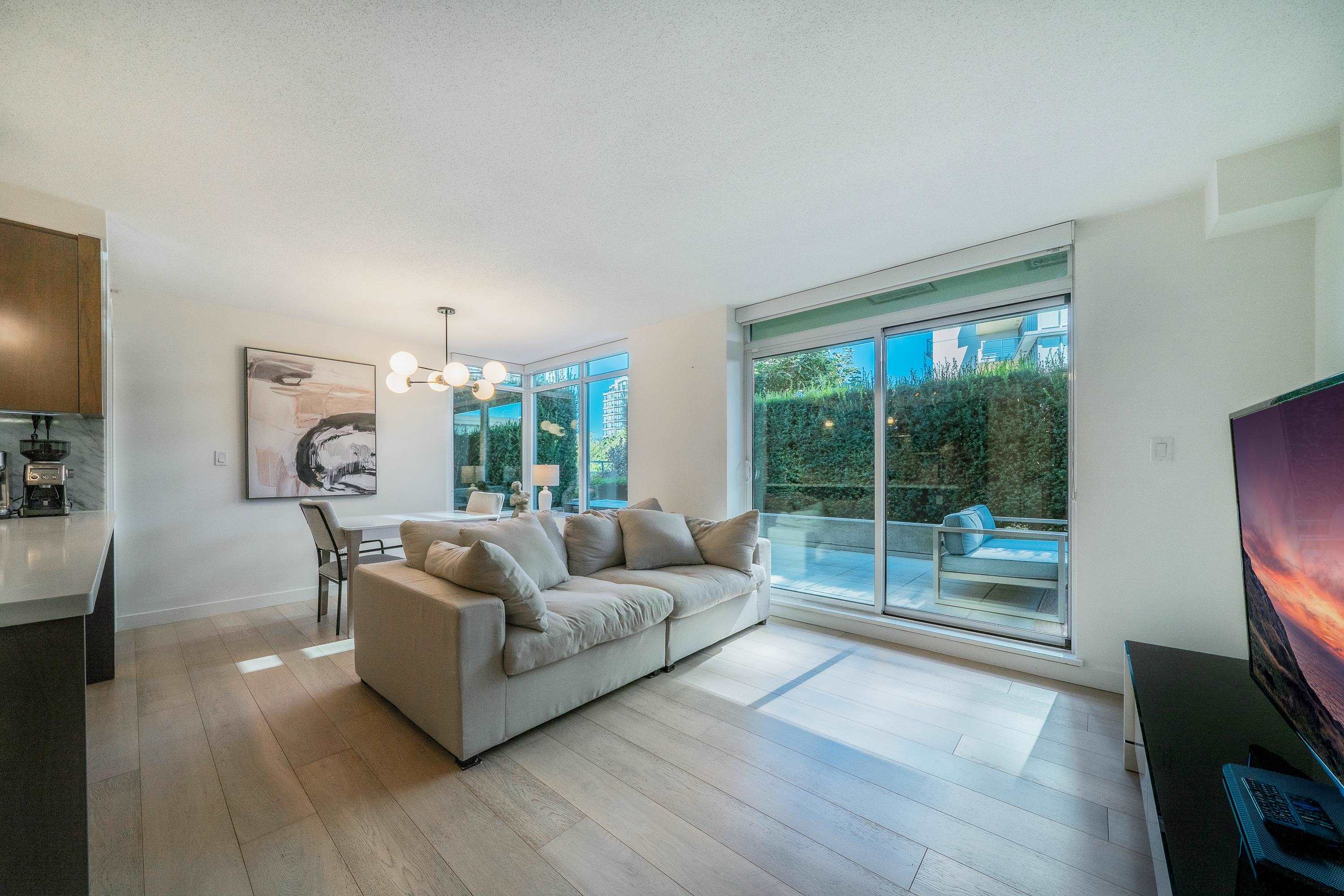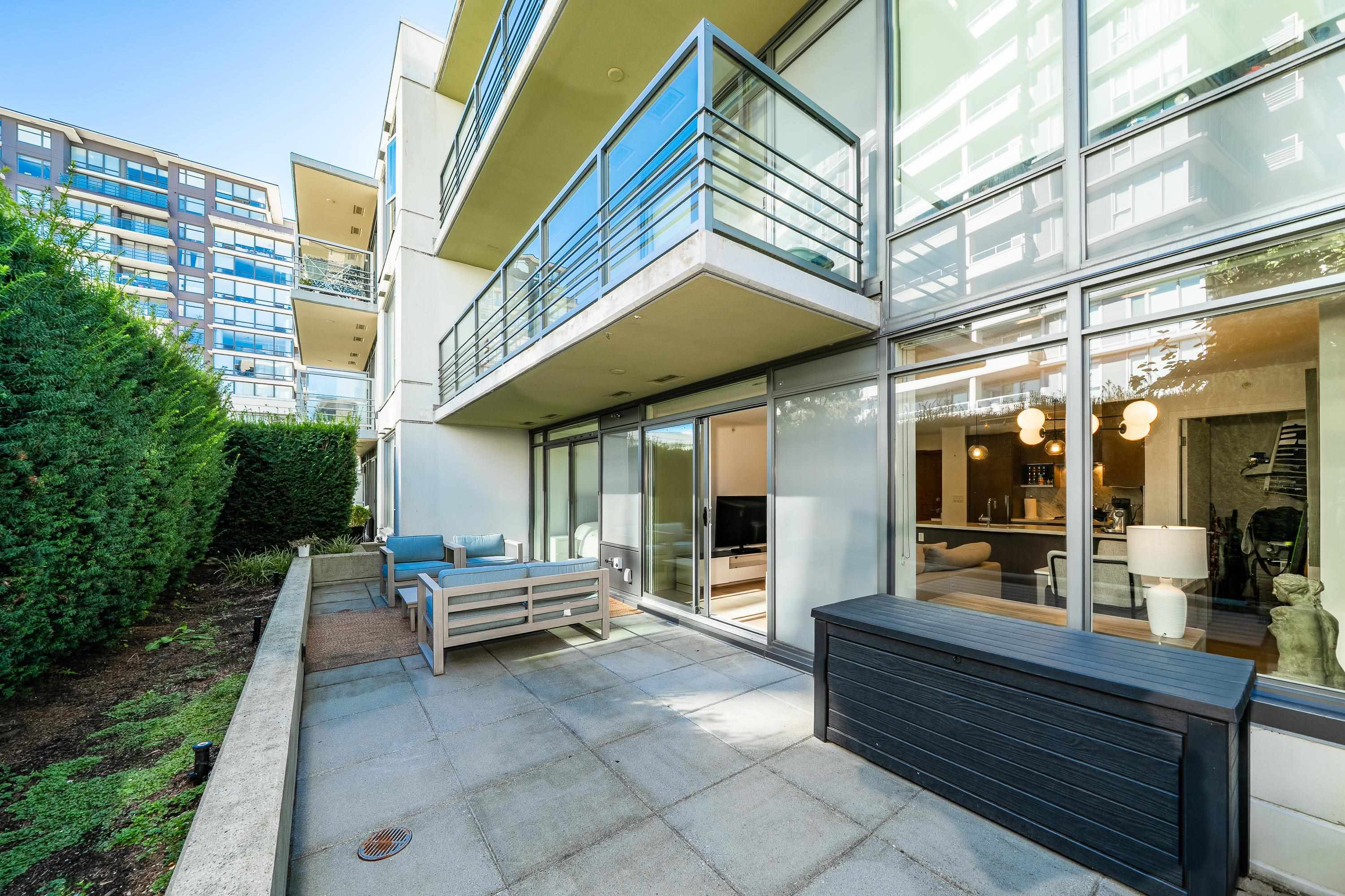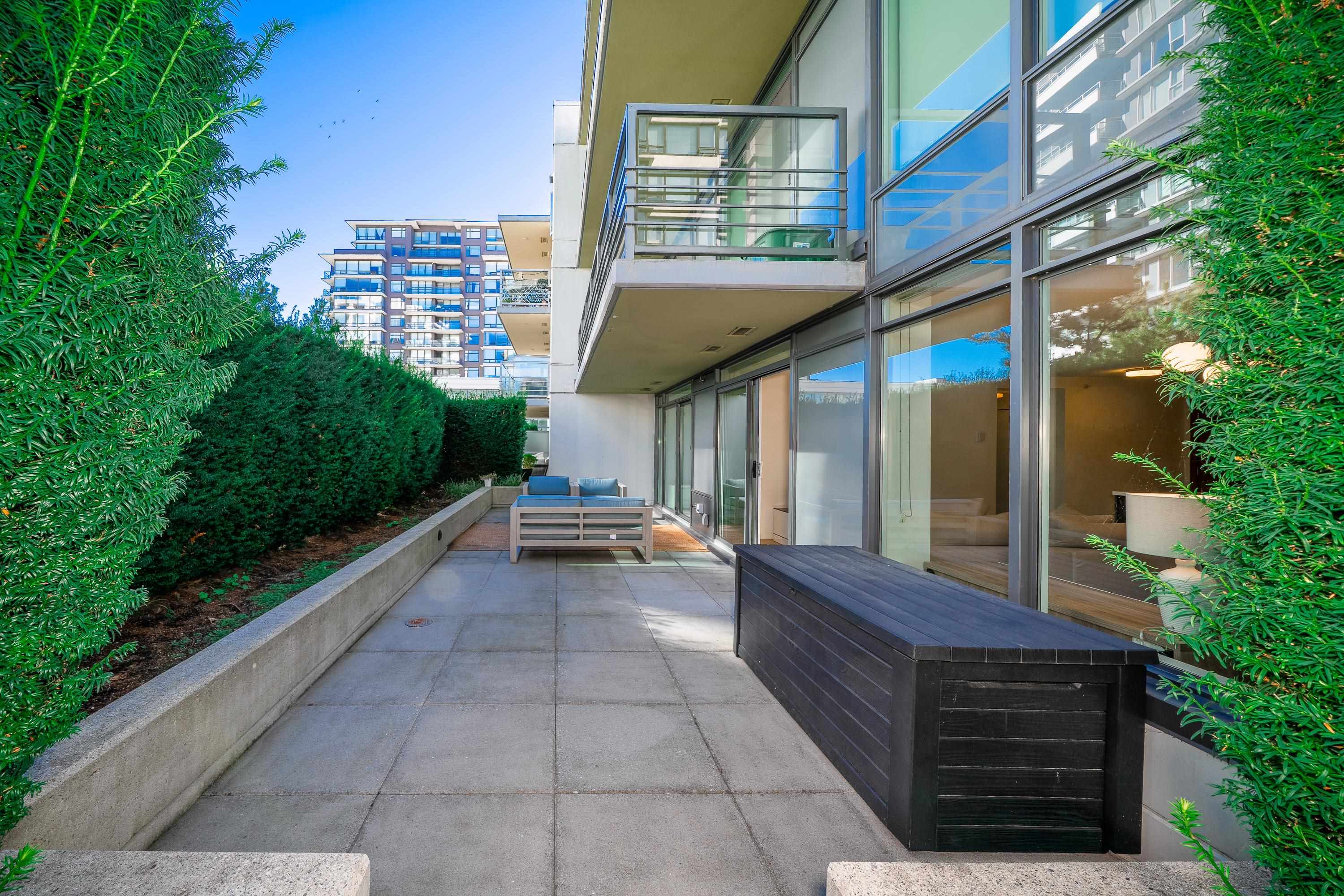 Monet built by Concord Pacific! This Big Spacious 1 bed 623sqft condo with 308 Sqft private patio gives high end finish, SS appliances, gourmet kitchen, open layout, big island, 1 parking included. The amenities has club house, fitness center, recreation center & garden. Steps away from Richmond Center, shops, dining, park. Open House: Oct 25/26 Sat/Sun 2-4.