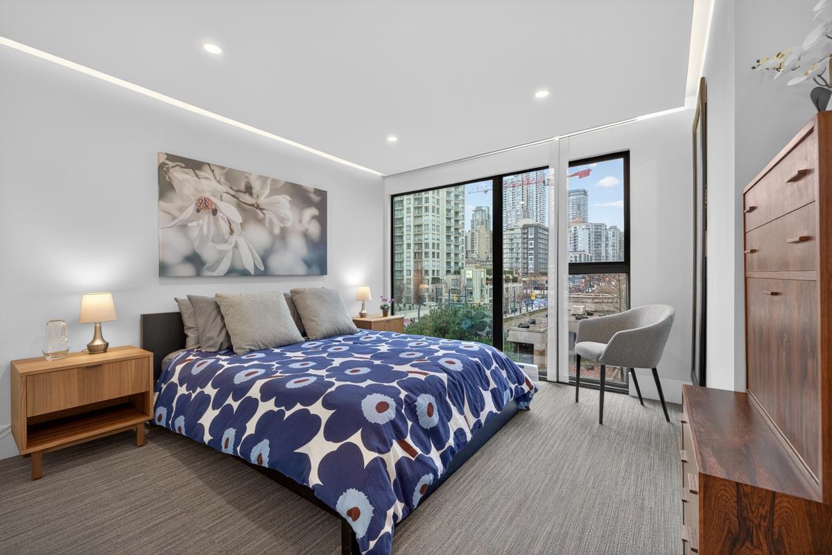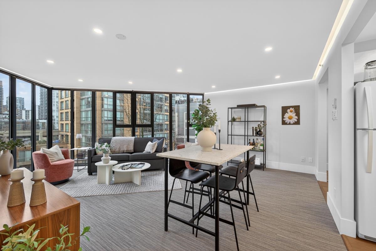 City Crest, the epitome of urban living in the heart of Yaletown's heritage district. This meticulously renovated 1 bed, 1 bath 667sqft suite offers a blend of modern sophistication & timeless charm. Step into an open-concept floor plan, accentuated by floor-to-ceiling windows. The spacious living area provides the perfect backdrop for both relaxation and social gatherings. Indulge in a host of incredible amenities, including a fitness centre, games room with billiards, tv, library, kitchen and bar as well ...