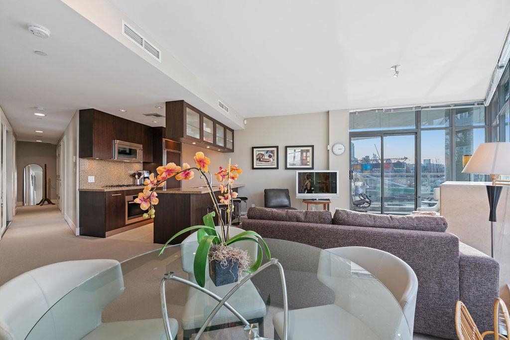 Welcome to the Silver Seas, a premier waterfront address where luxury meets tranquility. This rare FURNISHED 2 bed +2 bath condo is bathed in natural light year-round while offering stunning views of False Creek. Enjoy modern conveniences such as central air conditioning, in-suite laundry, and a large balcony for summer BBQ. World-class amenities include an 80-foot lap pool, 24-hour concierge and security, a fully equipped fitness facility, billiards room, theatre, steam room, golf pitch-and-putt area, and...