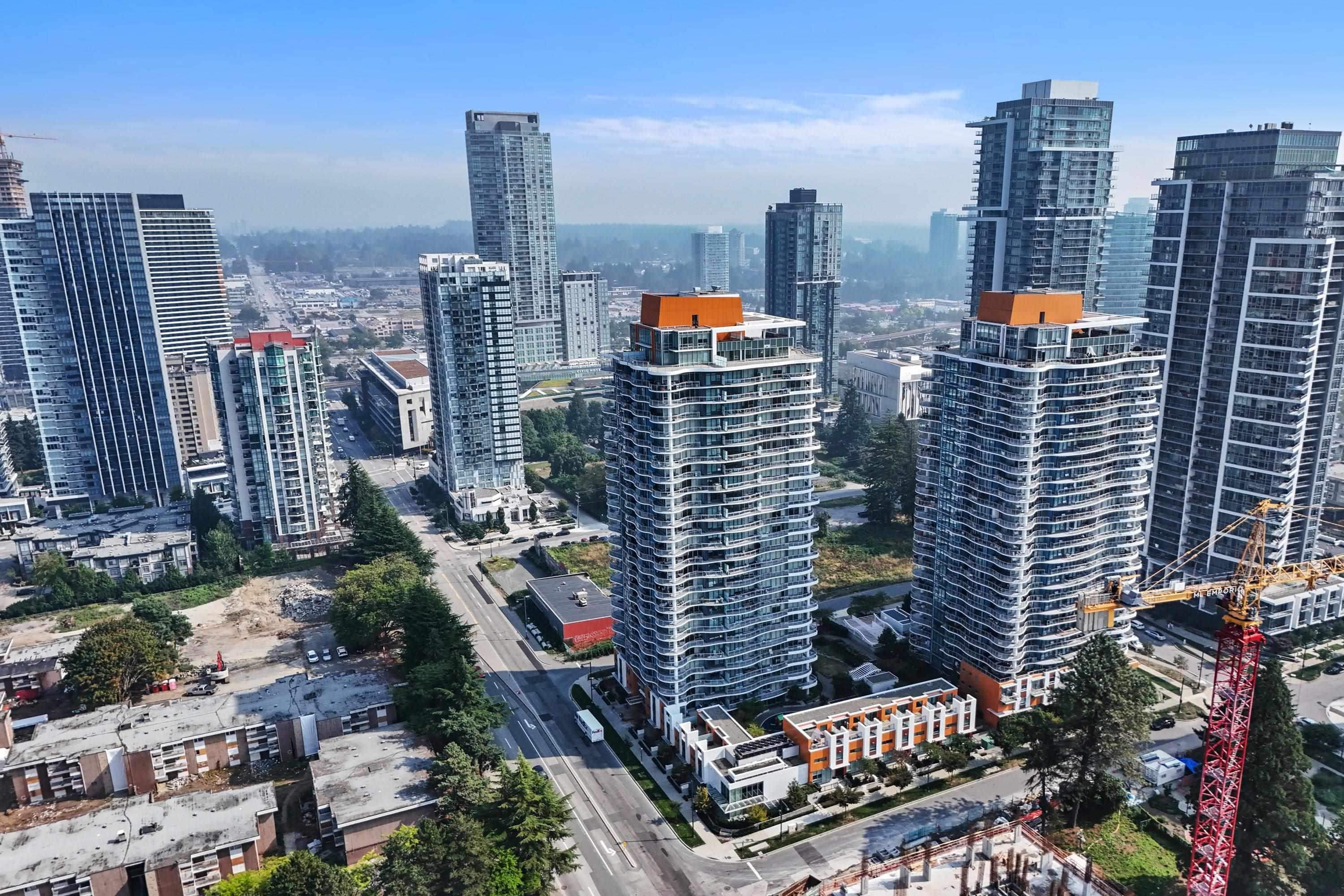 1st-TIME HOME BUYER ALERT! Experience Surrey Central in its FINEST! This SOUTH FACING 582sqft 2bed+1bath unit and 86 sqft balcony (TOTAL 668SQFT) on quiet side w/ courtyard views (Cherry Blossoms in Spring). Enjoy central AC, wide-plank Laminate Hardwood floors, 8'8 ceilings, and TOP BRAND appliances. Strata fee covers cost of central AC, heating, hot water, Caretaker, security guard, and resort-like amenities: Fitness Centre, Party Lounge, Rooftop AND Podium terraces, Shared Workspace, Media Room, Yoga/dan...