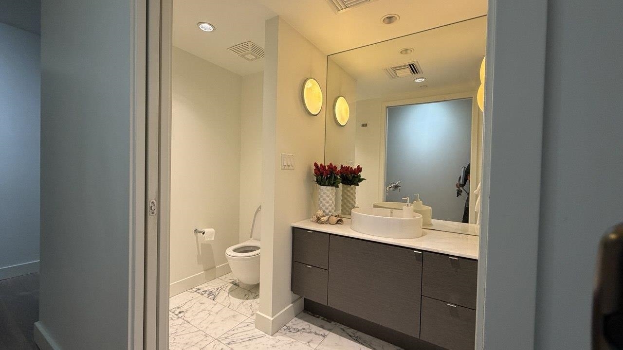 arely available LIVE/WORK space perfect for a centrally located Business or a spacious 1 Bedroom open design, with a large den (or waiting) area. Gorgeous HIGH END finishings, 9-foot ceilings, Marble in the washrooms, Hardwood floors, Italian kitchens with Gaggenau appliances and Sub-Zero fridge, European Cabinets, Gas Stove, AIR CONDITIONING. 24-hour concierge, an indoor pool, sauna/steam, workout area, BBQ space with a rooftop patio, One parking and One storage included.