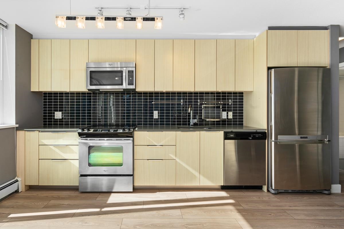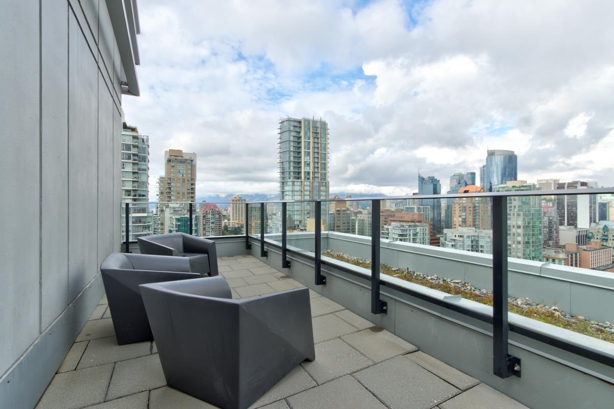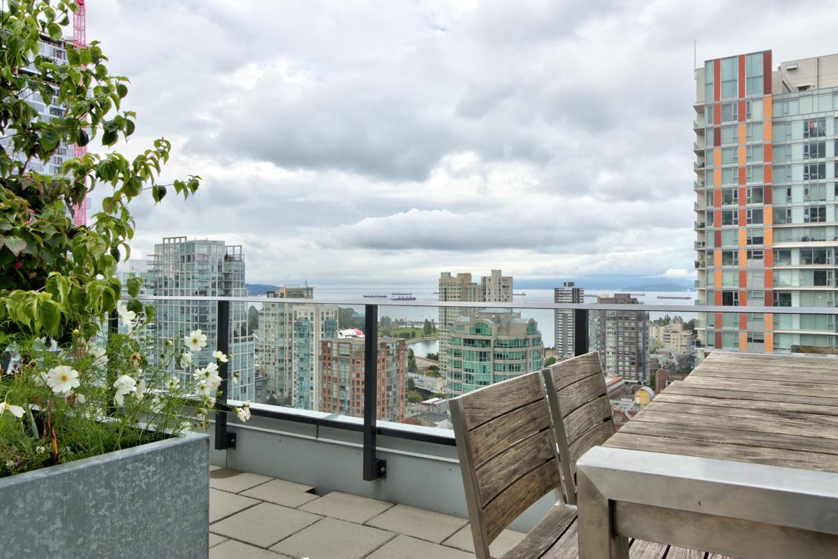 Superb location just off Granville Street - Walking distance to everywhere in the Downtown Core, Yaletown shops & restaurants, seawall & Canada line skytrain station. 2-bed+den/2-bath corner suite w/ large patio. Open concept kitchen w/ Quartz counter tops, & stainless steel appliances. Enjoy spacious living/dining areas with new wood flooring. In suite laundry. This concrete high-rise is located just off the Granville Street area. Gym, bike lockers, concierge & rooftop garden including a children's play ar...