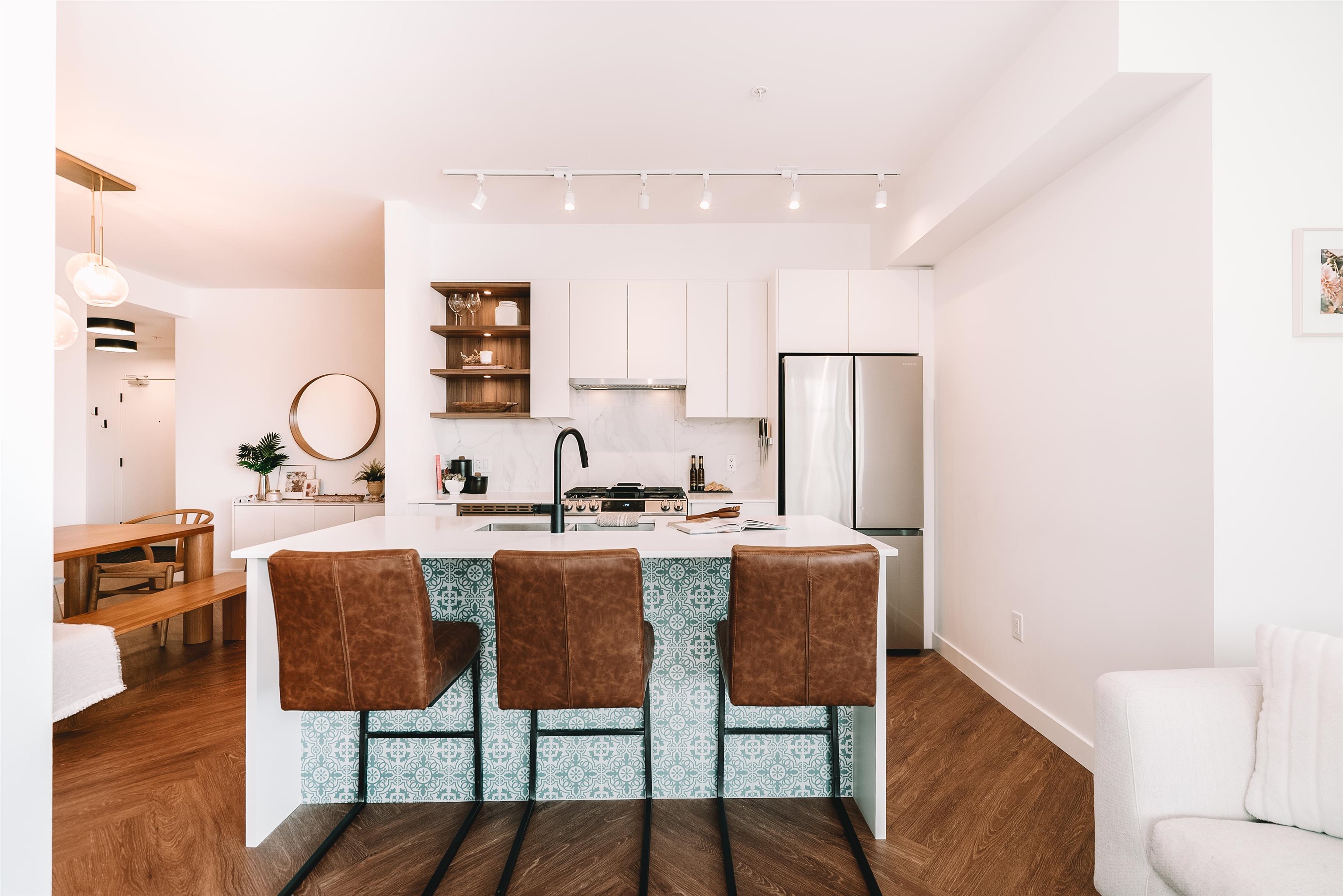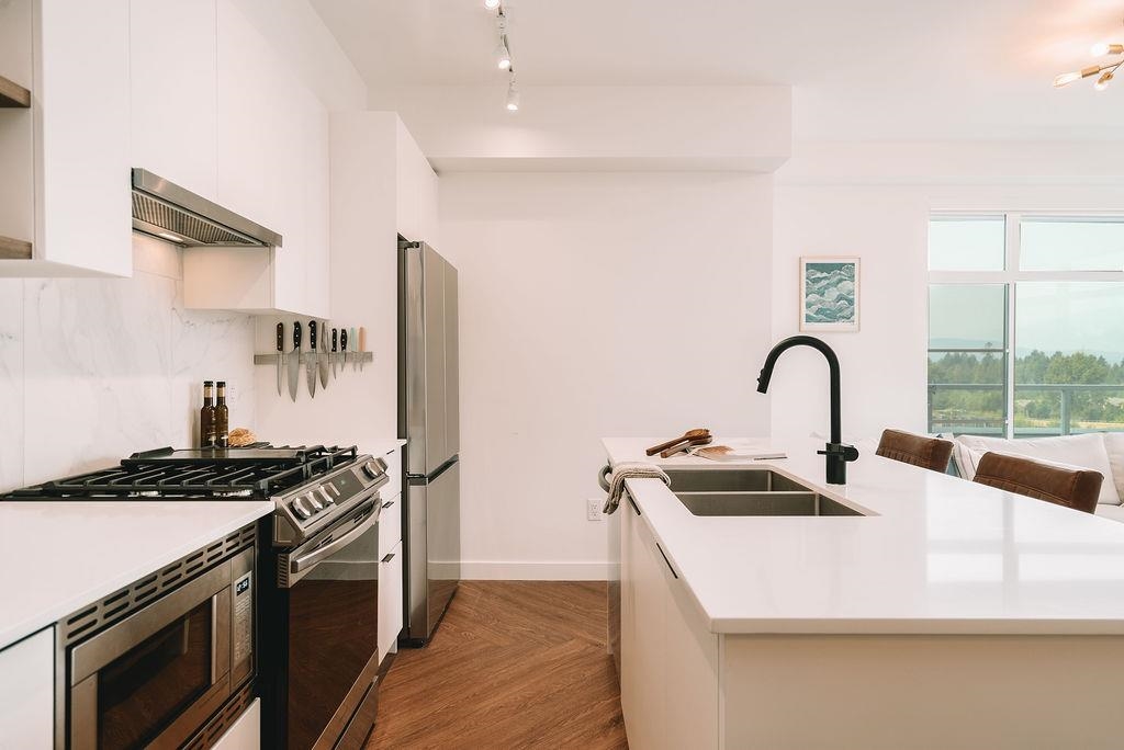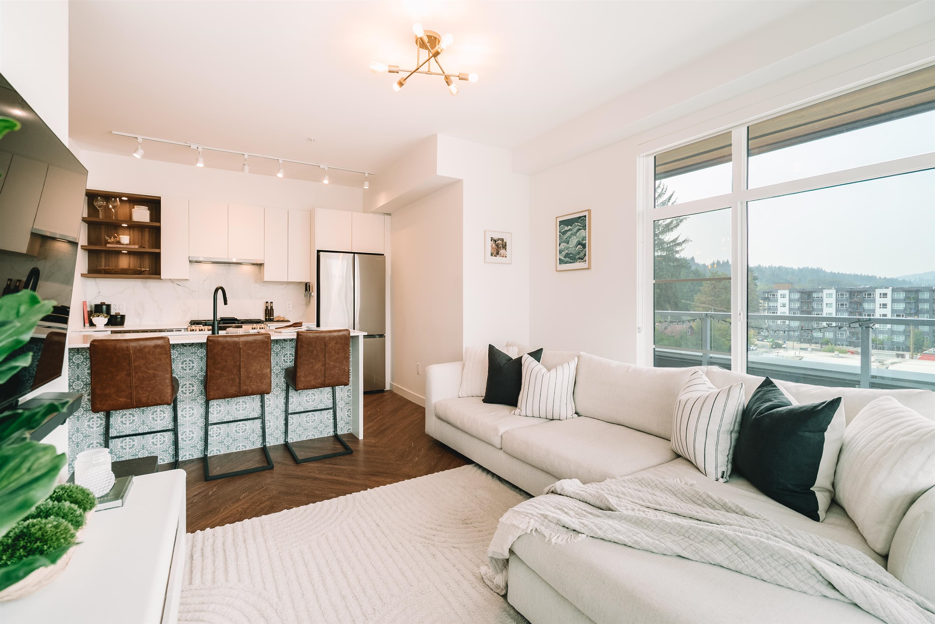 Welcome to Clyde, a stylish retreat in the lively center of Port Moody where modern comfort meets timeless design. This corner 3-bed, 2-bath home delivers a spacious, open layout that blends functionality with everyday elegance. Expansive windows bathe each room in natural light while showcasing breathtaking mountain views that create a stunning backdrop from morning to night. The contemporary kitchen features stainless steel appliances, a gas range, sleek quartz countertops, & tile backsplash, crafted for...