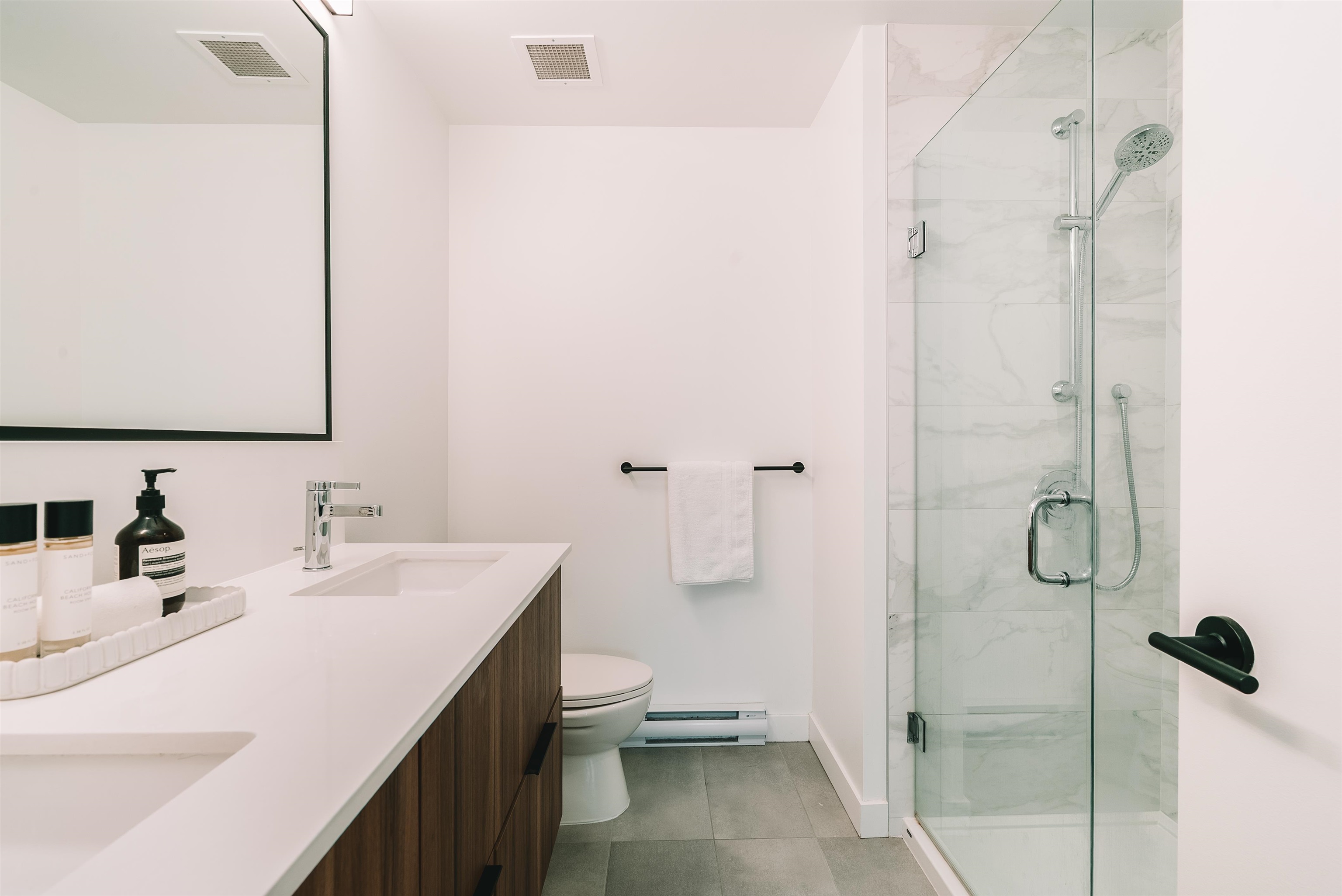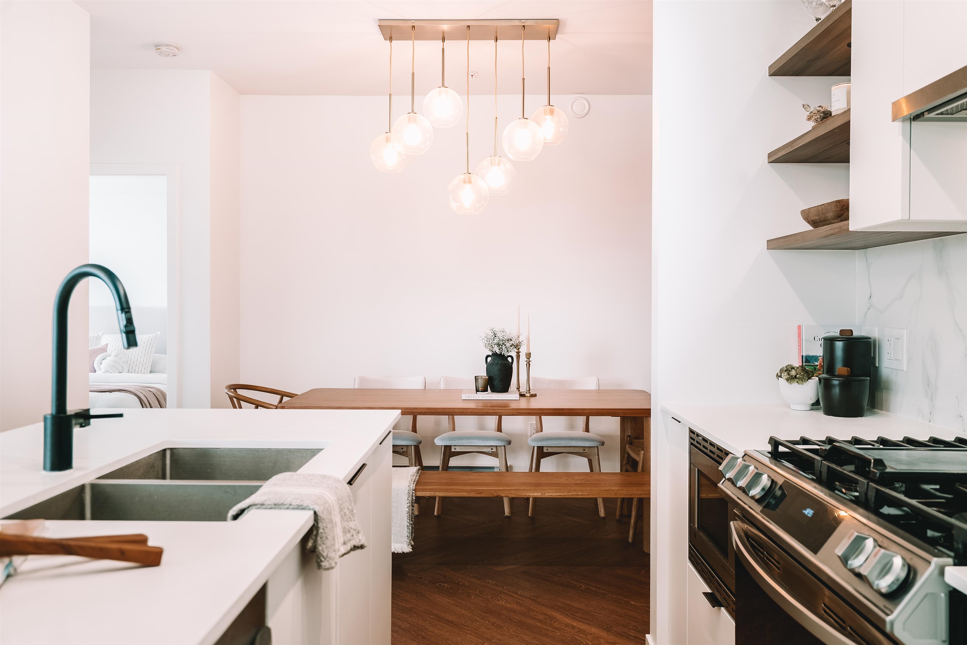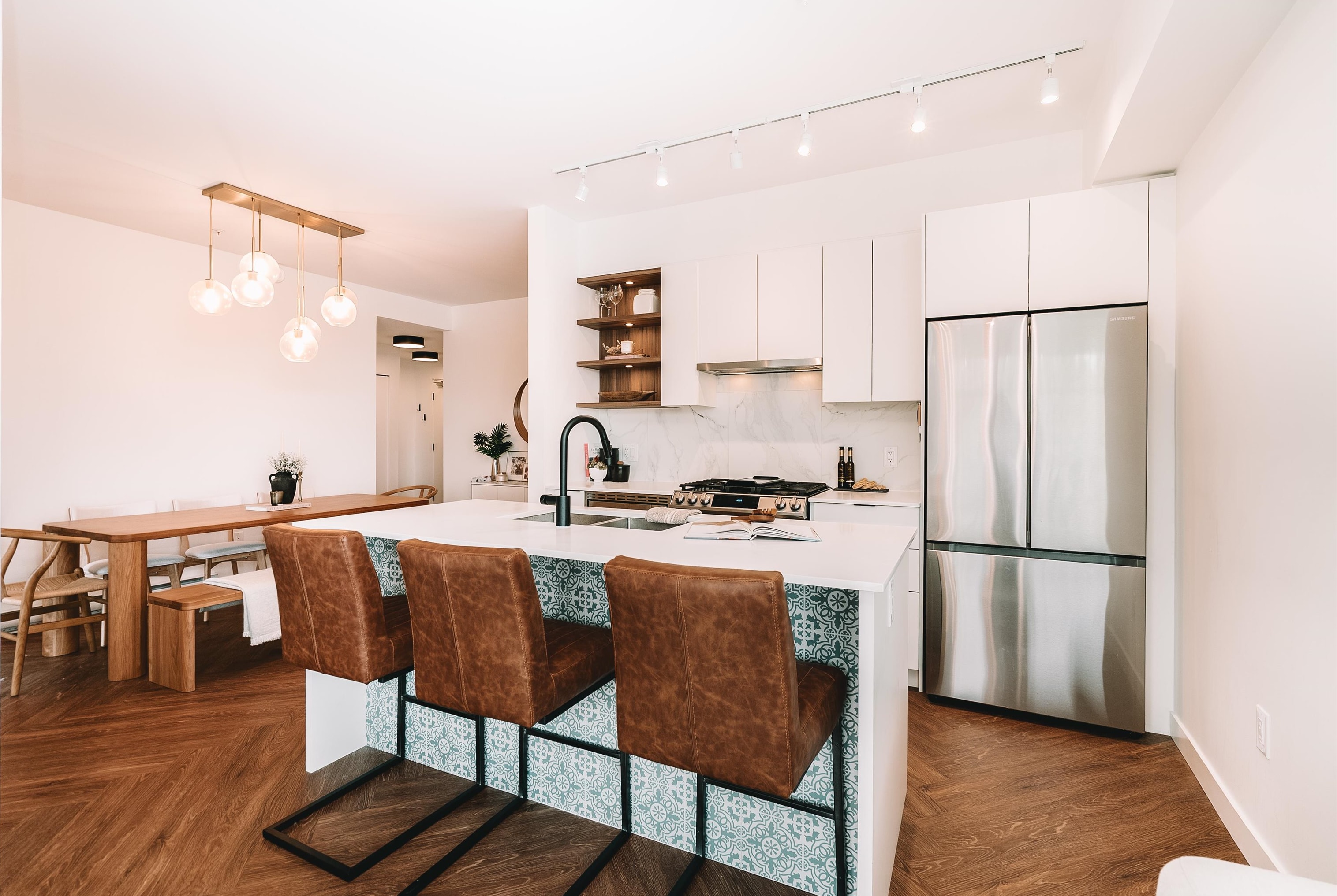 Welcome to Clyde, a stylish retreat in the lively center of Port Moody where modern comfort meets timeless design. This corner 3-bed, 2-bath home delivers a spacious, open layout that blends functionality with everyday elegance. Expansive windows bathe each room in natural light while showcasing breathtaking mountain views that create a stunning backdrop from morning to night. The contemporary kitchen features stainless steel appliances, a gas range, sleek quartz countertops, & tile backsplash, crafted for...