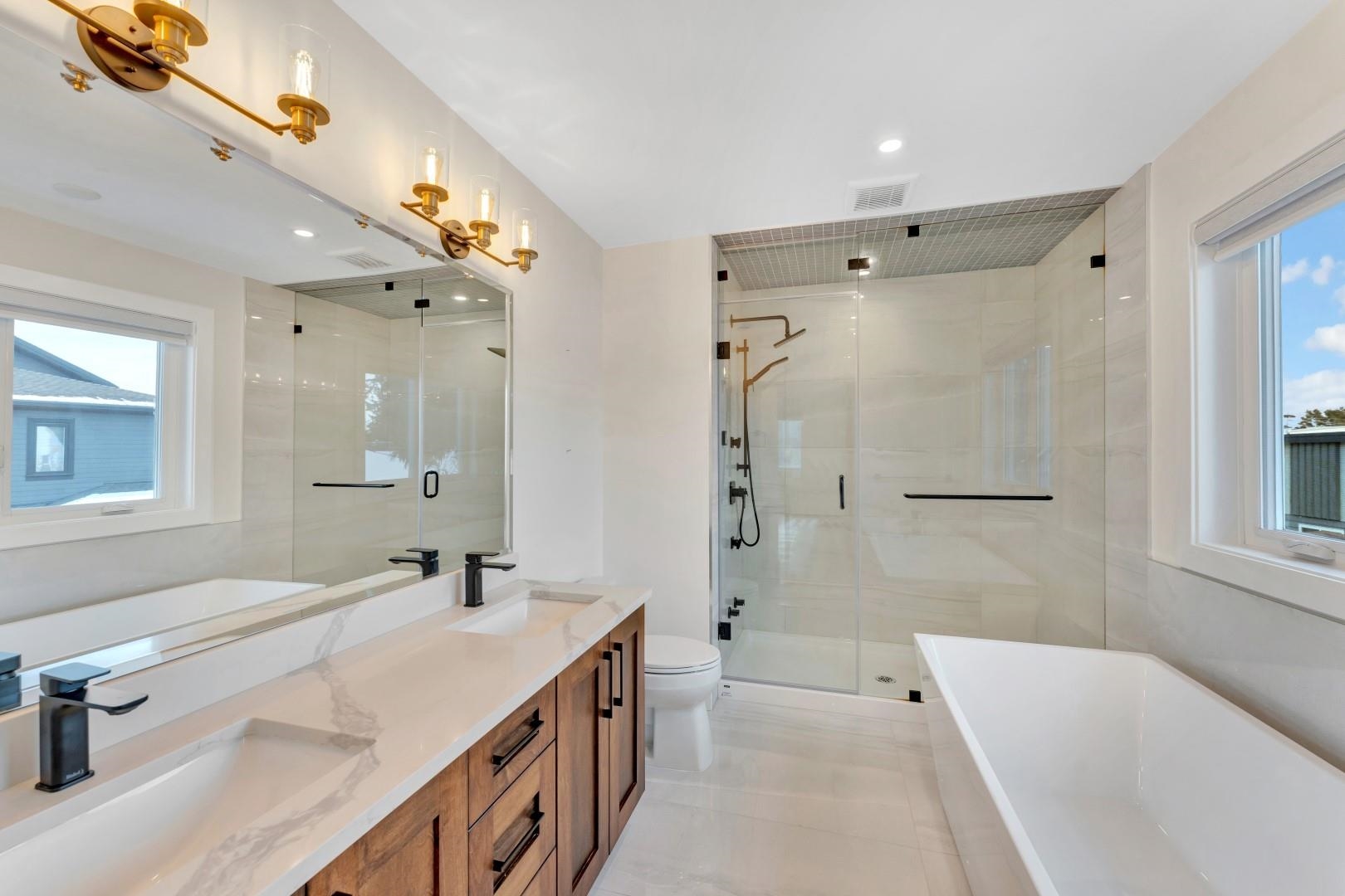 This stunning property offers a perfect blend of comfort and elegance, ideal for modern family living and a bonus mortgage helper if wanted. The spacious family room features bi-fold doors opening to a covered patio with a gas hookup, perfect for entertaining. The gourmet kitchen boasts Fisher Paykel appliances, a gas cooktop with a pot filler, and a walk-in pantry. The main floor also includes a guest bedroom and bathroom. The primary bed features a large walk-in closet and a spa-like ensuite with dual van...