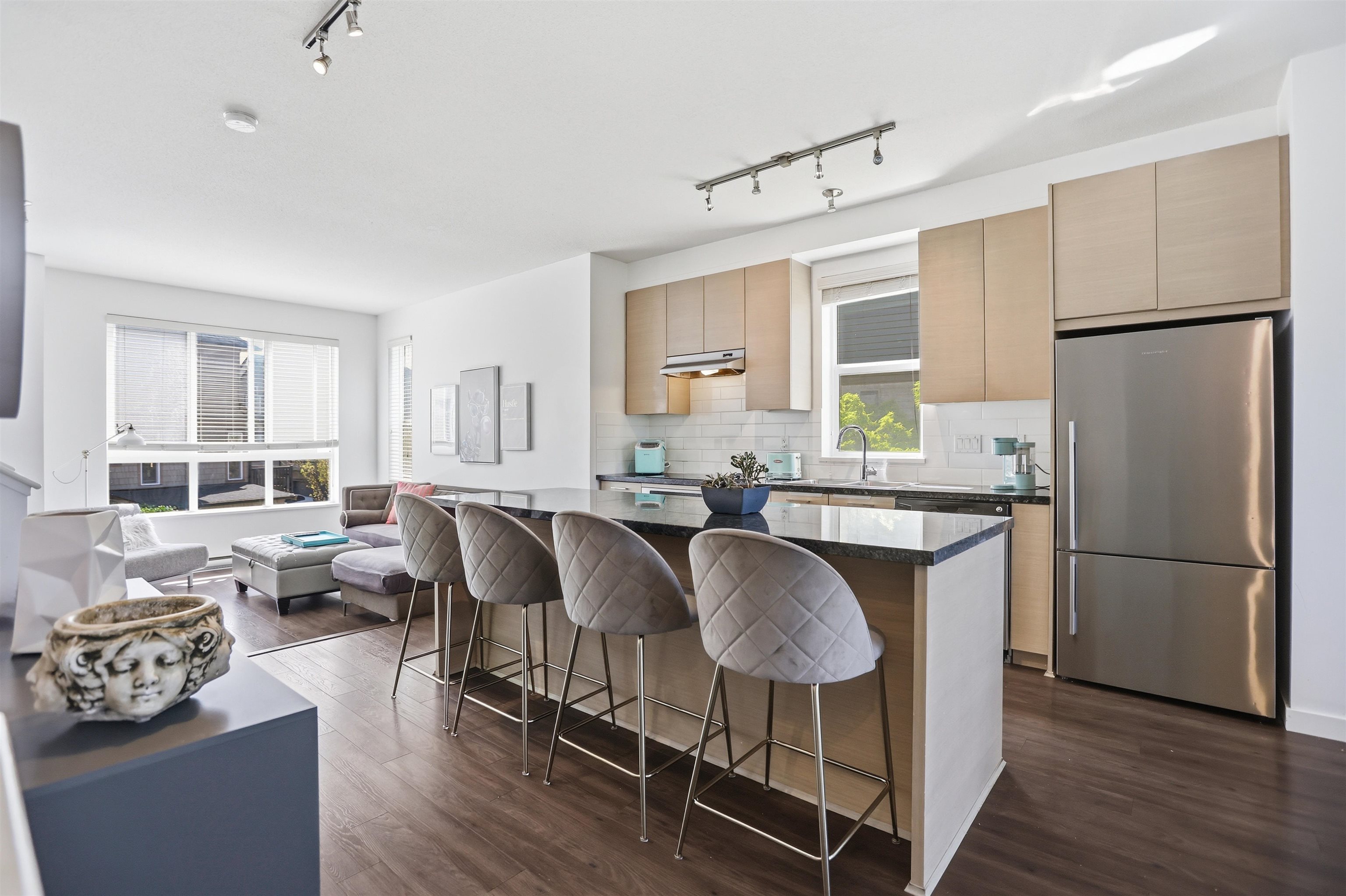 CORNER UNIT | BRIGHT & AIRY | DESIRED LAYOUT — Welcome to Sunstone living at its best. This 3 bed, 2.5 bath home offers over 1,428 sq ft of functional space with a corner exposure bringing in 8 extra west-facing windows for incredible, sun-soaked natural light. Thoughtfully designed with a sunken living room, 9’ ceilings, and an open-concept layout centered around a large kitchen island—perfect for entertaining and everyday living. End unit perks include a larger yard and convenient visitor parking right be...