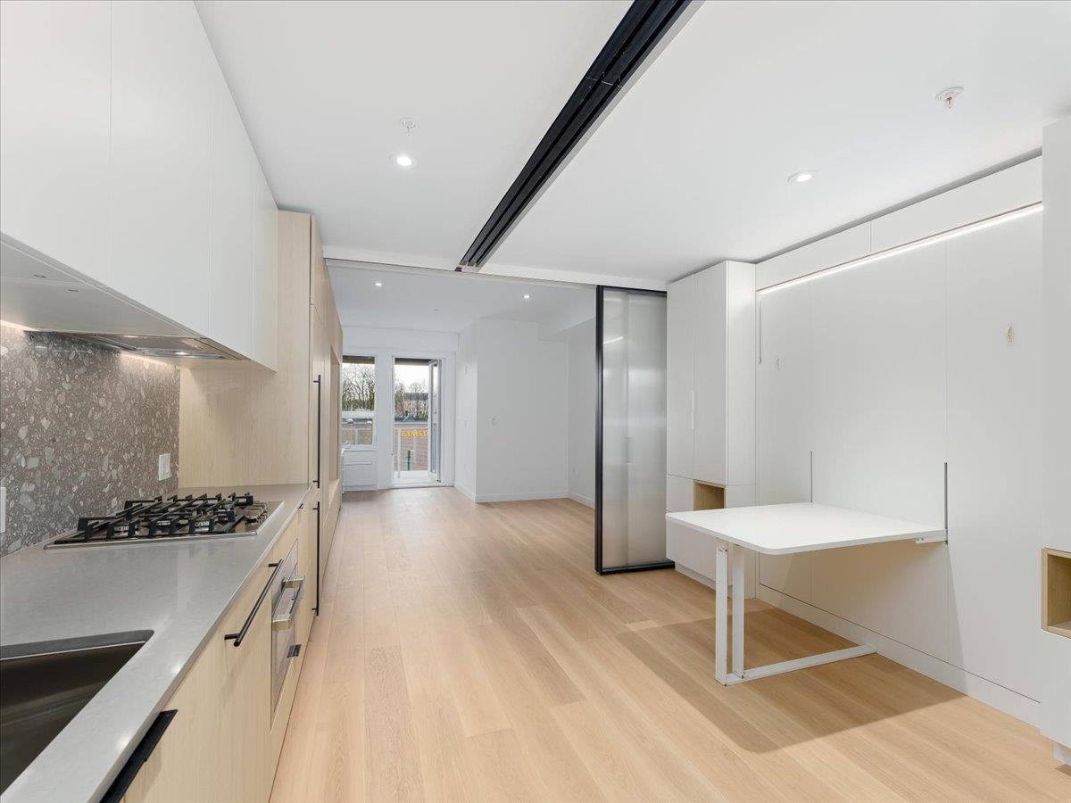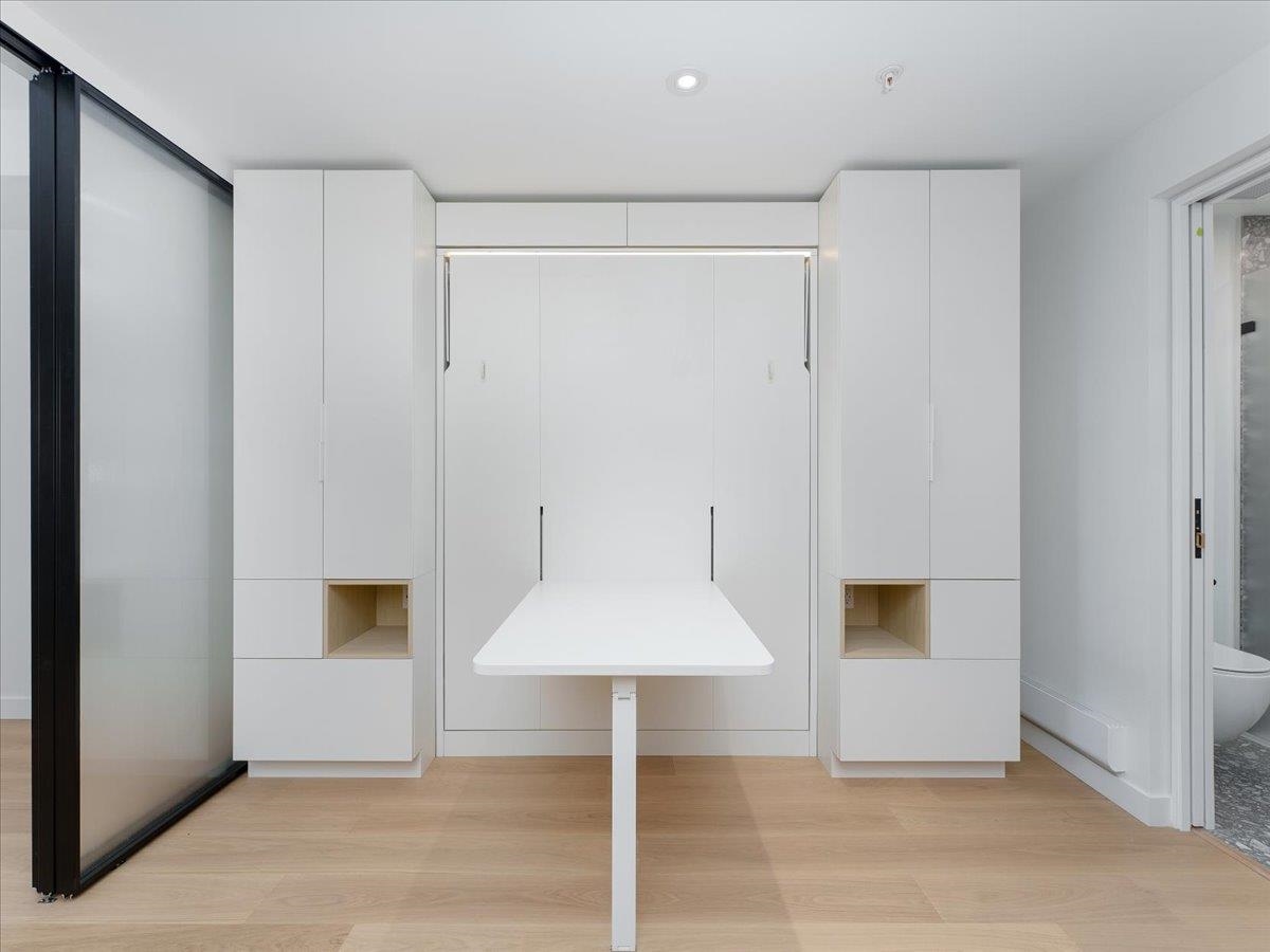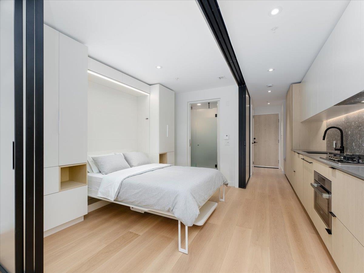 Brand-new top-floor south-facing condo at The Saint George by Reliance Properties-a boutique building that blends modern architecture with outstanding livability. Featuring over-height ceilings, oak millwork, wide-plank hardwood floors, terrazzo stone countertops, Bosch and Fulgor Milano appliances with gas range, AC, and generous balcony. Flexible floorplan with combo murphy bed/dining table, oversized sliding doors lets you enjoy open-concept living or a private one-bedroom layout with 2 bathrooms! Amenit...