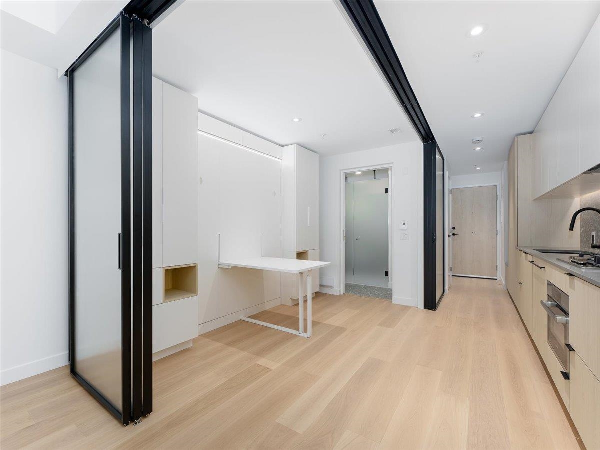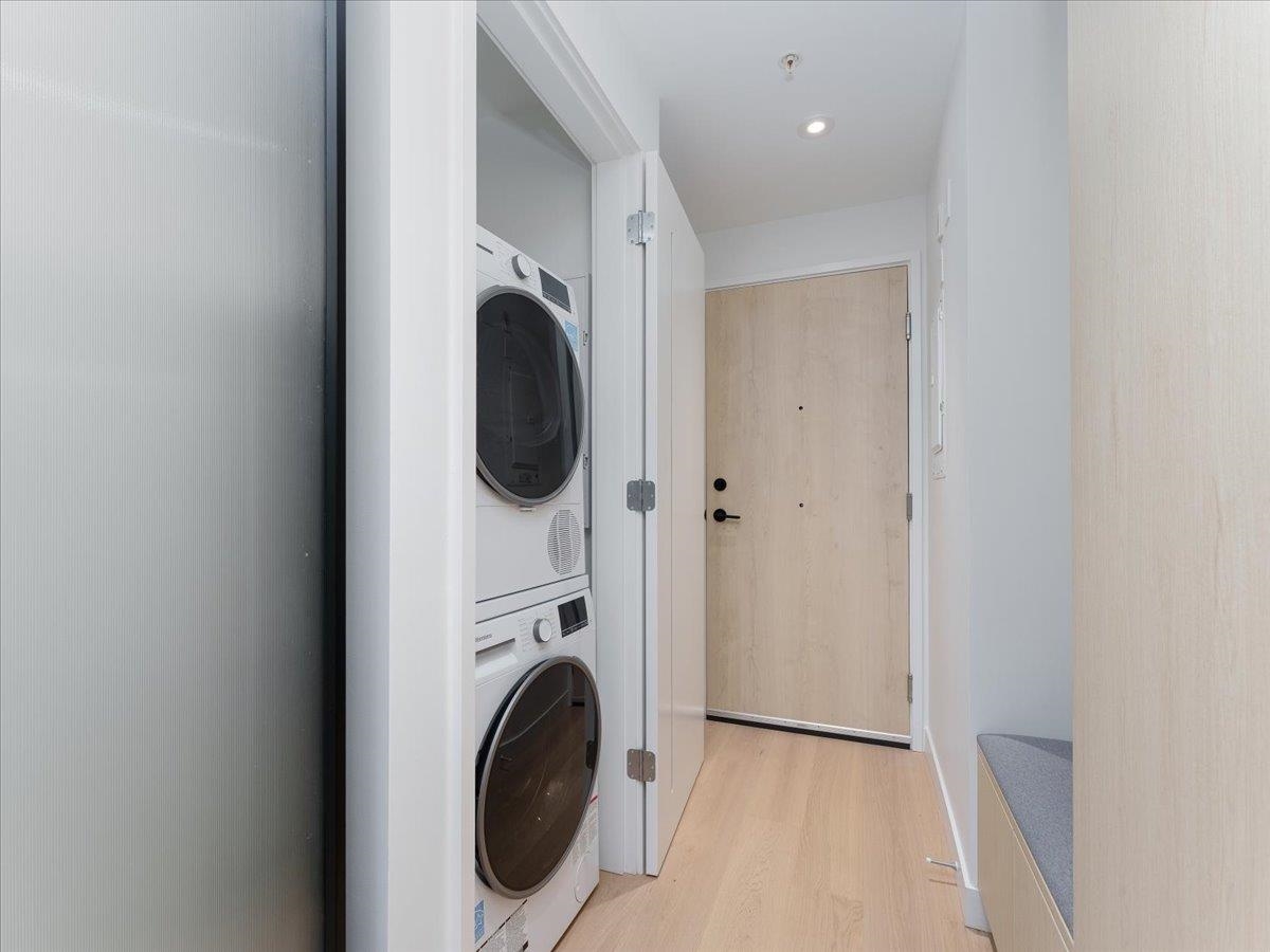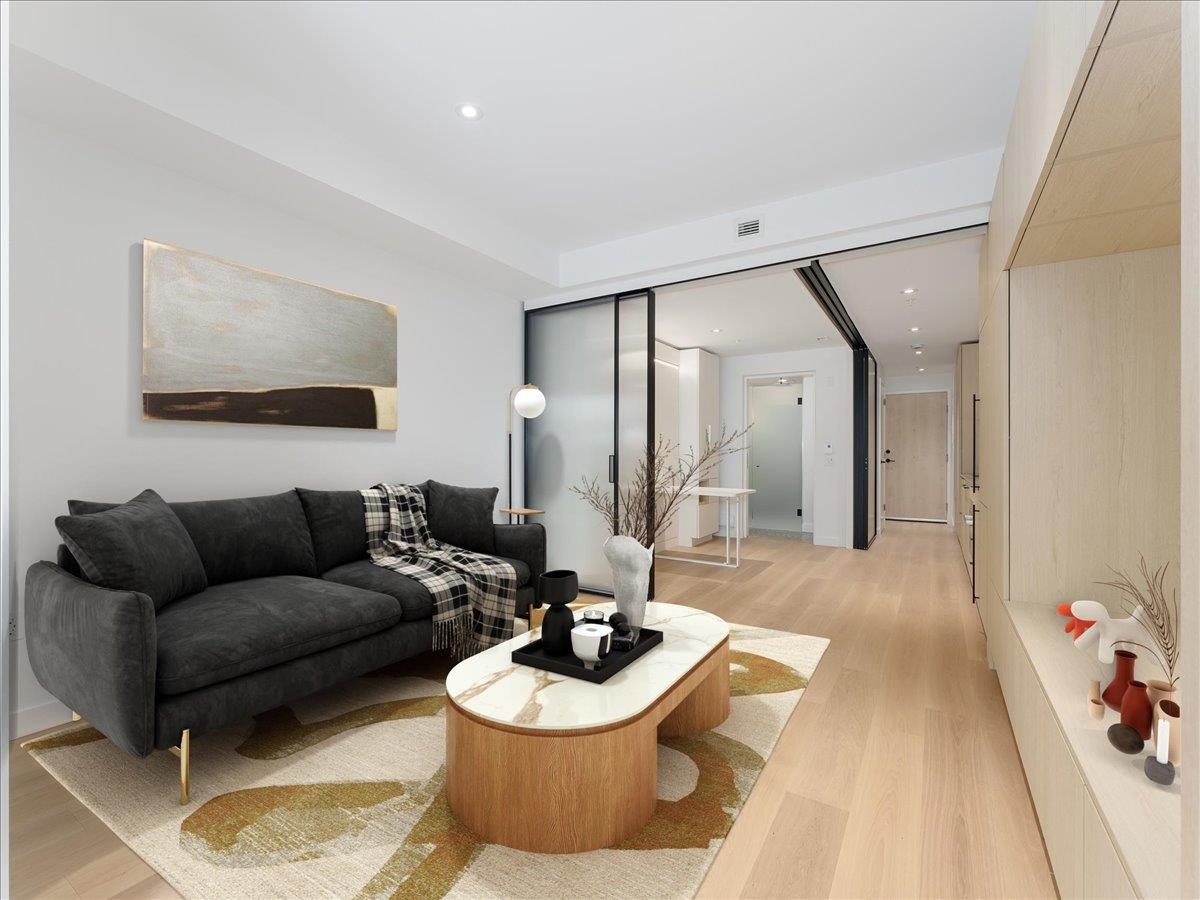 Brand-new top-floor south-facing condo at The Saint George by Reliance Properties-a boutique building that blends modern architecture with outstanding livability. Featuring over-height ceilings, oak millwork, wide-plank hardwood floors, terrazzo stone countertops, Bosch and Fulgor Milano appliances with gas range, AC, and generous balcony. Flexible floorplan with combo murphy bed/dining table, oversized sliding doors lets you enjoy open-concept living or a private one-bedroom layout with 2 bathrooms! Amenit...