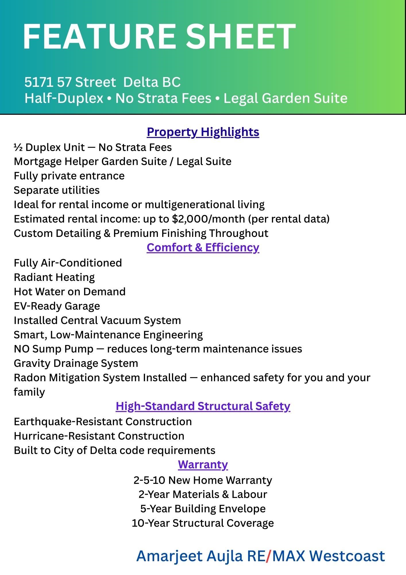 NO STRATA FEES!! BRAND NEW 2 level Half-Duplex WITH 1 BED GARDEN SUITE! This stunning home combines modern design with ultimate functionality. The open-concept main floor features a bright living area, a premium kitchen with Stainless Steel appliances, and a spacious dining area. Upstairs, enjoy a serene master suite with a walk-in closet and en-suite, plus two additional bedrooms and a full bathroom, enjoy a very private covered Sun Deck connected to the Master Bedroom The Garden Suite suite with in-suite ...