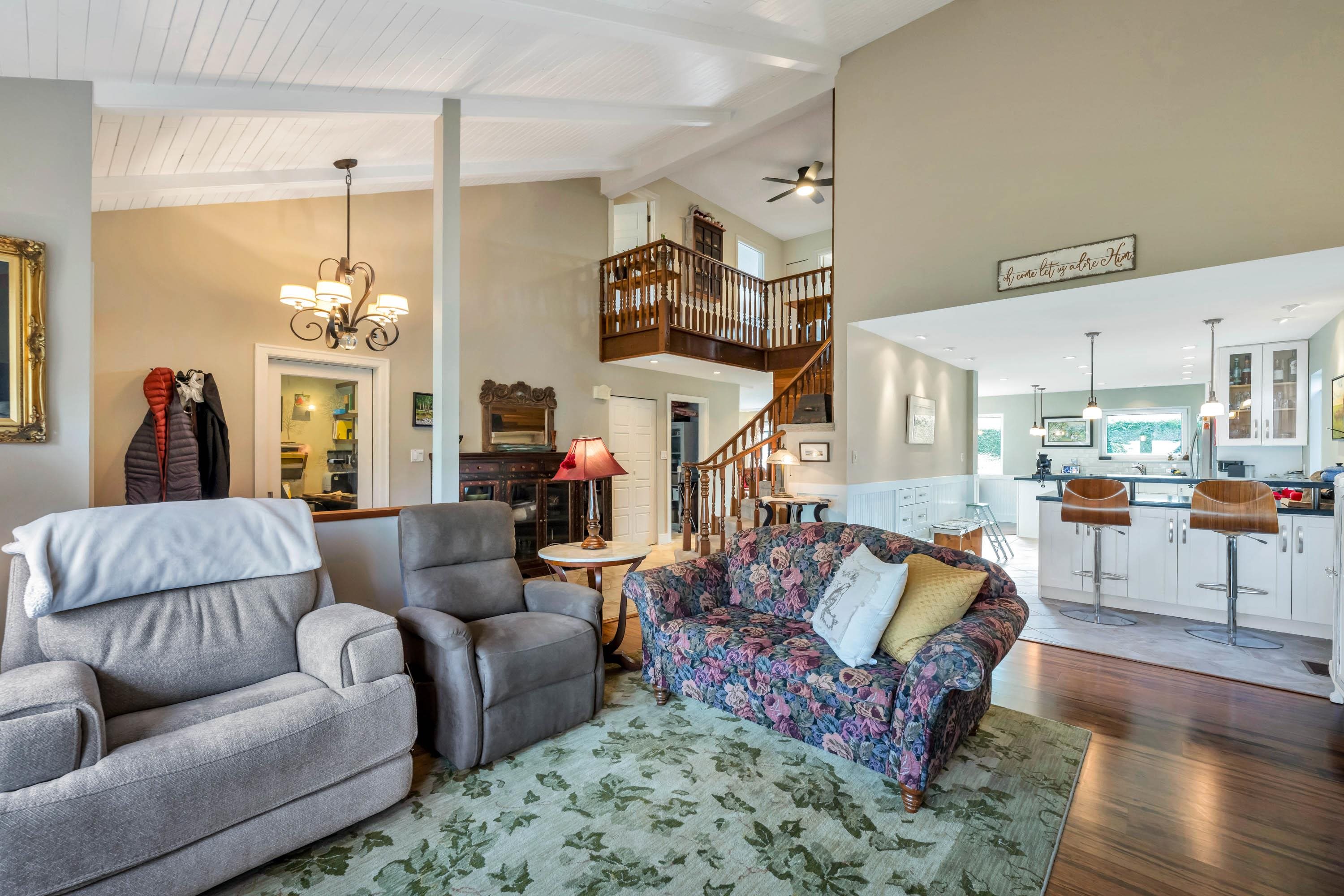This is the one you've been waiting for. A grand entrance w/ soaring vaulted ceilings & an elegant staircase sets the tone throughout. Fully updated main floor delivers a seamless open concept design w/ thoughtful separation, showcasing high-quality finishes & meticulous attention to detail. The kitchen offers generous built-in storage & is perfectly appointed for entertaining. Newer Innotech windows maximize natural light throughout. The main floor features a living room, family room, & a versatile den ide...