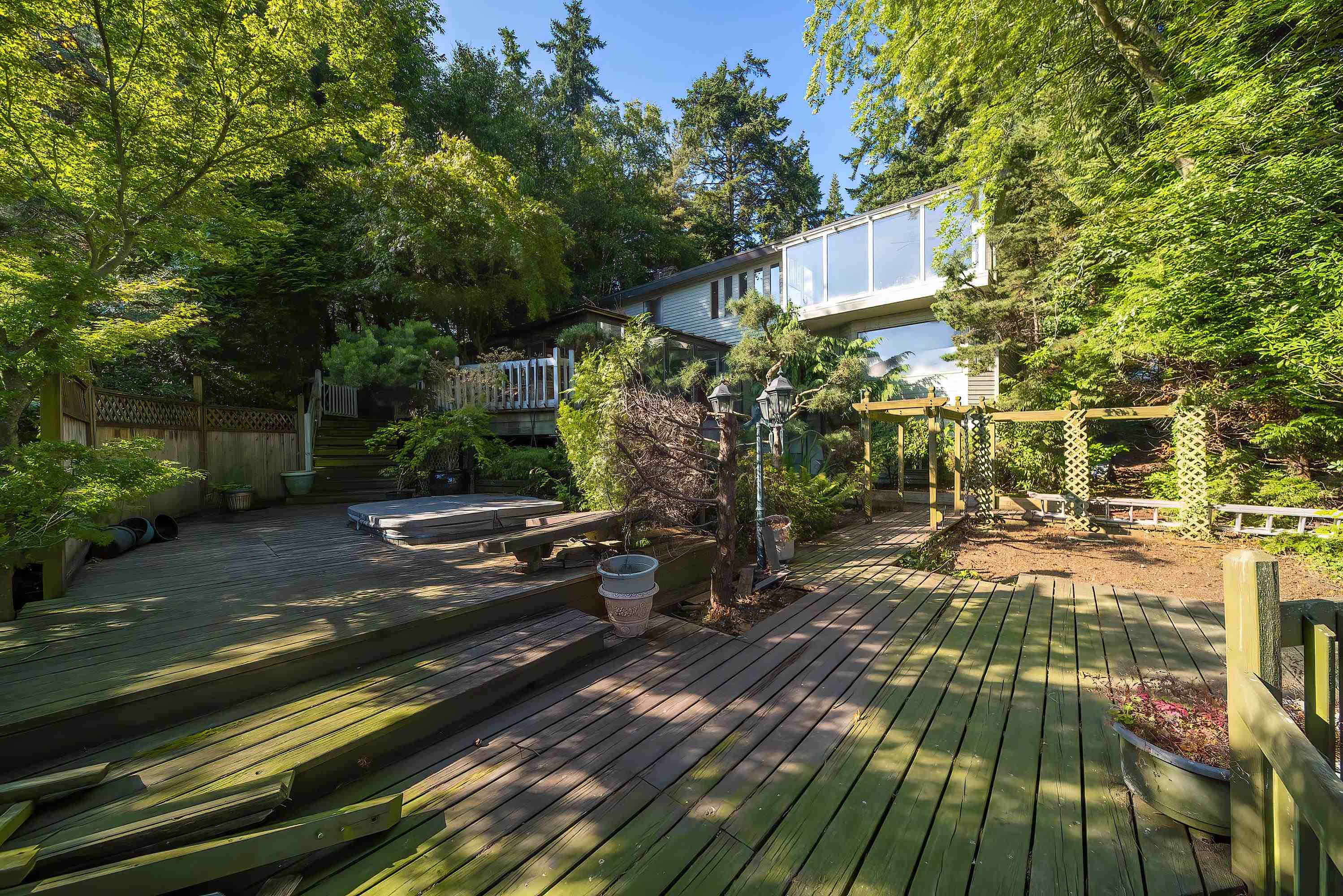 The spacious mansion sits on the half acre view lot in the prestige area of Panorama Ridge. This unique updated west coast style home offers beautiful views of ocean, Mt Baker, and Sunset from main & upper levels. It features private yards w/ tasteful garden, multiple decks for peaceful relaxation, open-air hot tub in nature surrounding, 5500+ sqf living area, extra large 4 bedrooms upstairs, commercial grade heating system, luxurious appliances, extra deep double garage. and 190sqf heated greenhouse. It of...