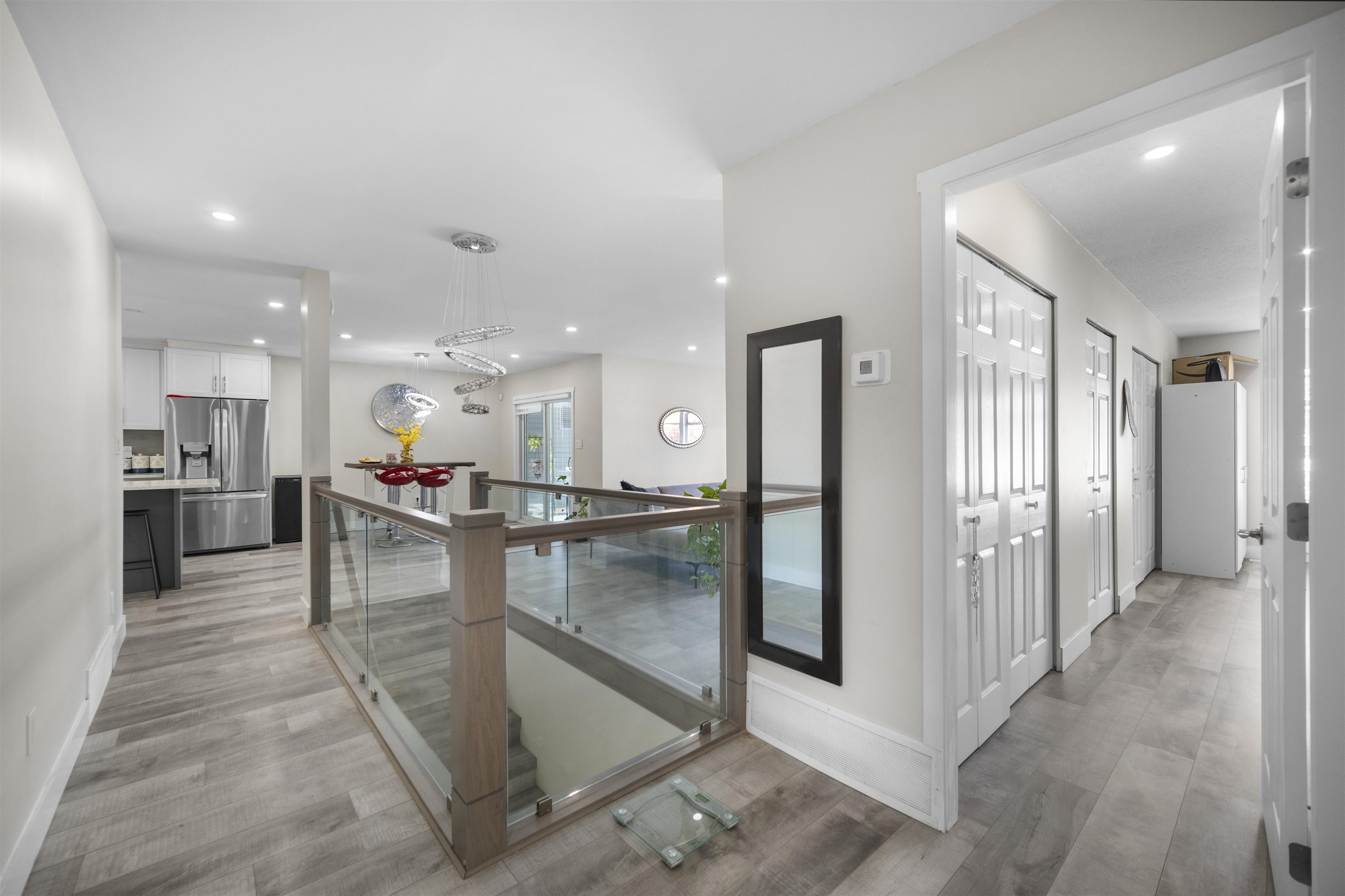 Welcome to this beautifully renovated 6 bed, 4 bath home in the heart of Langley City! Family-friendly location near parks, schools, Willowbrook Mall, and Brydon Lagoon, with a trail steps from the backyard. Main home offers 3 beds/2 baths upstairs + 1 bed/1 bath on main. Bonus 2-bed suite with separate entry. Updates include roof, furnace, A/C, central vacuum, appliances, flooring, quartz counters, kitchen island, glass railing, and insulated garage doors with Bluetooth/Wi-Fi. 2-car garage + driveway for 4...