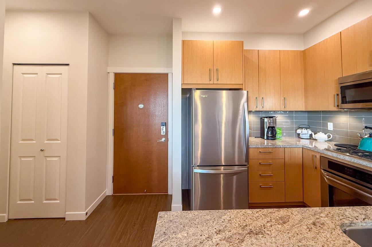Beautifully FURNISHED 1-bed + den penthouse at Anderson Walk by Polygon, 760 sq. ft. in Central Lonsdale. Offers 9' ceilings, radiant in-floor heating, gourmet kitchen with granite counters, gas range & stainless steel appliances. Bdrm w/ queen bed & cheater ensuite, versatile den w/ double sofa bed. Building amenities include fitness studio & on-site manager. Steps to Lions Gate Hospital, shops, restaurants & transit. Across the street, the Harry Jerome Community Centre (opening 2026) brings world-class re...