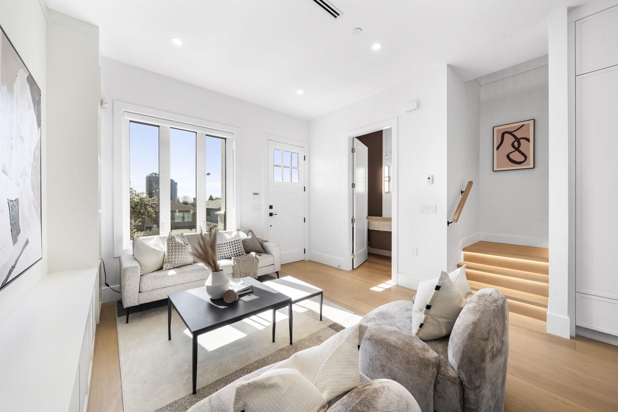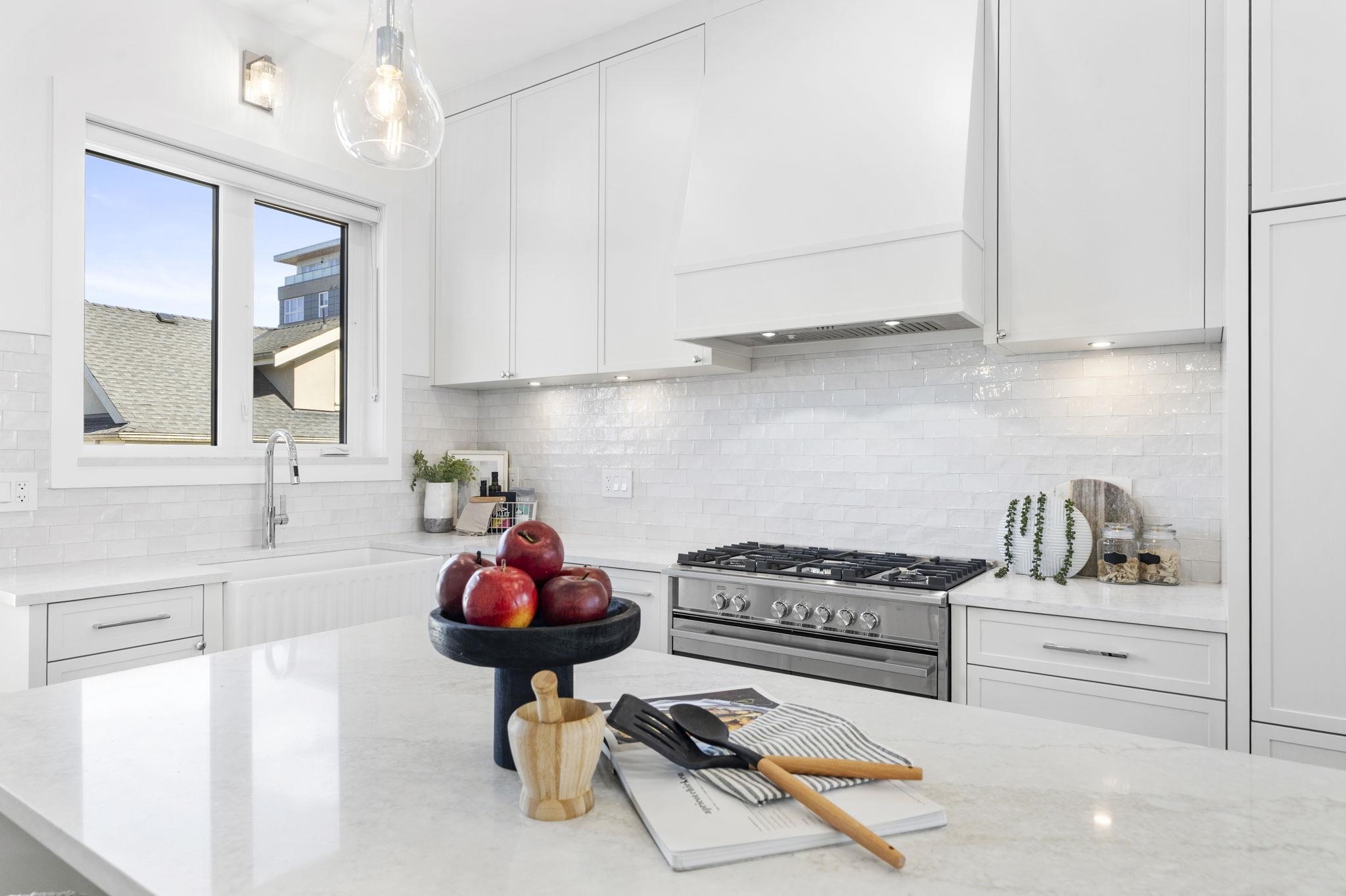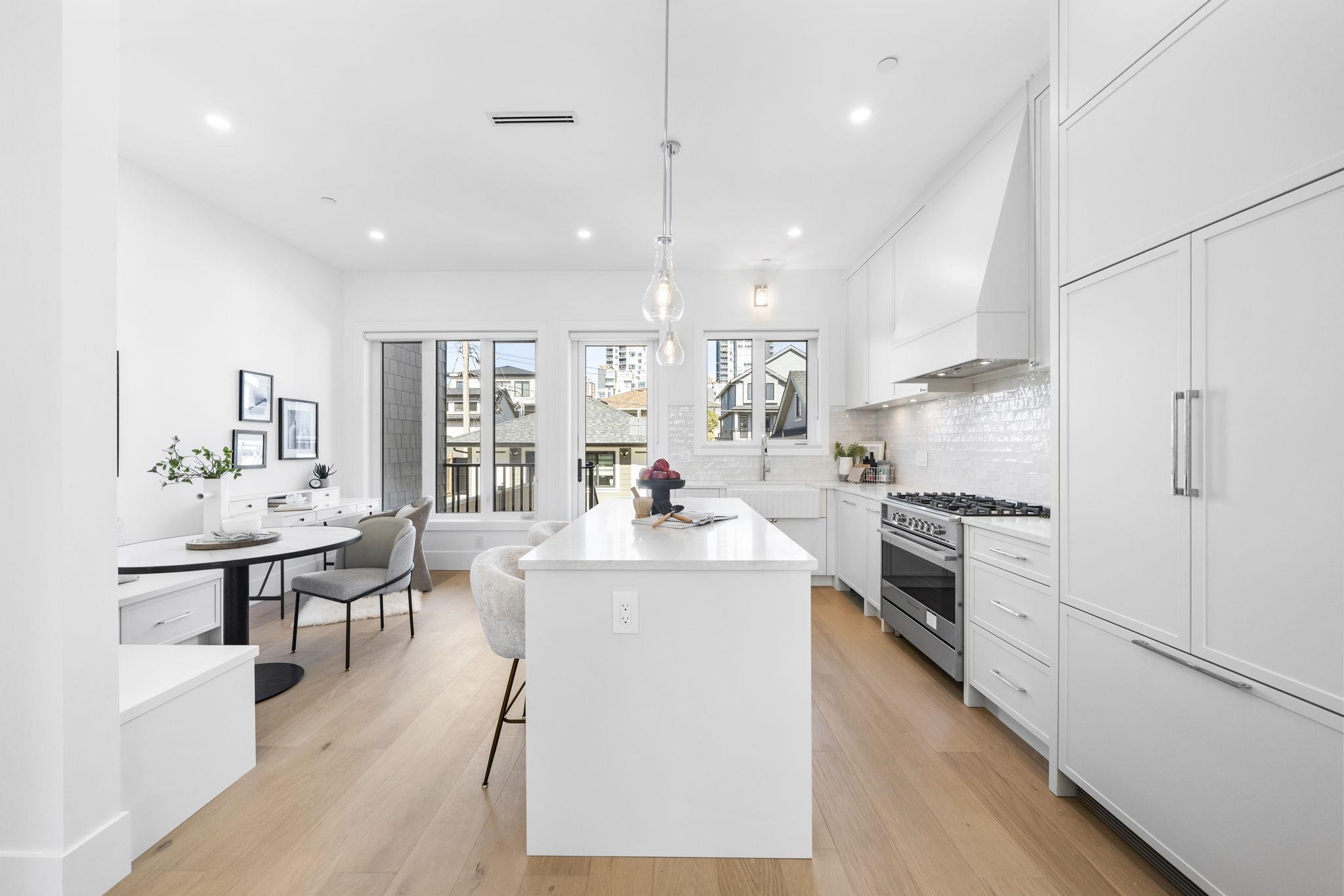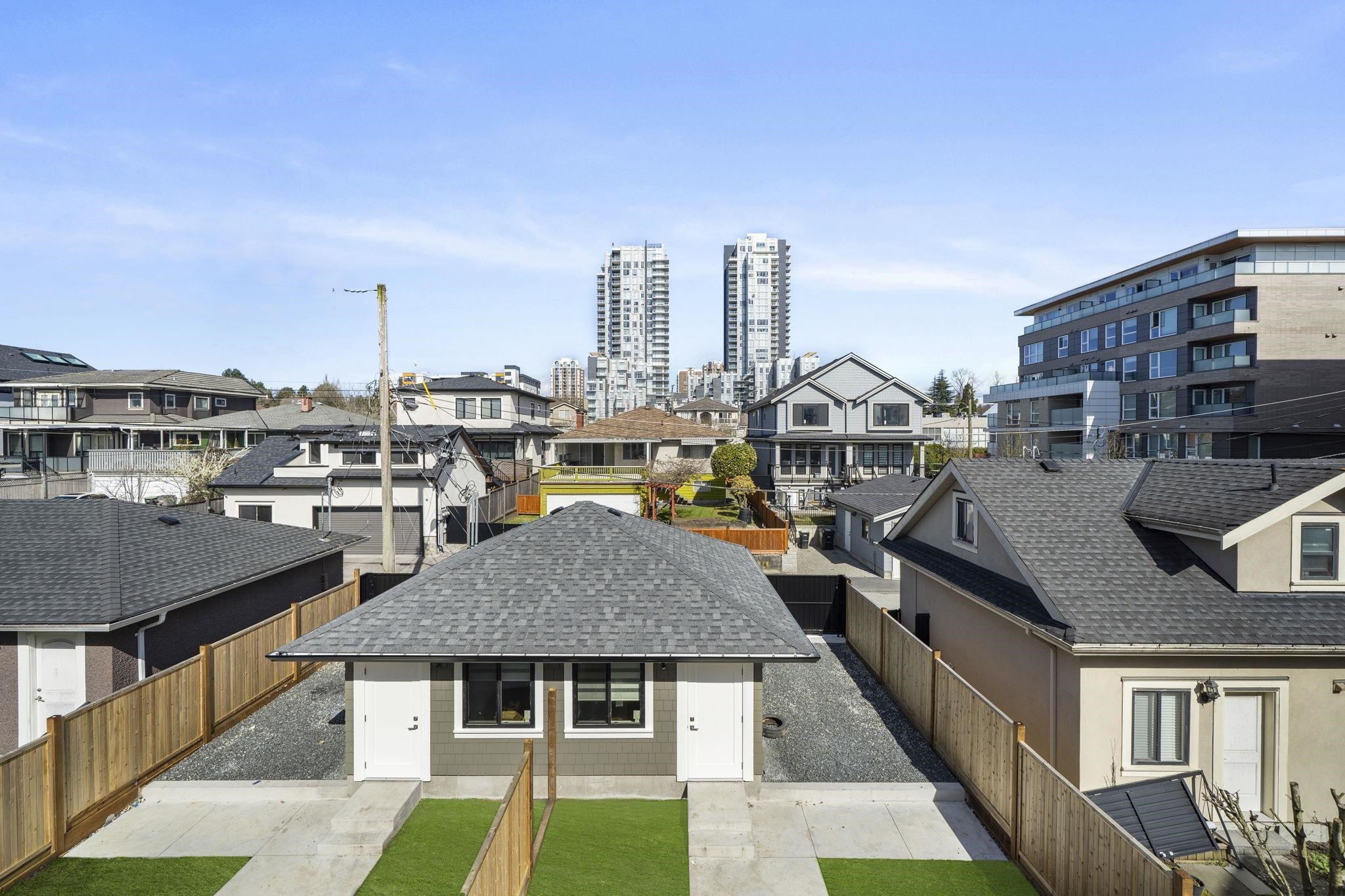 Welcome HOME to this QUALITY built craftsman-style SIDE x SIDE duplex 46ft wide lot, amazing CAMBIE location, just an 8min walk from Marine Gateway skytrain! This BRIGHT, SUNNY, efficient 4bd 3.5bth home incl DIRECT interior access to 1bd 1bth suite w/separate entrance – you can AIRBNB THIS SUITE! Feel the LUXURY the moment you enter this home w/ EXQUISITE millwork, engineered hardwood floors, radiant heat, A/C, 10ft HIGH CEILINGS & DESIGNER powder room! You will LOVE spending time w/family in the CHEFS KI...