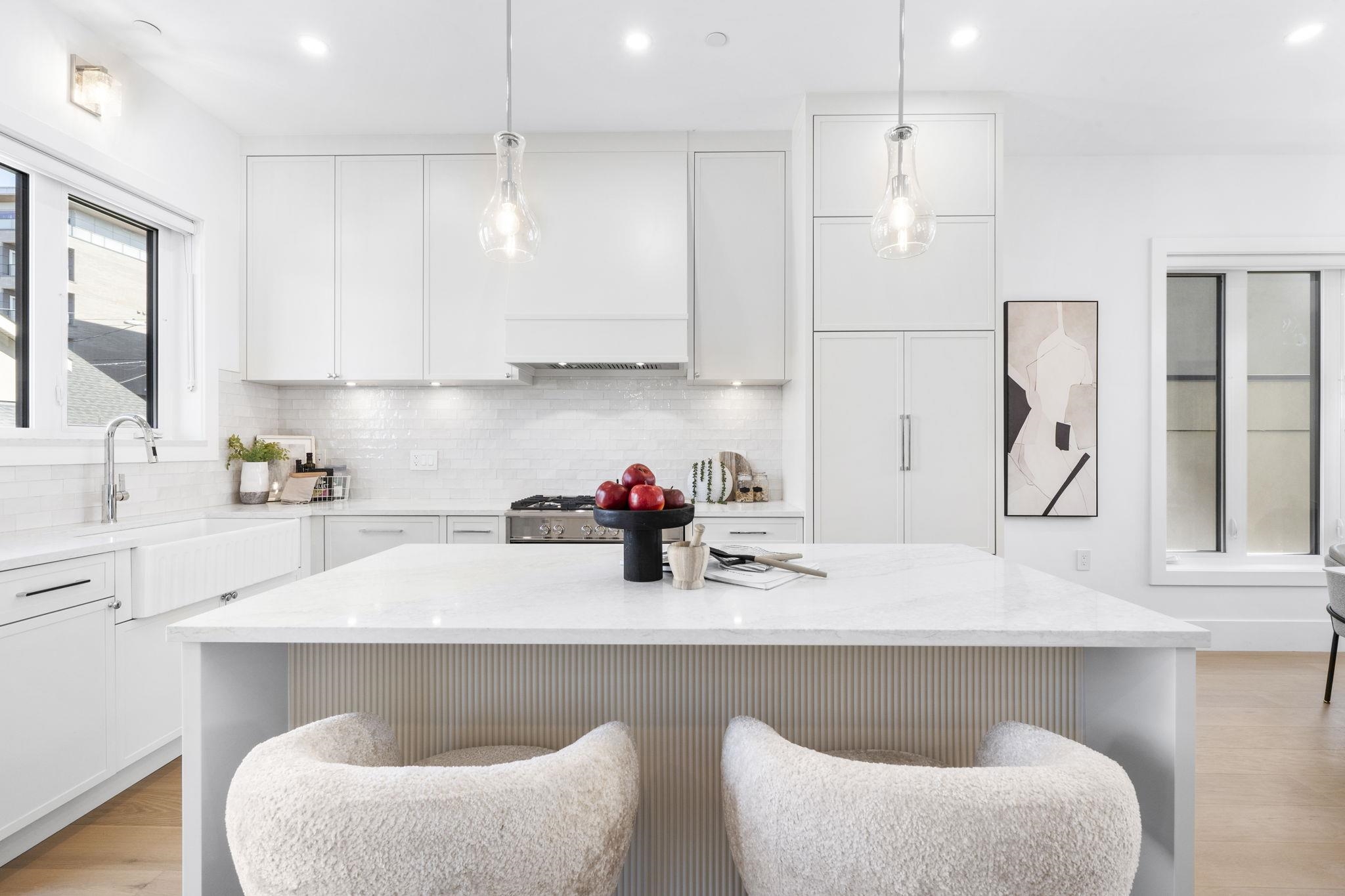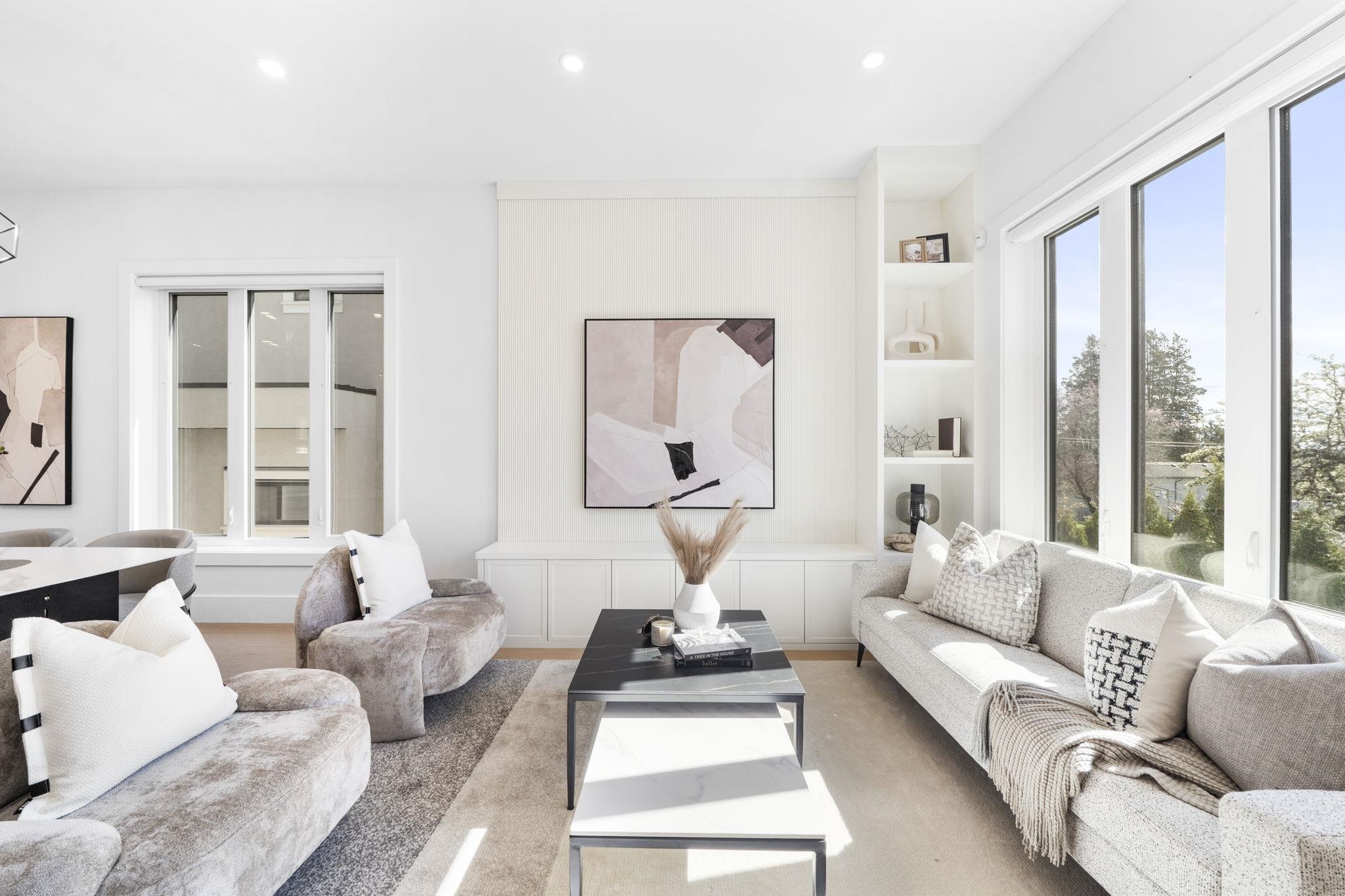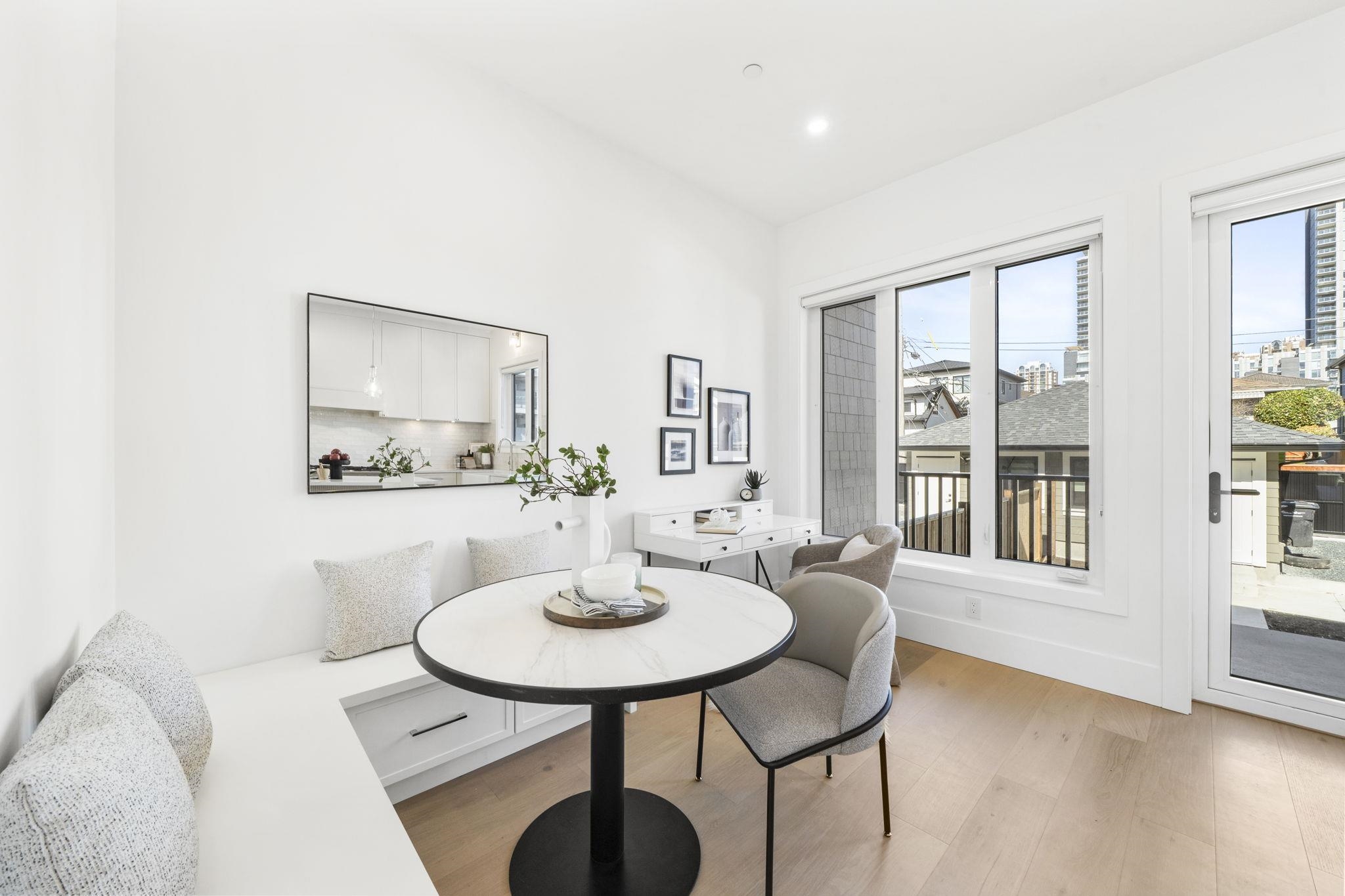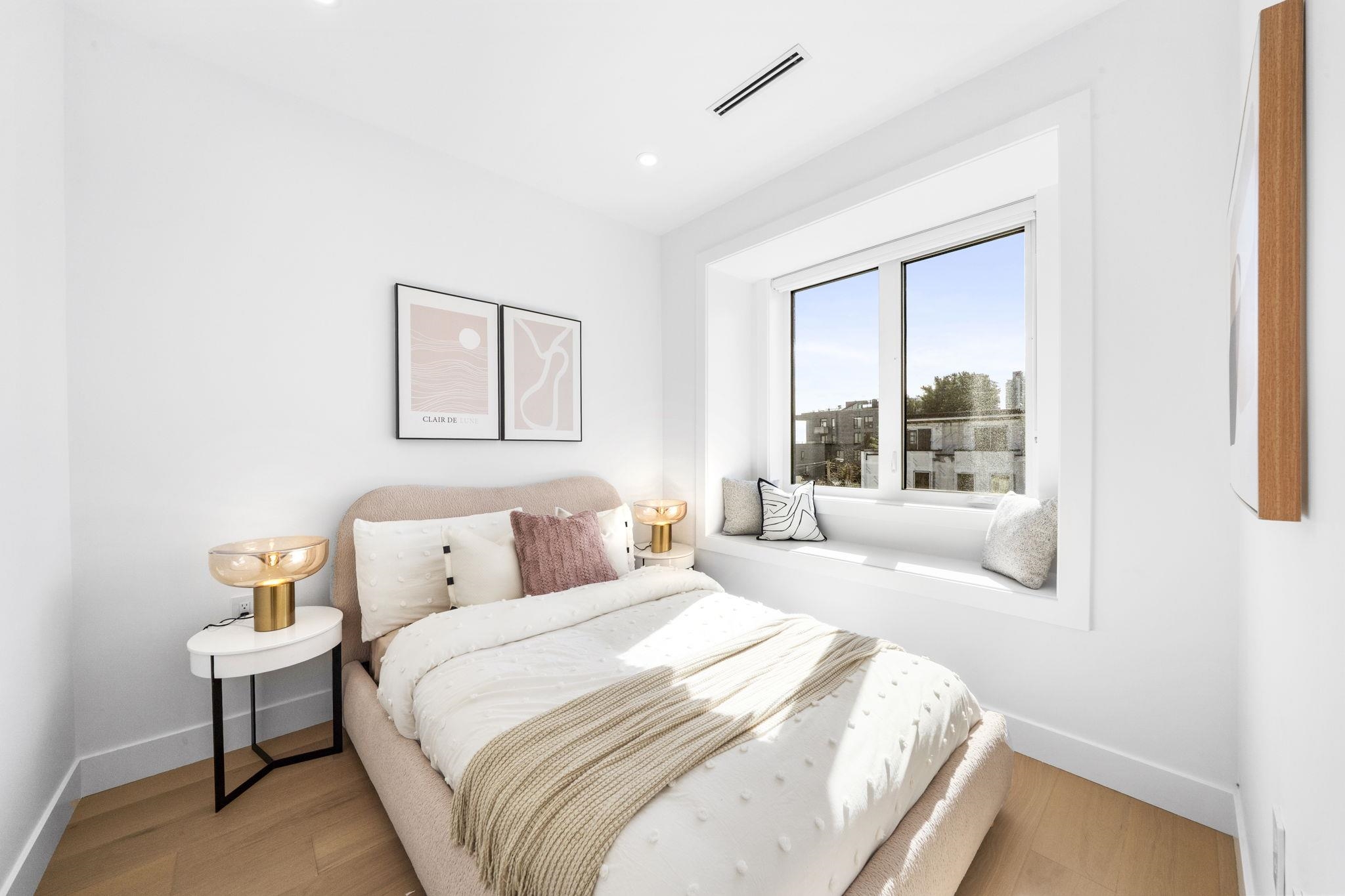 Welcome HOME to this QUALITY built craftsman-style SIDE x SIDE duplex 46ft wide lot, amazing CAMBIE location, just an 8min walk from Marine Gateway skytrain! This BRIGHT, SUNNY, efficient 4bd 3.5bth home incl DIRECT interior access to 1bd 1bth suite w/separate entrance – you can AIRBNB THIS SUITE! Feel the LUXURY the moment you enter this home w/ EXQUISITE millwork, engineered hardwood floors, radiant heat, A/C, 10ft HIGH CEILINGS & DESIGNER powder room! You will LOVE spending time w/family in the CHEFS KI...