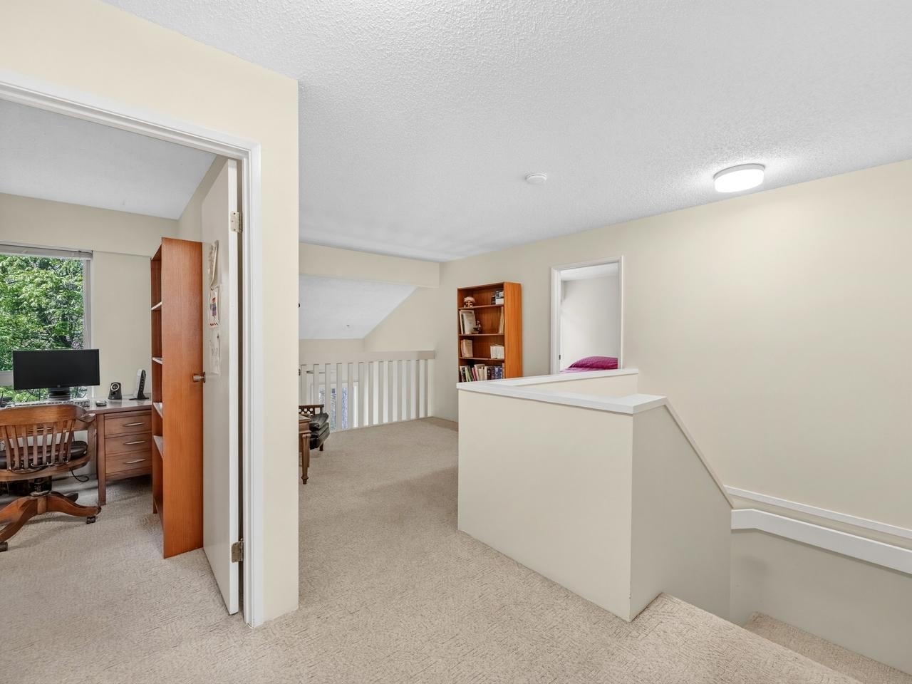 Charming, spacious, quiet, bright corner townhouse. 3 bdrms, 2 1/2 baths, 2 levels. Generous sized rooms throughout. The kitchen has lots of cupboards and counters, the eating area leads to an outdoor patio for expanding your summer dining. Upstairs has 3 good sized bedrooms, ensuite bathroom, a storage room and a flex space for an office, play area or ??. Newly painted interior in neutral colours. Treed back yard the size one expects to find in a detached home. The complex went through a major upgrade in ...