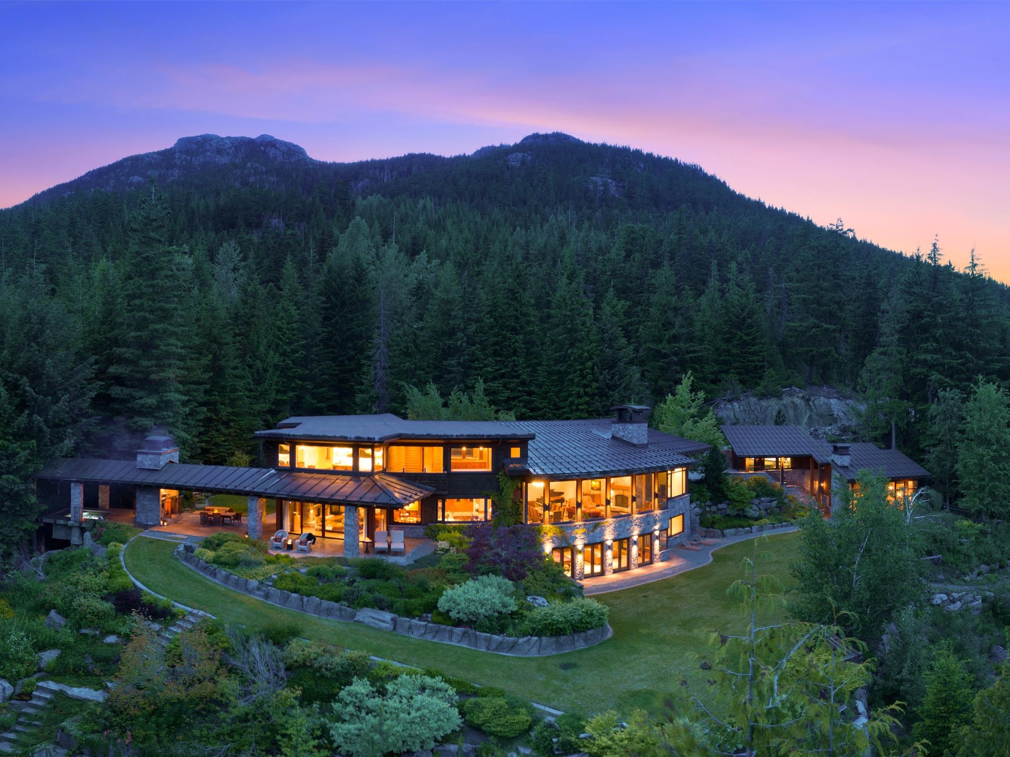 Uninterrupted panoramic views that span an entire mountain range, including the iconic Whistler & Blackcomb mountains from this significantly remodelled & upgraded residence, positioned on over 4.3 acres of manicured gardens. At the heart of this contemporary home, a spacious kitchen & family area create an intimate & inviting space, with more formal entertaining being offered in the grand room boasting vaulted ceilings & floor-to-ceiling windows. Dine alfresco in the outdoor living area then submerge yours...