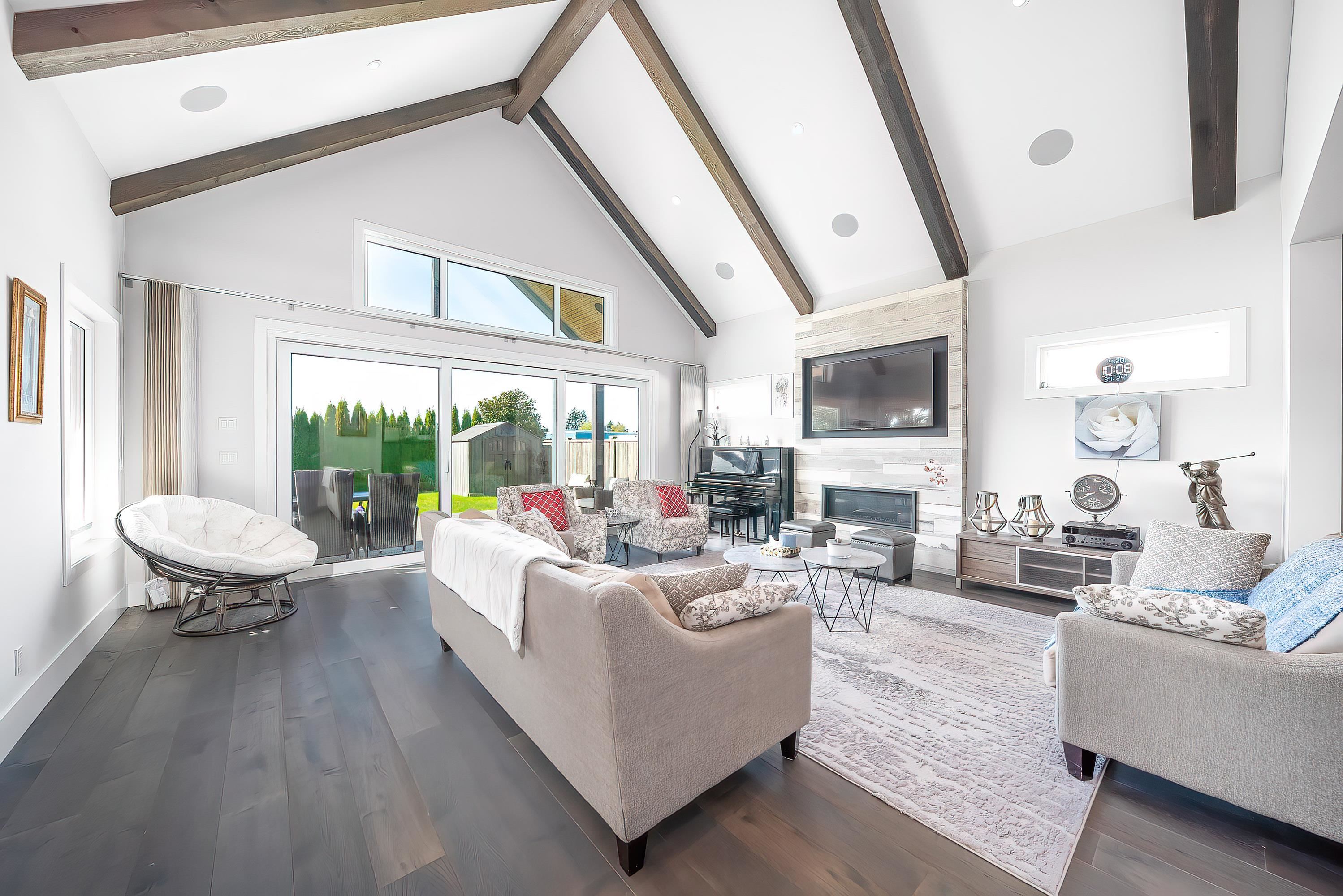 Expertly built and impeccably maintained by one of Delta's leading builders, Lentel Construction, this stunning custom home showcases a spectacular floor plan with soaring 18' ceilings, cedar beam accents, and expansive windows that fill the space with natural light. The gourmet kitchen is complemented by a separate dining area, perfect for both daily living and entertaining. Thoughtfully upgraded by the current owner, features include German MHZ invisible blackout curtains, SAVANT smart home automation, ou...