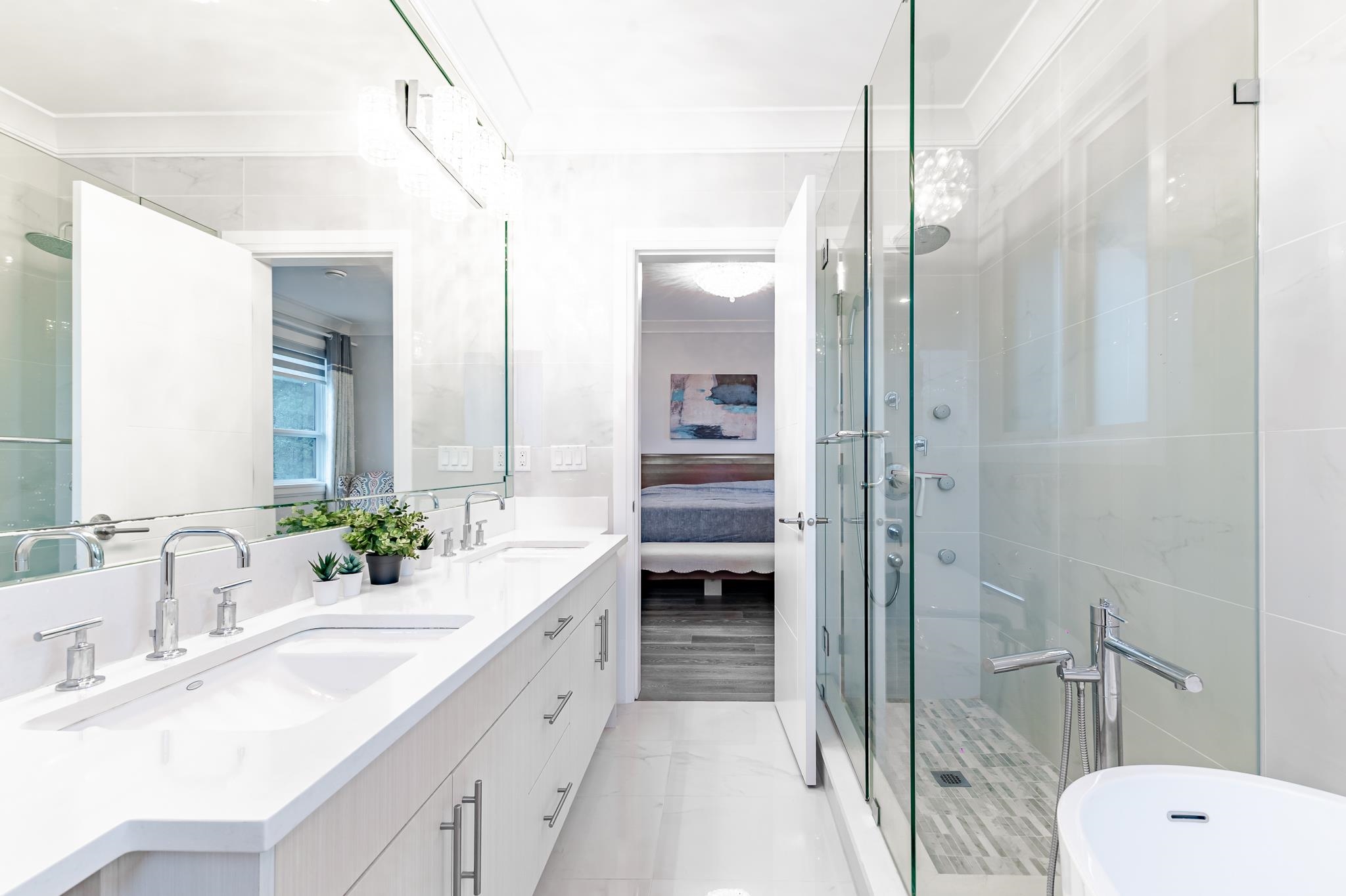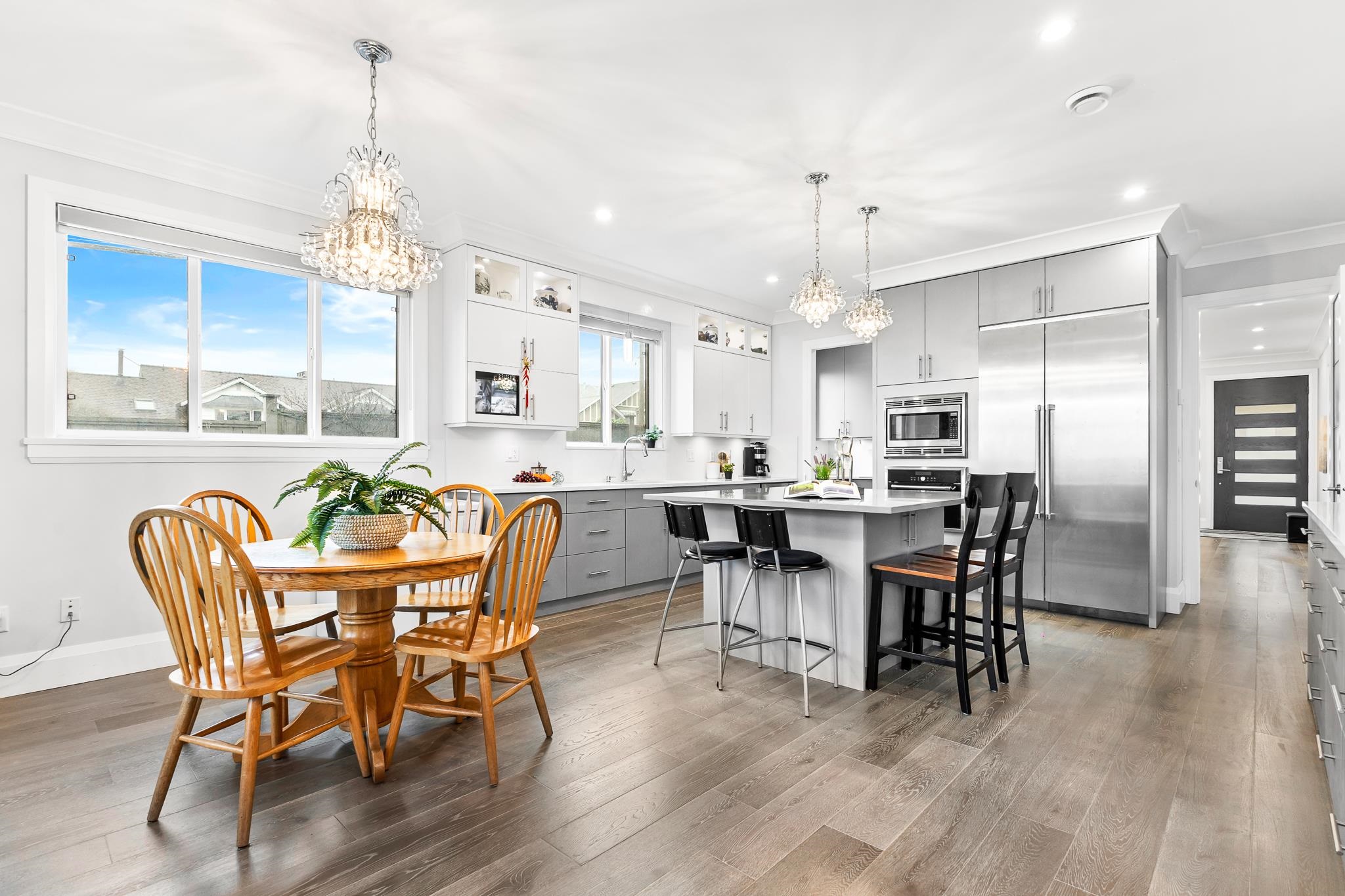 Welcome to well maintained customer build Side-by-Side Duplex in the most desirable areas of North Burnaby! Functional and spacious layout with open floor plan concept, 2 Levels with Lots of Natural Light. Beautiful counter tops and chef's kitchen with 60" Fridge-Freezer/36" Gas Stove. Laminated flooring throughout, radiant heating, the HRV system and Air Condition ensures all year round comfort. Upstairs features 2 massive ensuite bedrooms. Double car garage and south facing solarium room. Convenient locat...