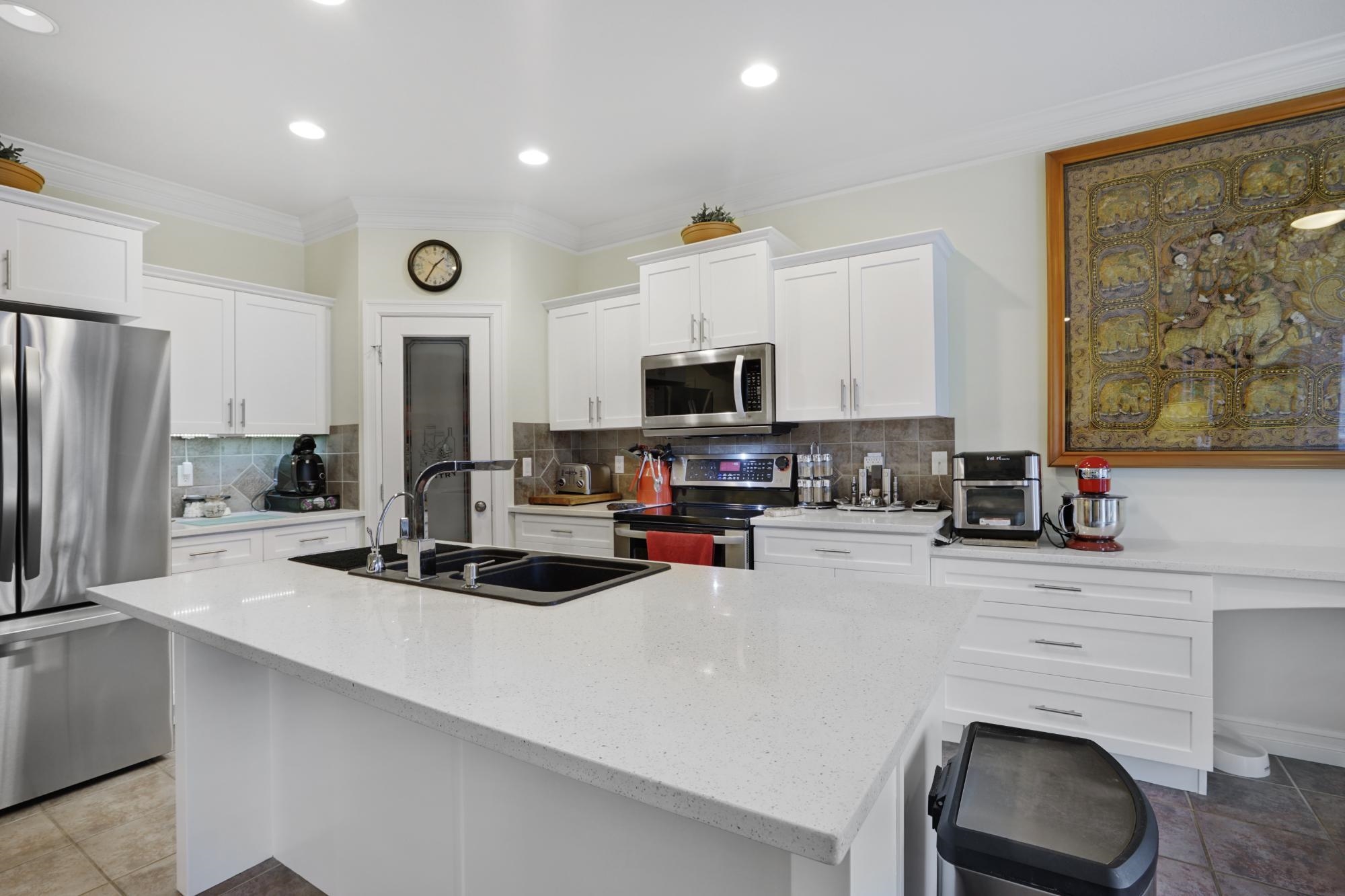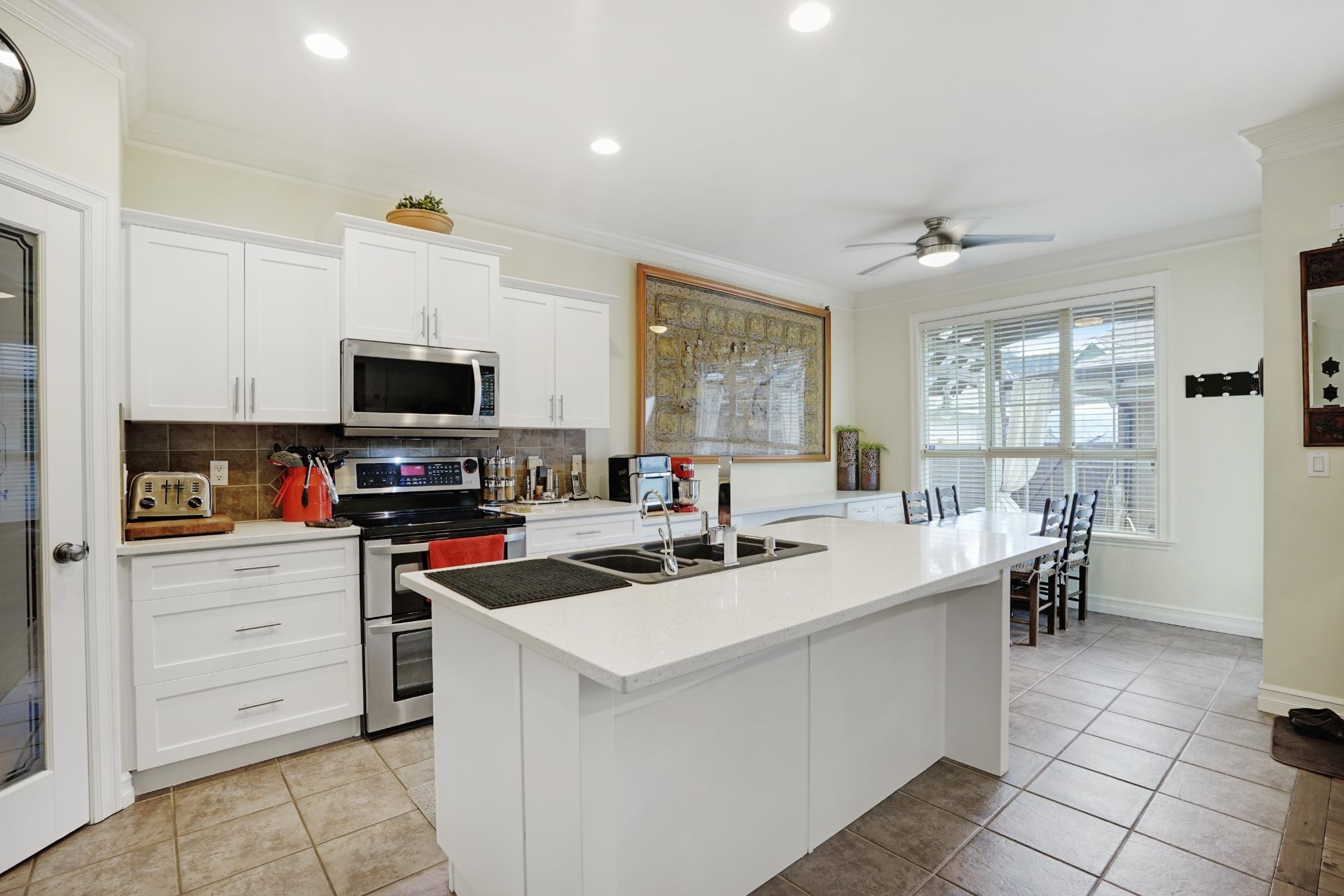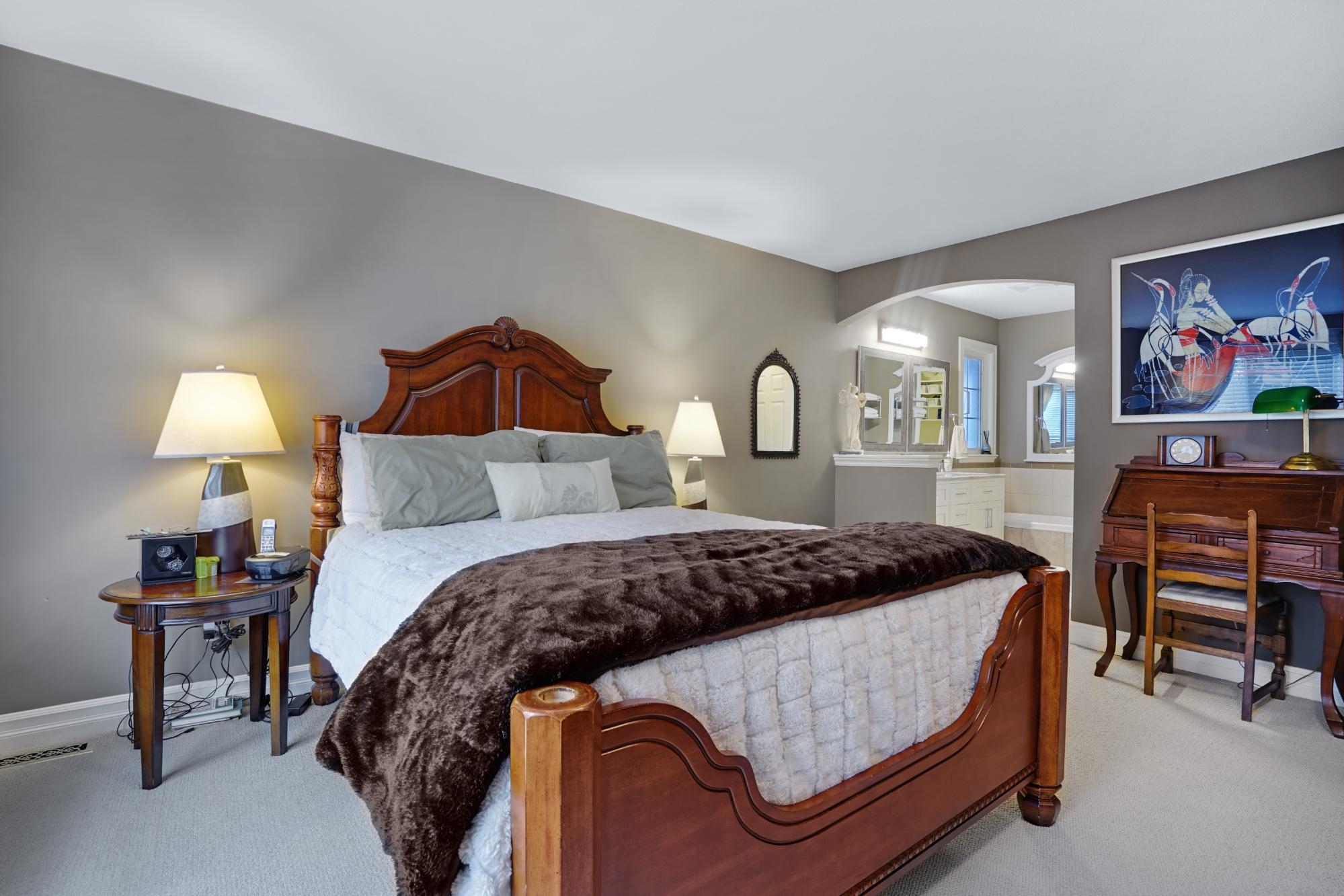 You'll love this home from the moment you open the majestic iron wrought gates at the front door through to the stunning backyard (paving stones, lighted steps, gazebo with custom curtains, private & fenced). It is set for spectacular entertaining. Home is over 2940 sq ft w/4 bdrms + den w/ 4 bathrooms. A formal dining room or sitting area, your choice. Kitchen has California Closets in pantry, new white quartz countertops, prof. painted cupboards w/new hardware. Powder room updates -vessel sink, new lighti...