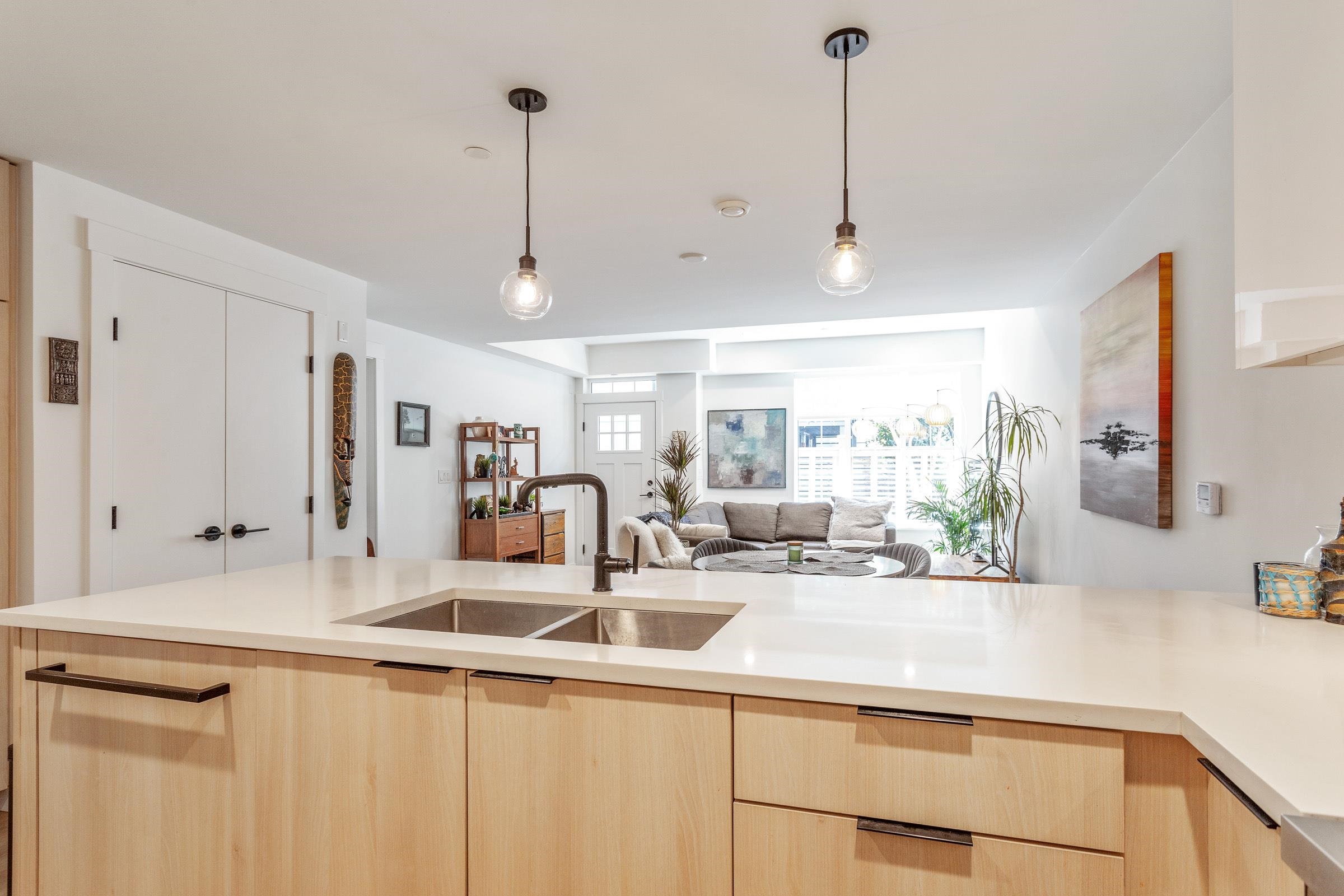 Off the spirit trail in Lower Lonsdale is an amazing 3 bedroom townhouse. This home is unique as it has a studio attached with its own entrance, washer/drier, kitchen and luxurious bathroom. This unit can also be integrated into the main suite with an inside door connecting the two units. Currently it is rented for $1,800 a month. The main unit has elevated ceilings in the living room and large sun-filled windows overlooking the large patio with a BBQ and gas hookup included in the maint. fee. The kitchen i...