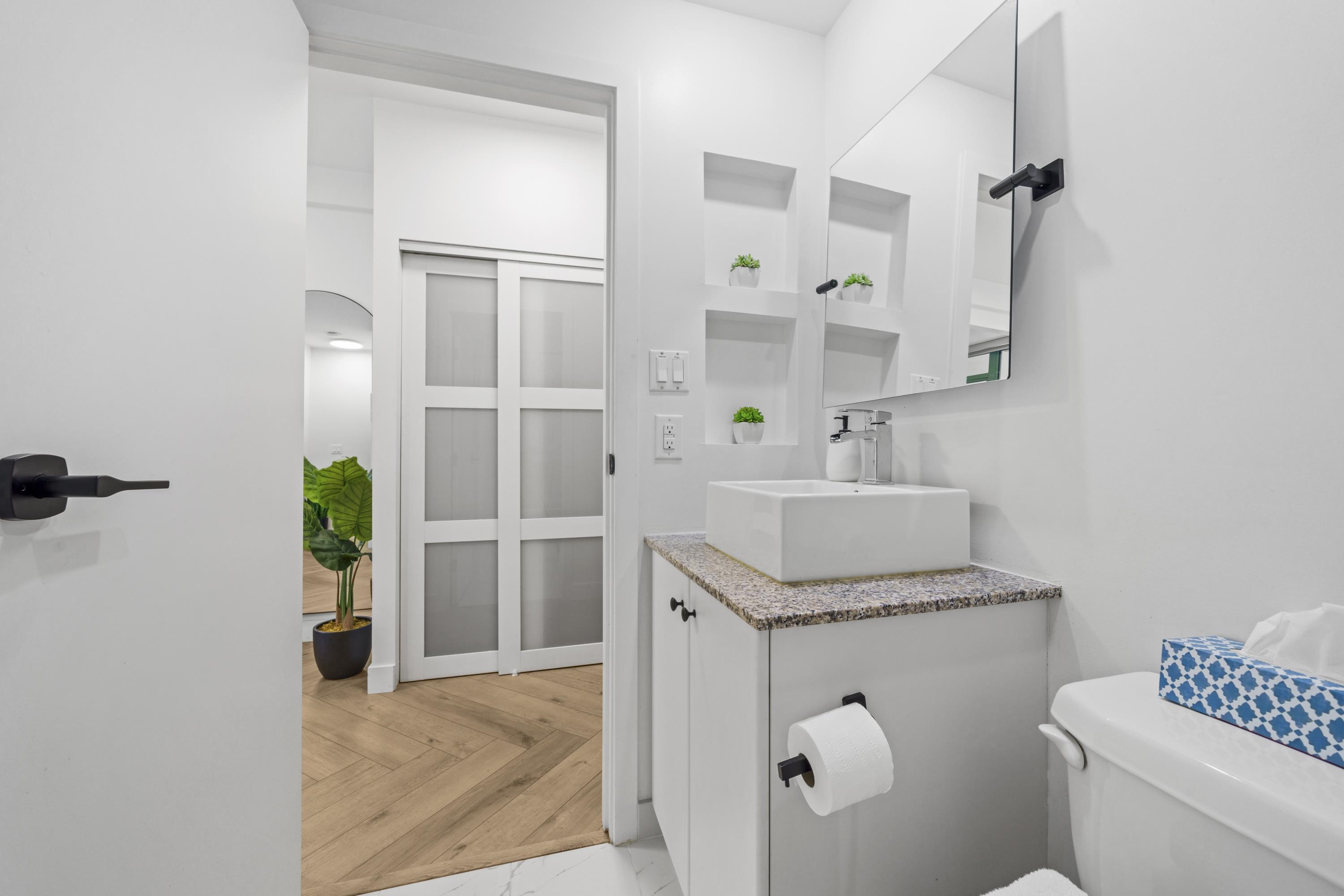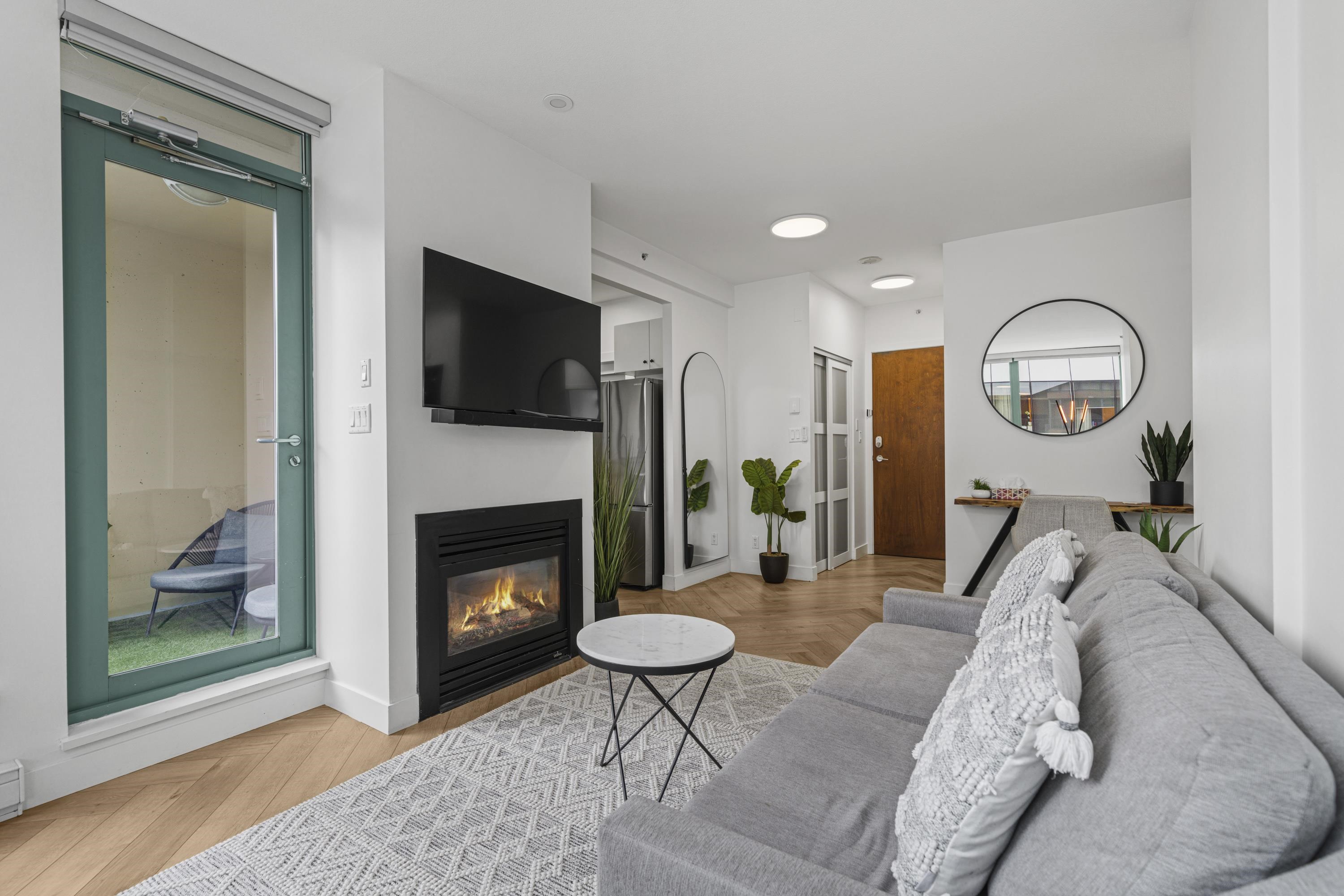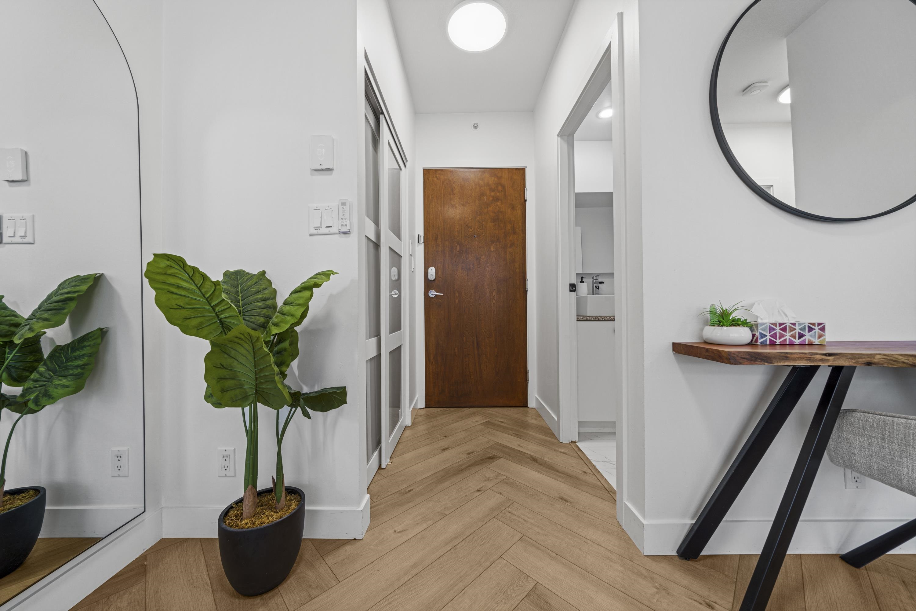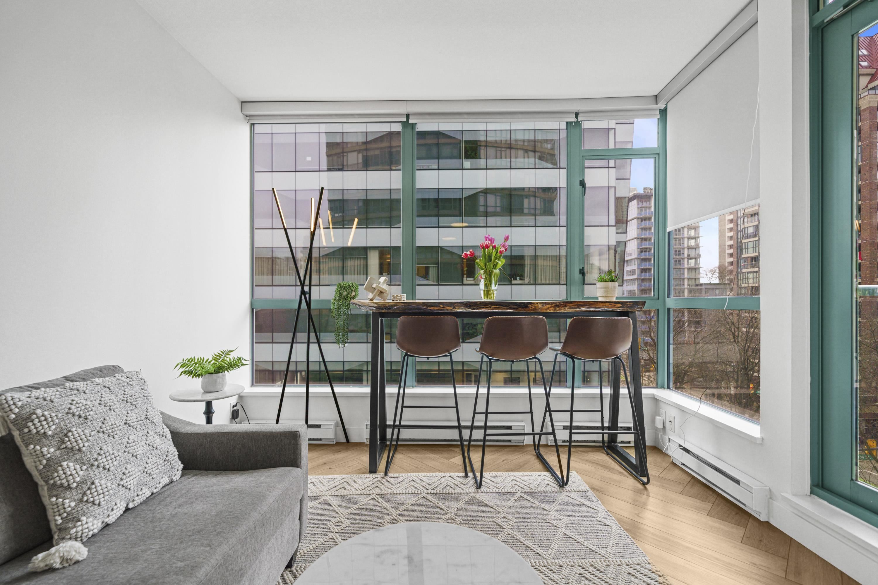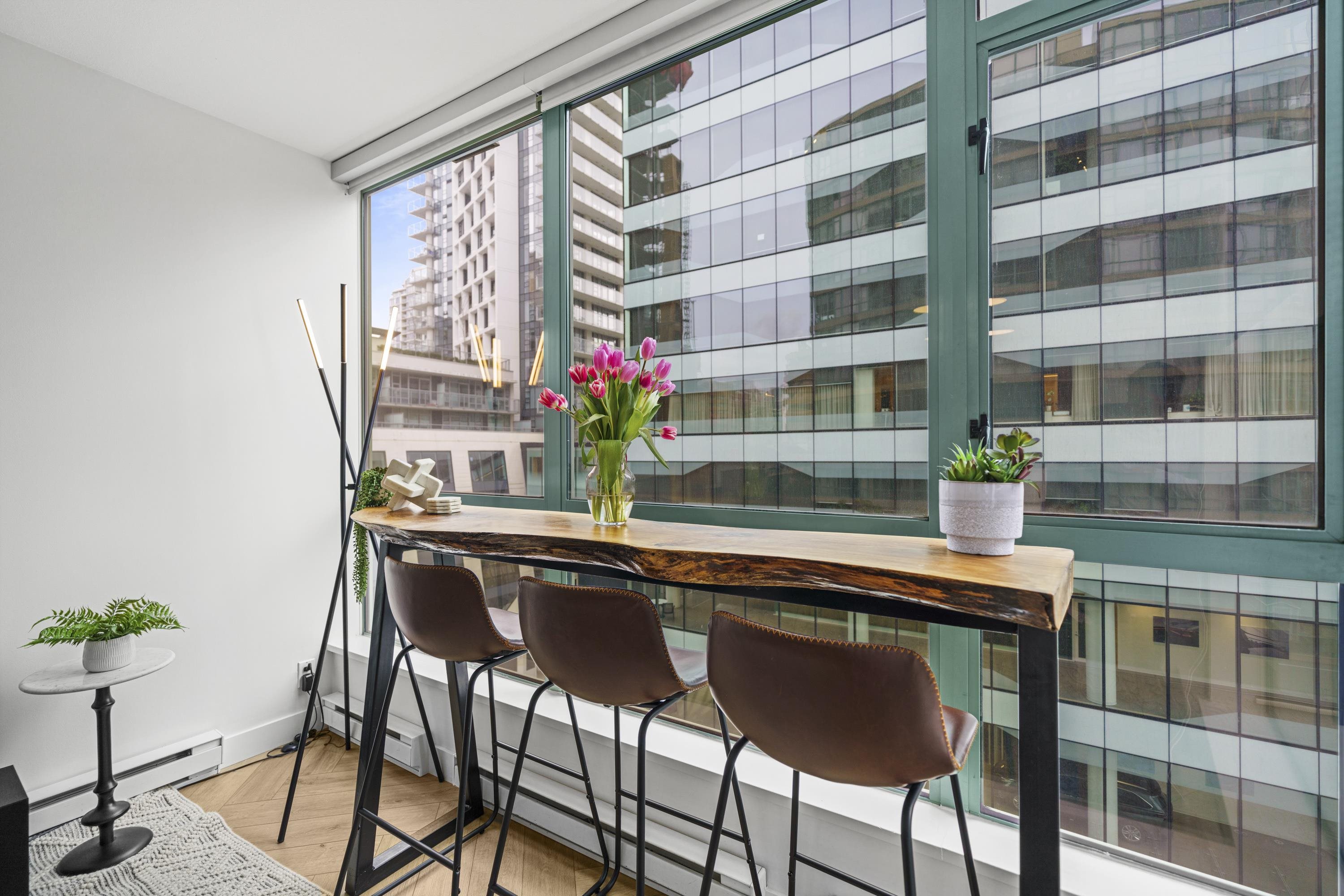 Absolutely gorgeous 1-Bedroom + Den home in the heart of Vancouver, boasting over $120,000 in premium renovations! This meticulously redesigned space features elegant herringbone flooring, a fully renovated kitchen & bathroom, smart lighting, power window coverings, and a cozy fireplace. High-end finishes create a chic yet inviting ambiance, perfect for a downtown professional. Enjoy the spacious floor plan of this well-maintained early 2000s building, offering top-tier amenities: steam room, sauna, gym, yo...