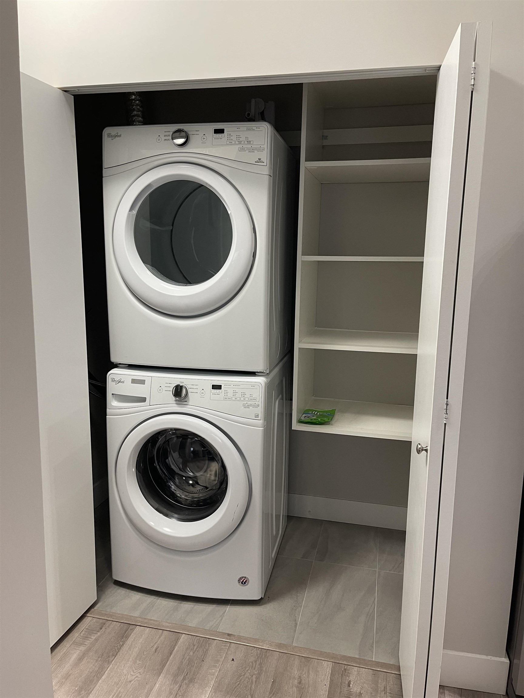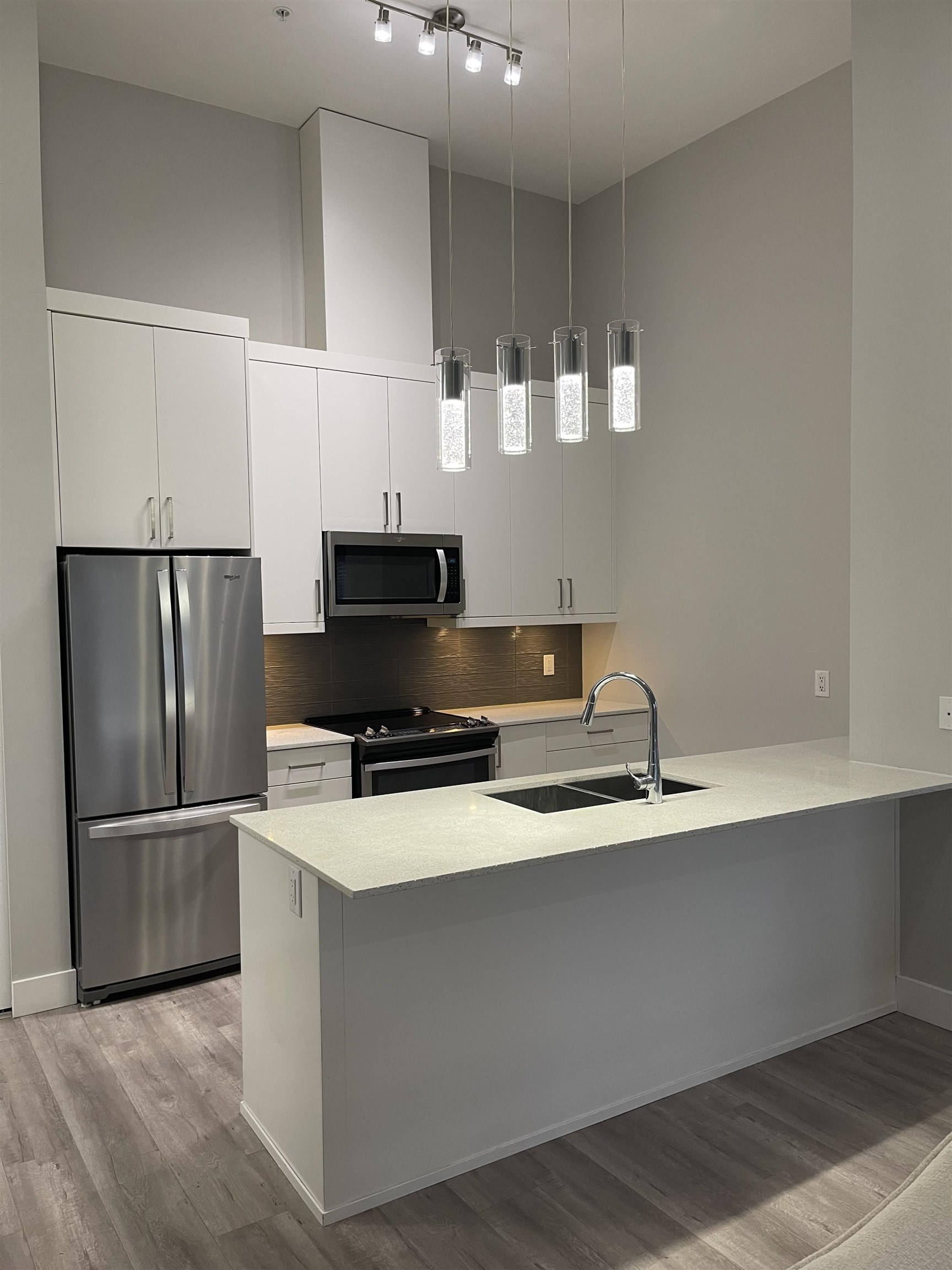 Welcome to THE MUSE! This bright upper-floor, north-west facing 2-bedroomt 2-bath home offers a spacious open-concept layout, 15 foot ceilings, and expansive windows that fill the space with natural light. The modem kitchen features quartz countertops, Whirlpool stainless steel appliances, glass backsplash, and soft-close flat-slab cabinetry. Interior highlights include laminate flooring, modern lighting, and shaker-style doors. Enjoy two balconies with city views. This well-maintained concrete building off...